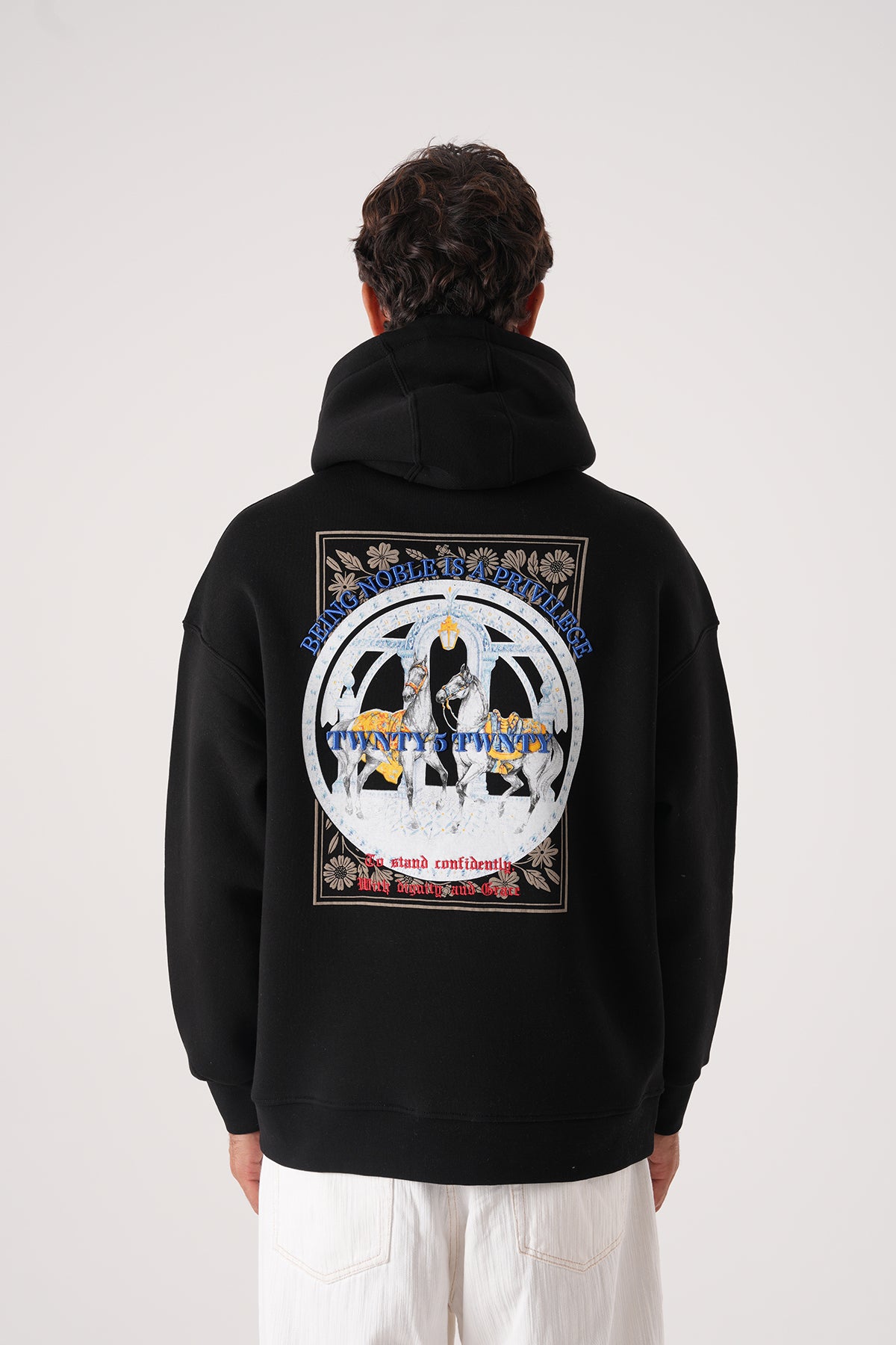 Uzun kollu, kapüşonlu sweatshirt. Ön kısmında büyük kanguru cep detayı bulunur. Arka yüzeyde yer alan büyük kontrast At figürü baskısı ile sokak stilinize güçlü bir ifade katar. Konforlu ve rahat bir kullanım için standart kesimlidir.