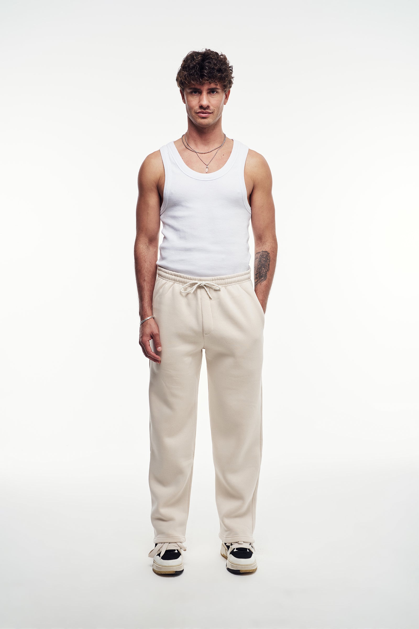 Relaxed Fit kesimli eşofman altı. Rahat ve modern bir görünüm için tasarlanmıştır. Bel kısmı bağcıklı ve ayarlanabilir yapıdadır. Yan cepleri ve bileklerde biten paça kesimi, günlük stilde konfor ve şıklığı birleştirir.