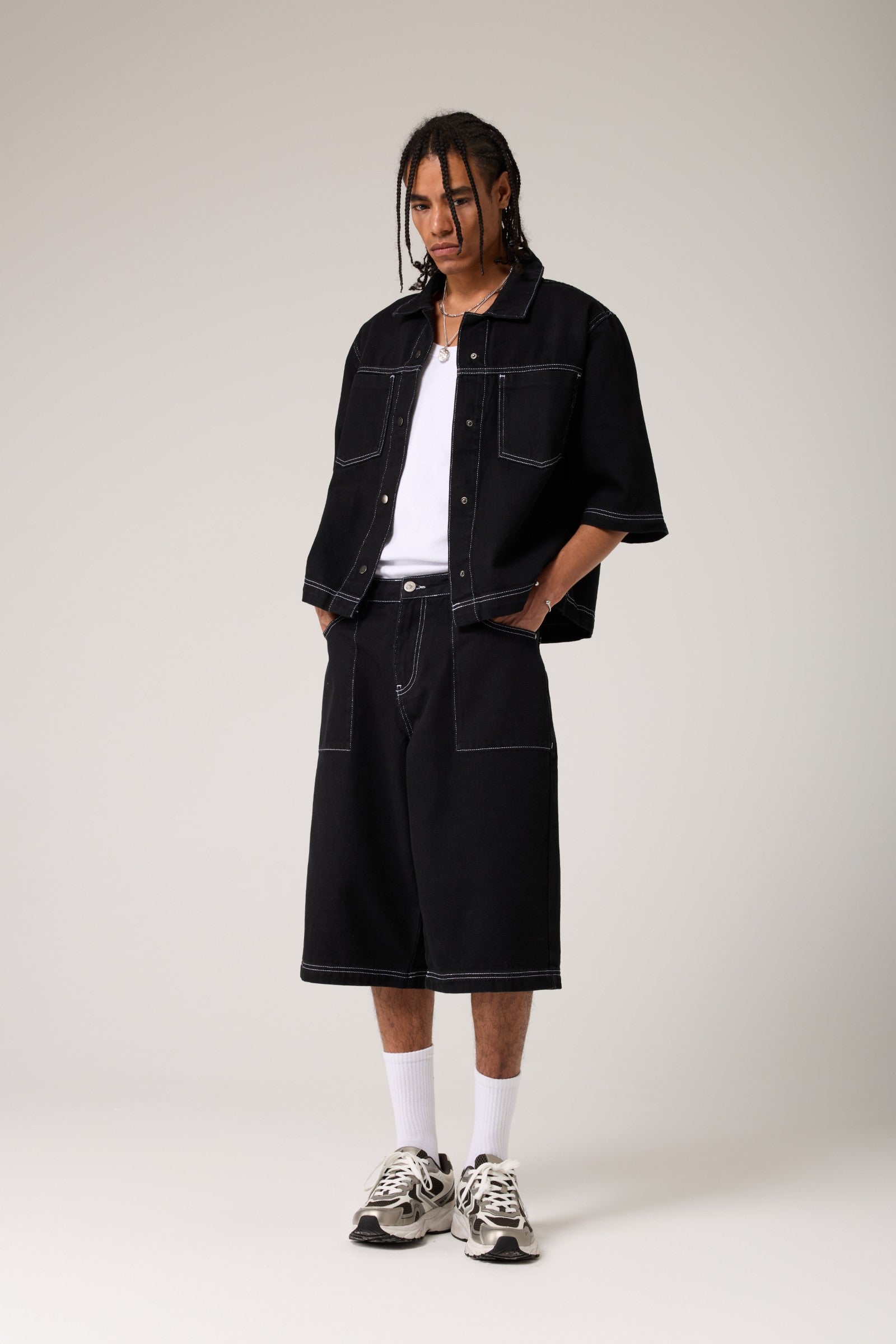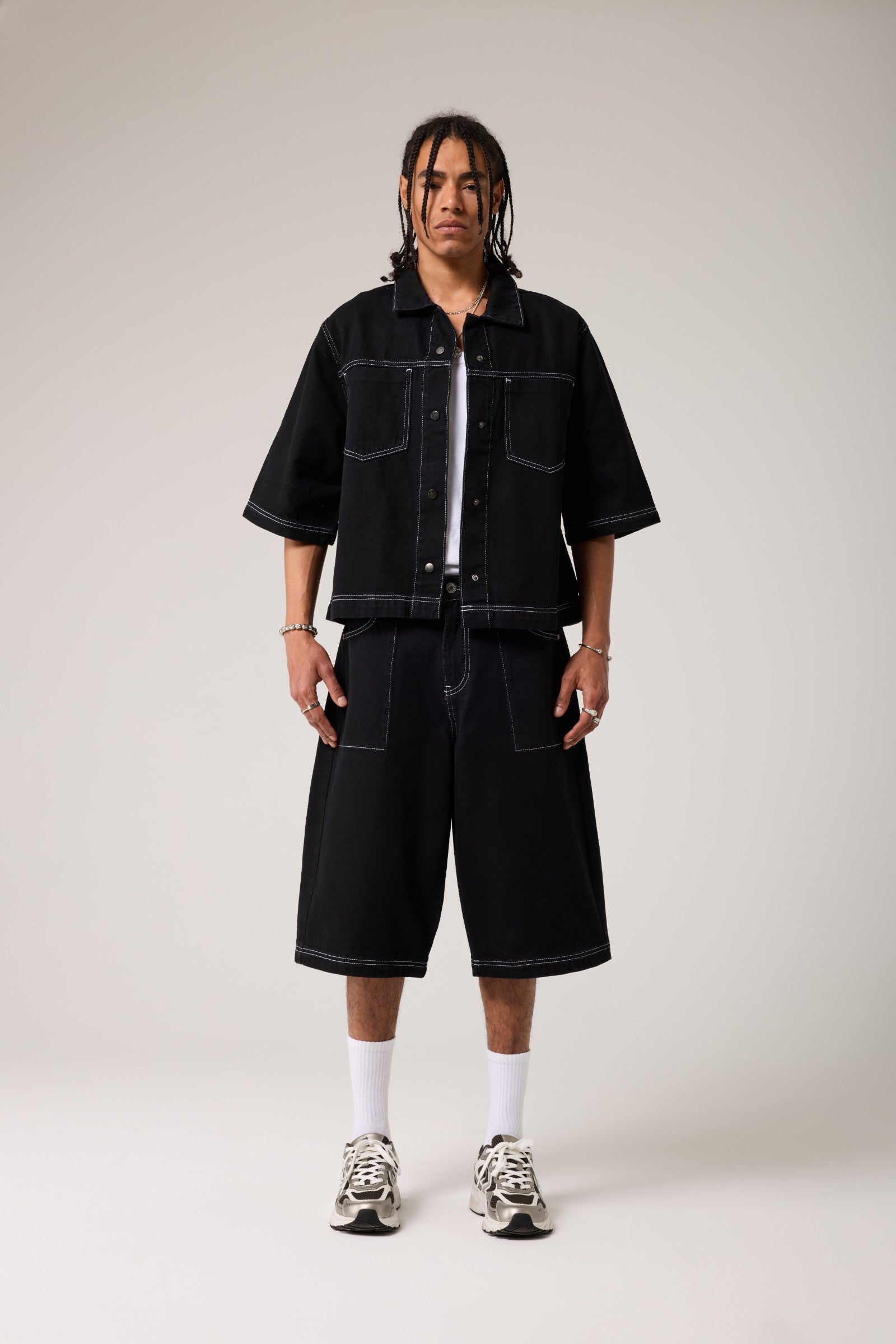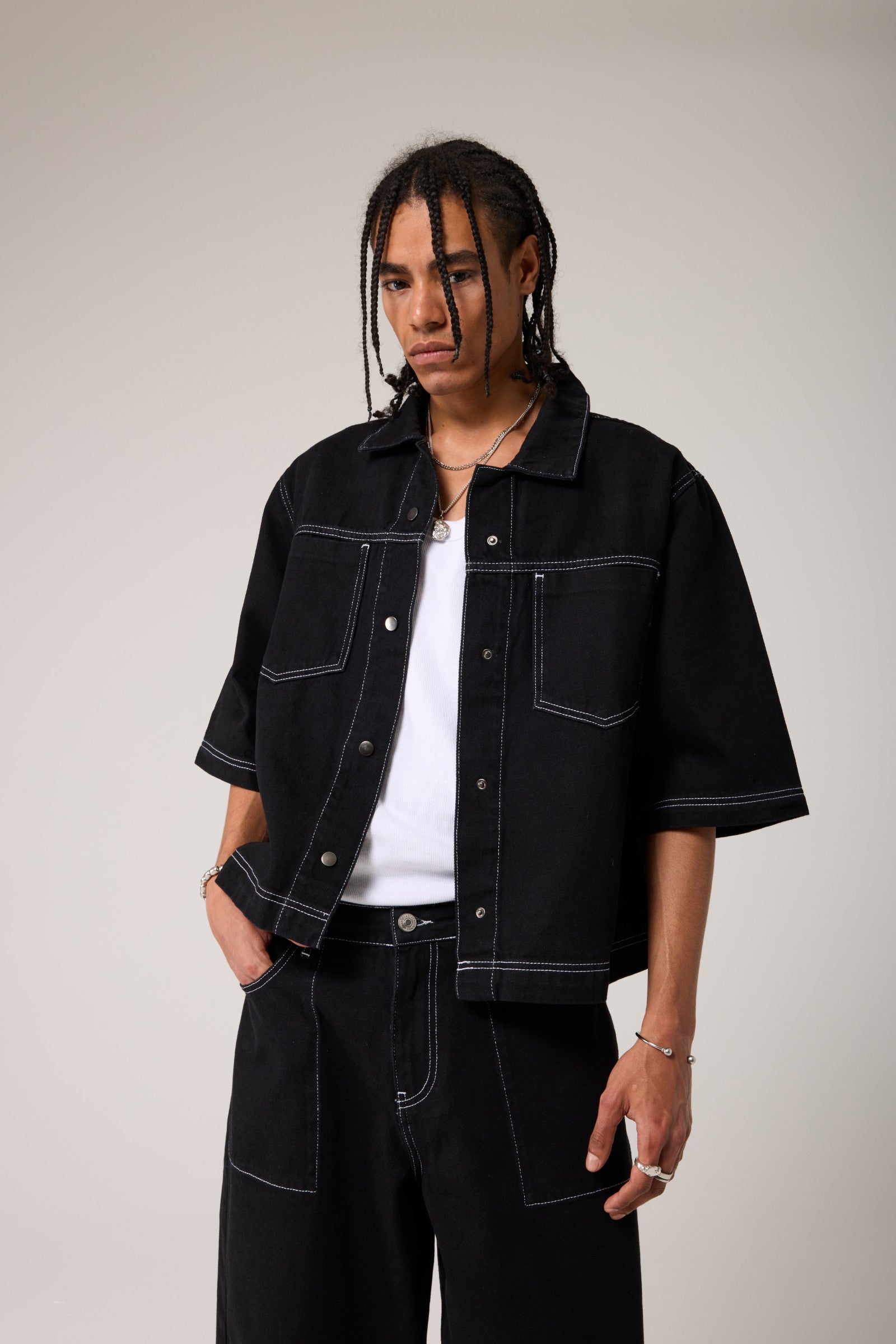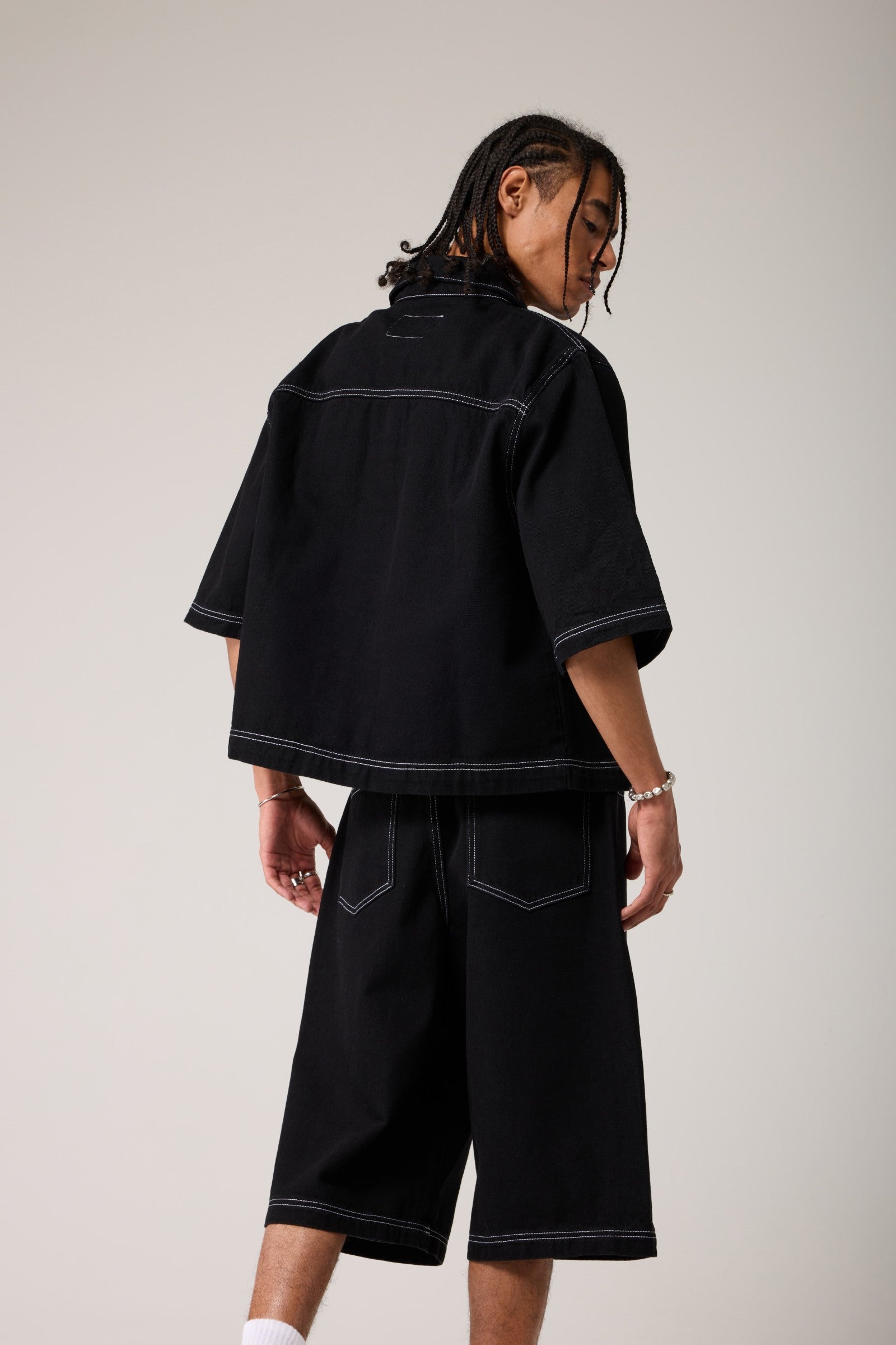Dikişli Oversize Denim Gömlek