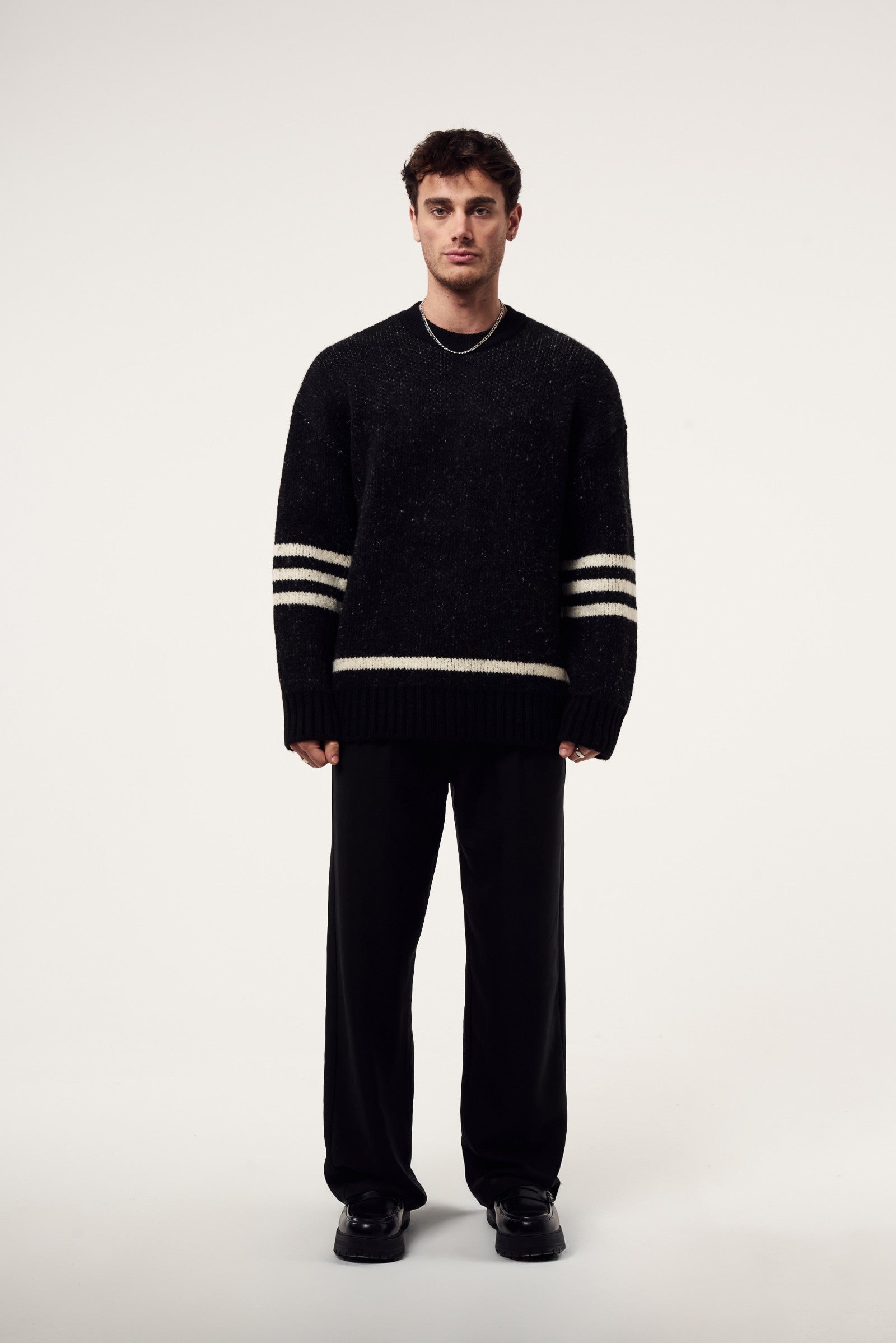 Yumuşak dokulu ve dökümlü örgü kumaştan üretilmiş kazak. Modern bir silüet sunan oversize kesim. Arka kısımda kontrast renkli "Game Over" grafik baskı detayı. Düşük omuzlu, ribana örgülü yuvarlak yaka ve manşetler, konforlu ve geniş form.