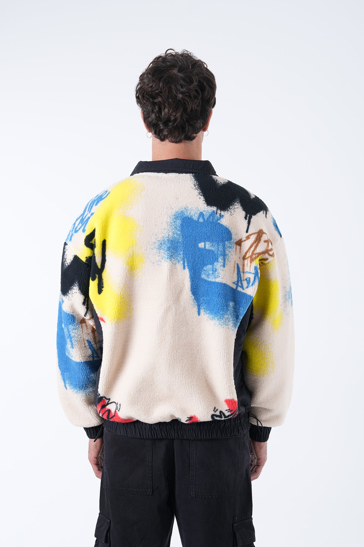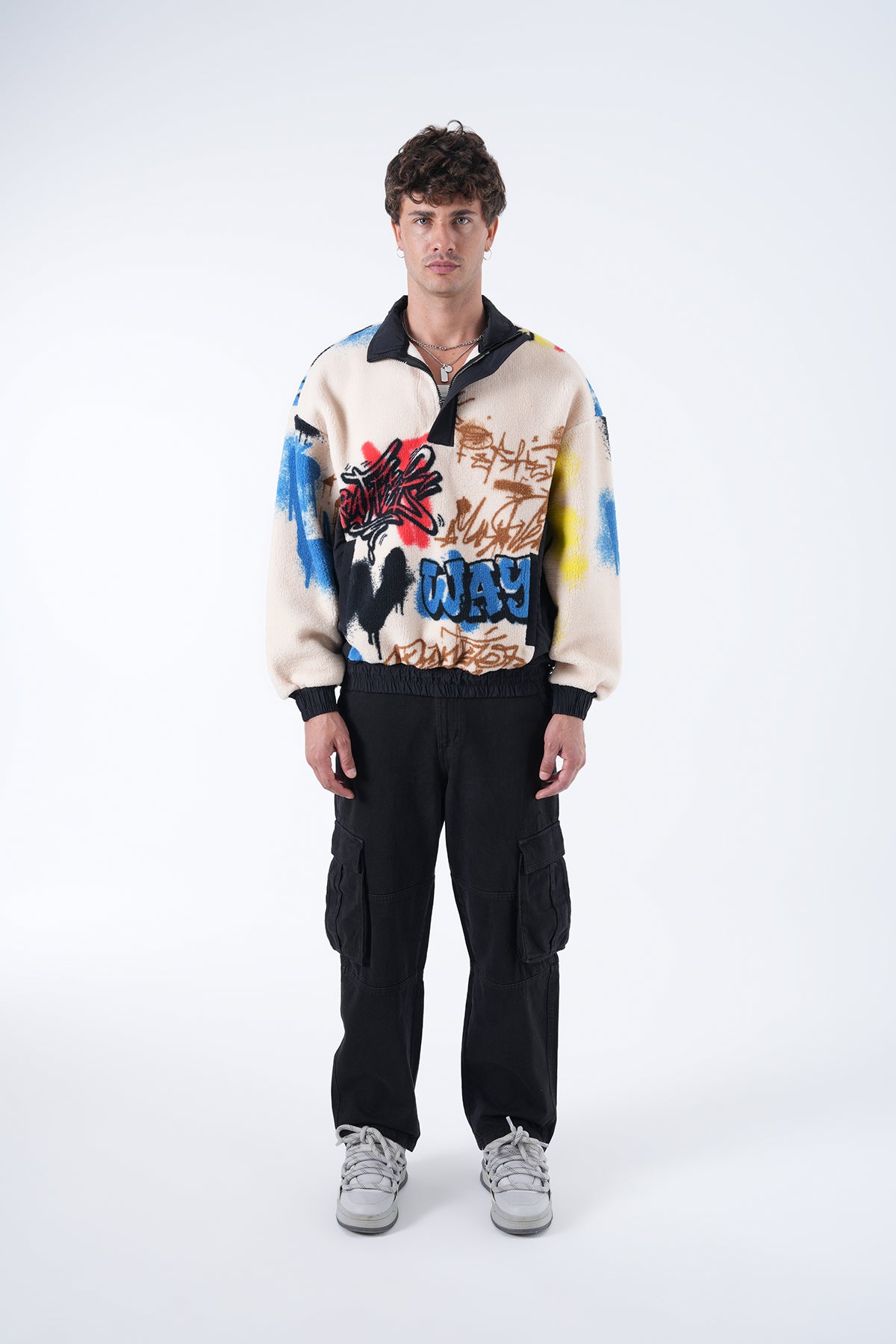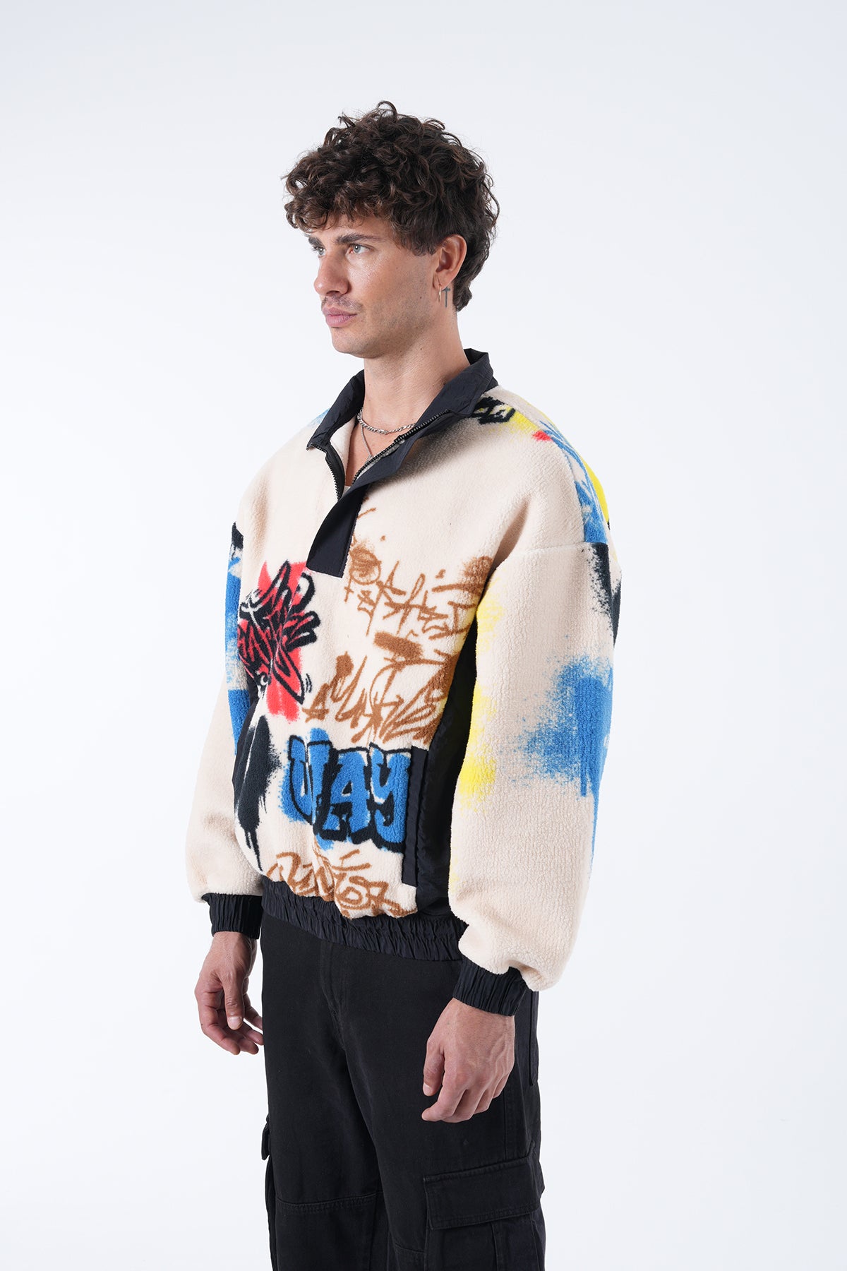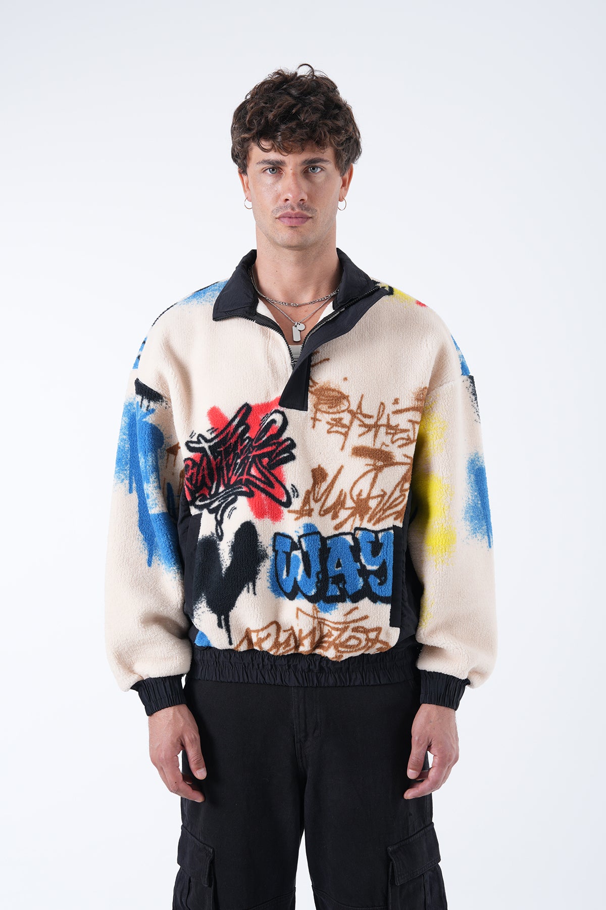 Grafiti Desen Yarım Fermuarlı Polar Sweatshirt