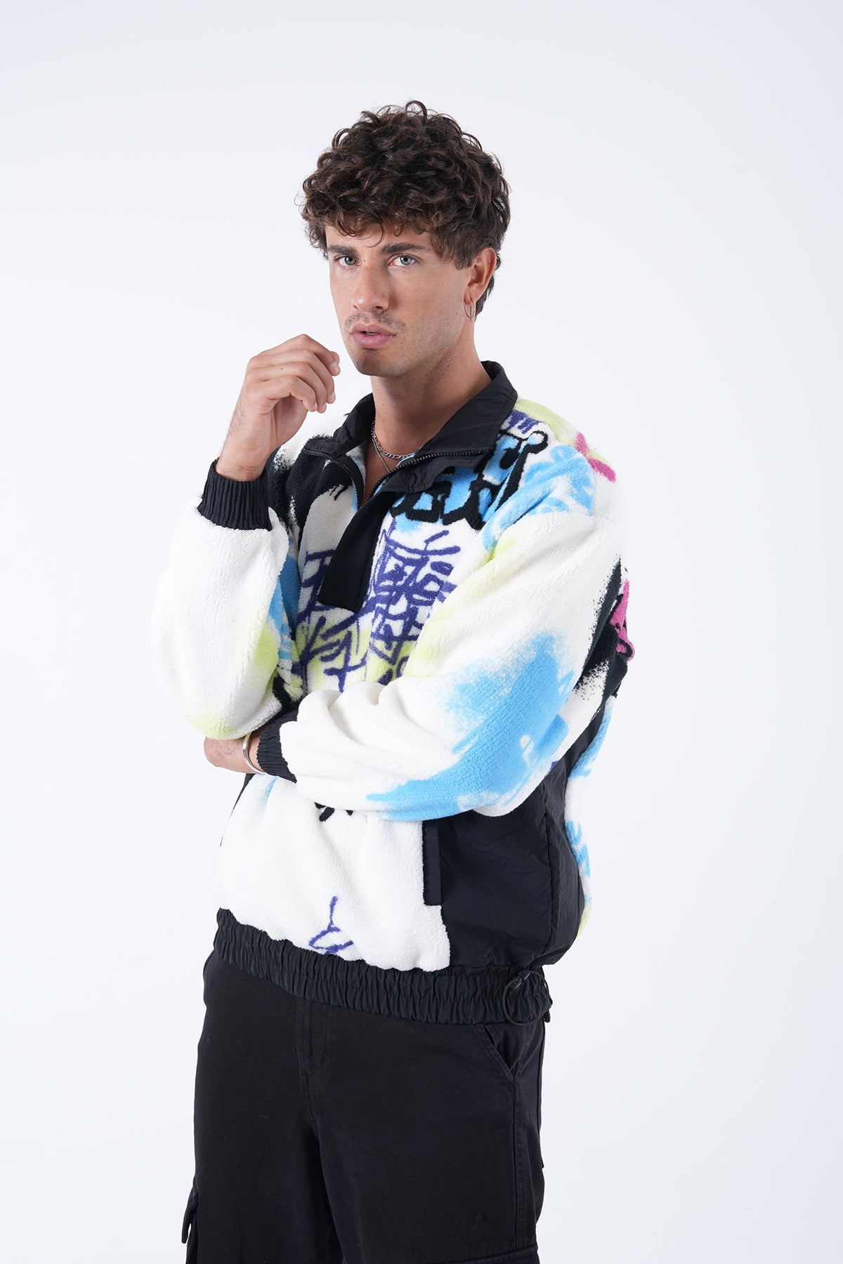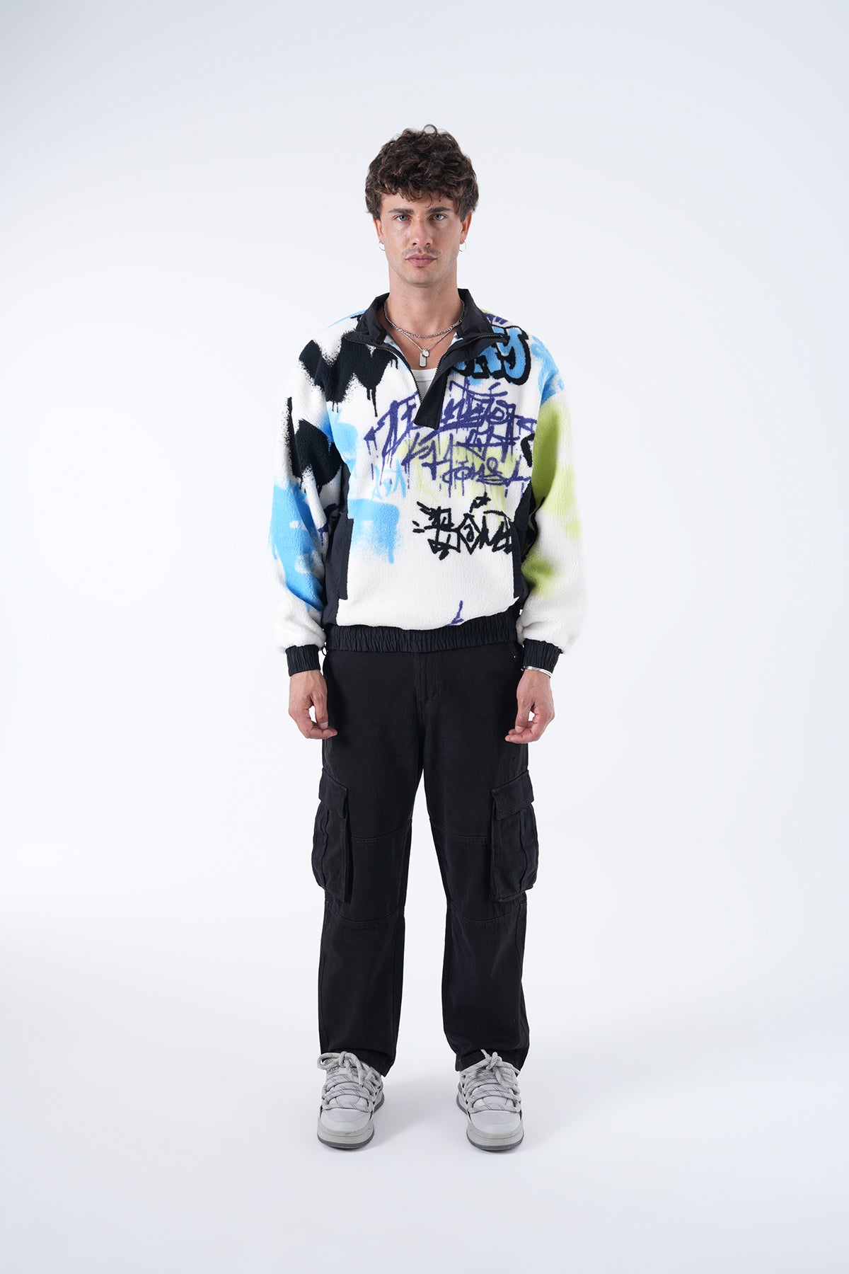 Grafiti Desen Yarım Fermuarlı Polar Sweatshirt