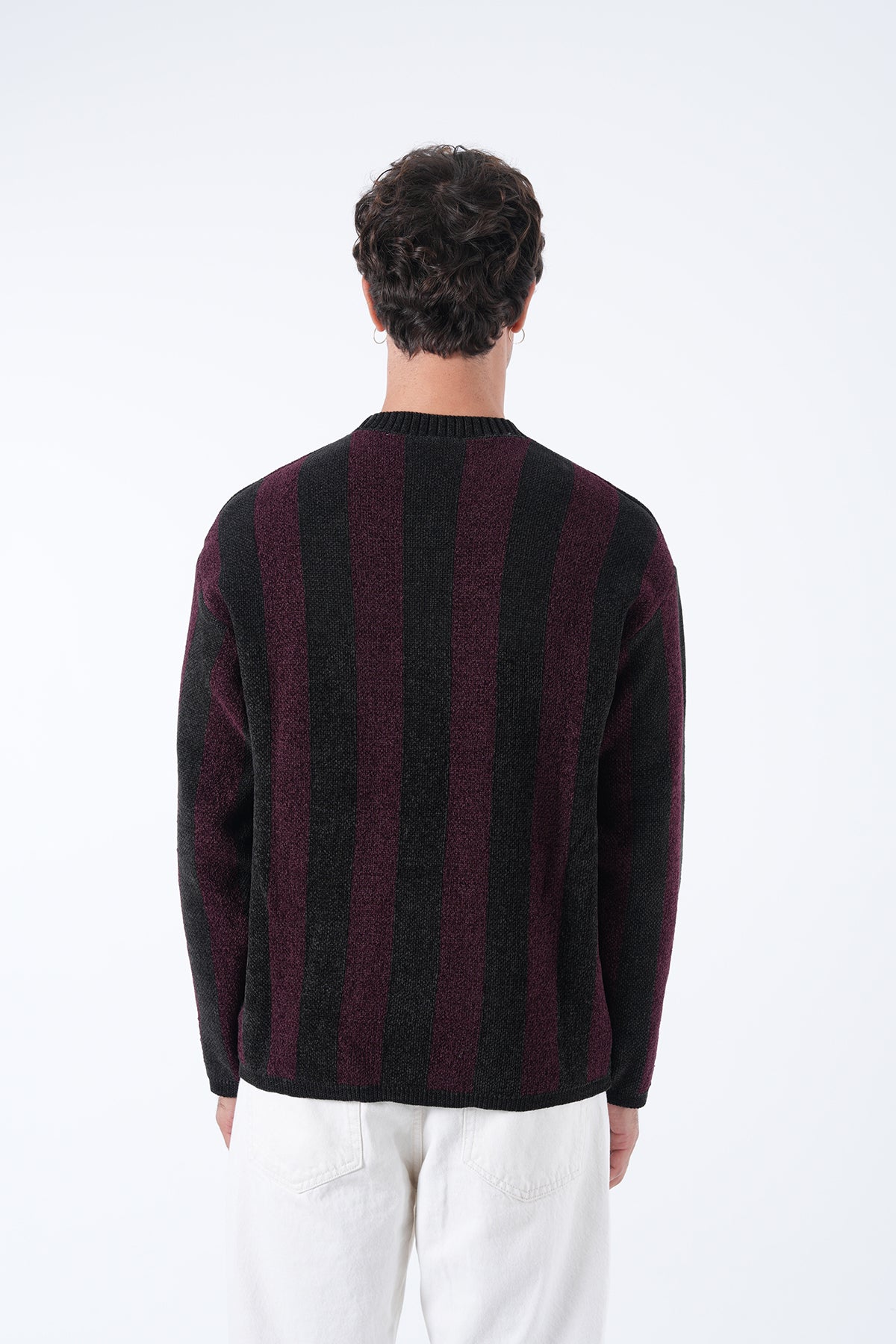 Uzun kollu, yuvarlak yakalı ve Oversize kalıplı triko kazak. Jakarlı dokusu ve yatay çizgili deseni ile klasik kazaklara modern bir hava katılmıştır. Konforlu ve yumuşak triko iplikten üretilmiştir.