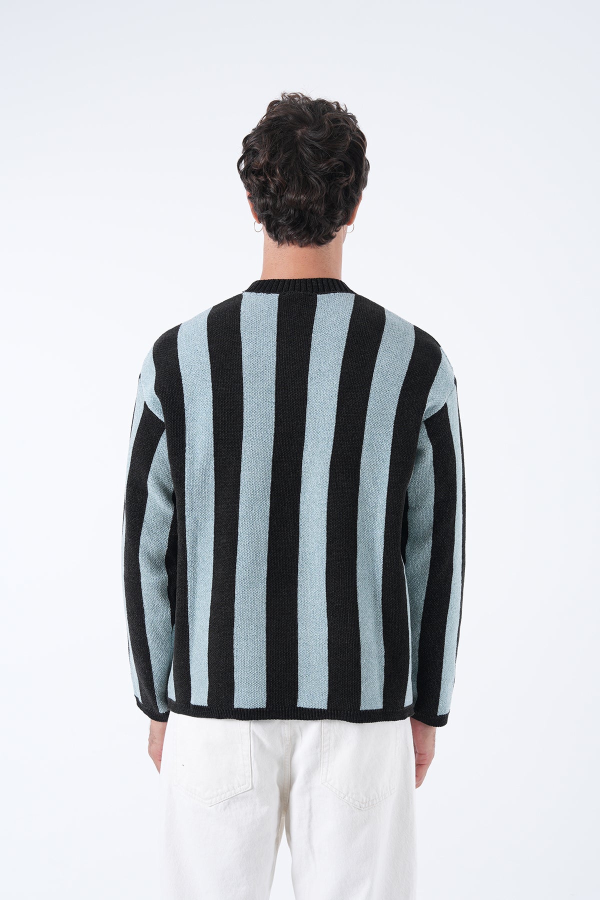 Uzun kollu, yuvarlak yakalı ve Oversize kalıplı triko kazak. Jakarlı dokusu ve yatay çizgili deseni ile klasik kazaklara modern bir hava katılmıştır. Konforlu ve yumuşak triko iplikten üretilmiştir.