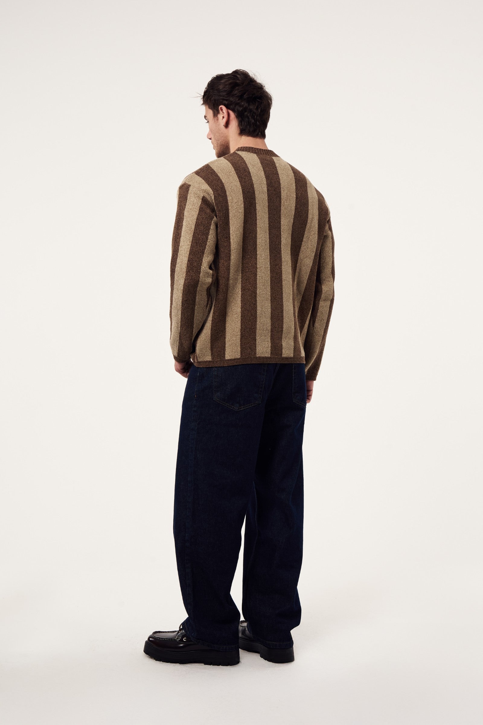 Uzun kollu, yuvarlak yakalı ve Oversize kalıplı triko kazak. Jakarlı dokusu ve yatay çizgili deseni ile klasik kazaklara modern bir hava katılmıştır. Konforlu ve yumuşak triko iplikten üretilmiştir.