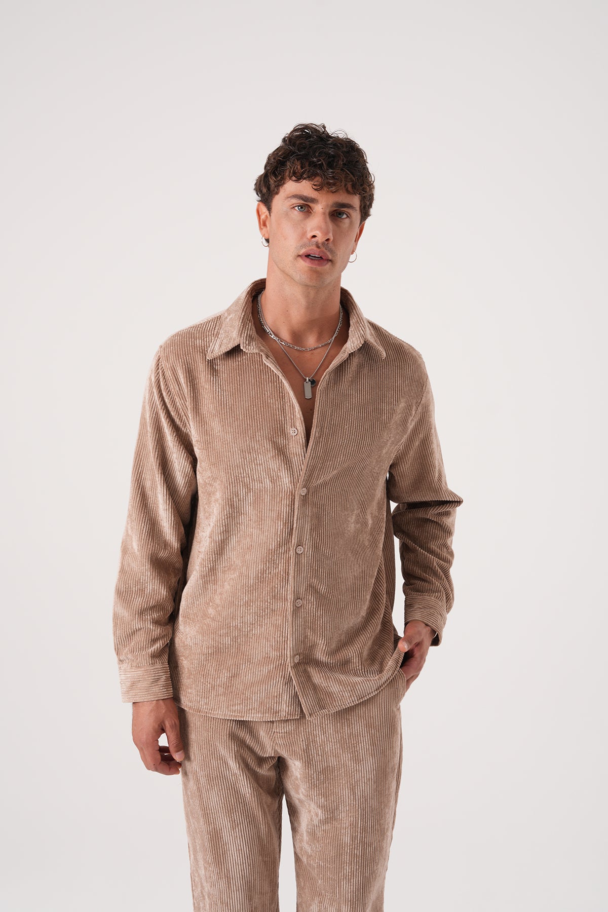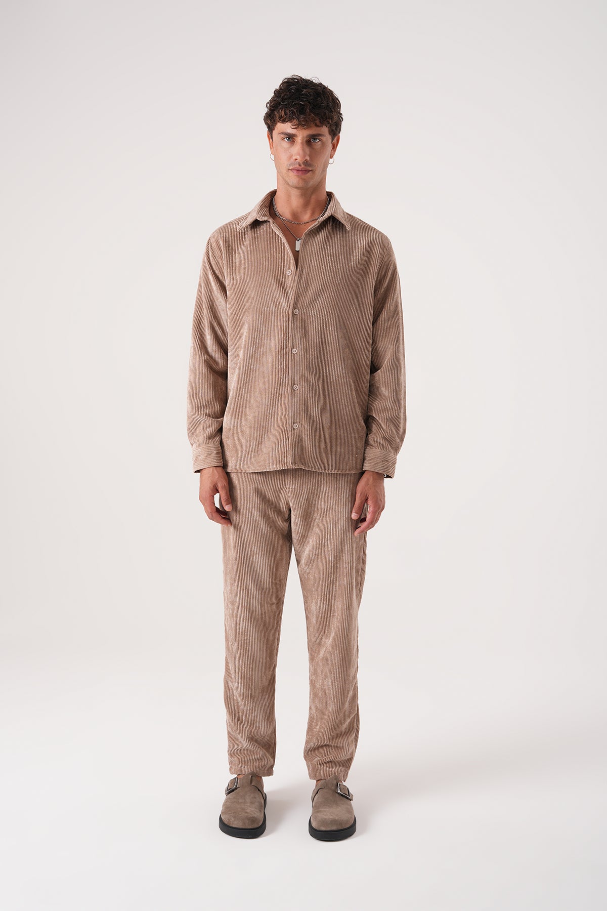 Kadifeye özgü yumuşak ve zengin fitilli dokusu, üstün kaliteli malzemelerle buluşarak size benzersiz bir konfor ve şıklık vaat eder. Modern boyfriend kalıbı, takıma çağdaş bir yorum katarken, vücuda oturmayan rahat gömlek ve kontrollü daralan pantolon kesimi sayesinde gün boyu hareket özgürlüğünüz korunur.