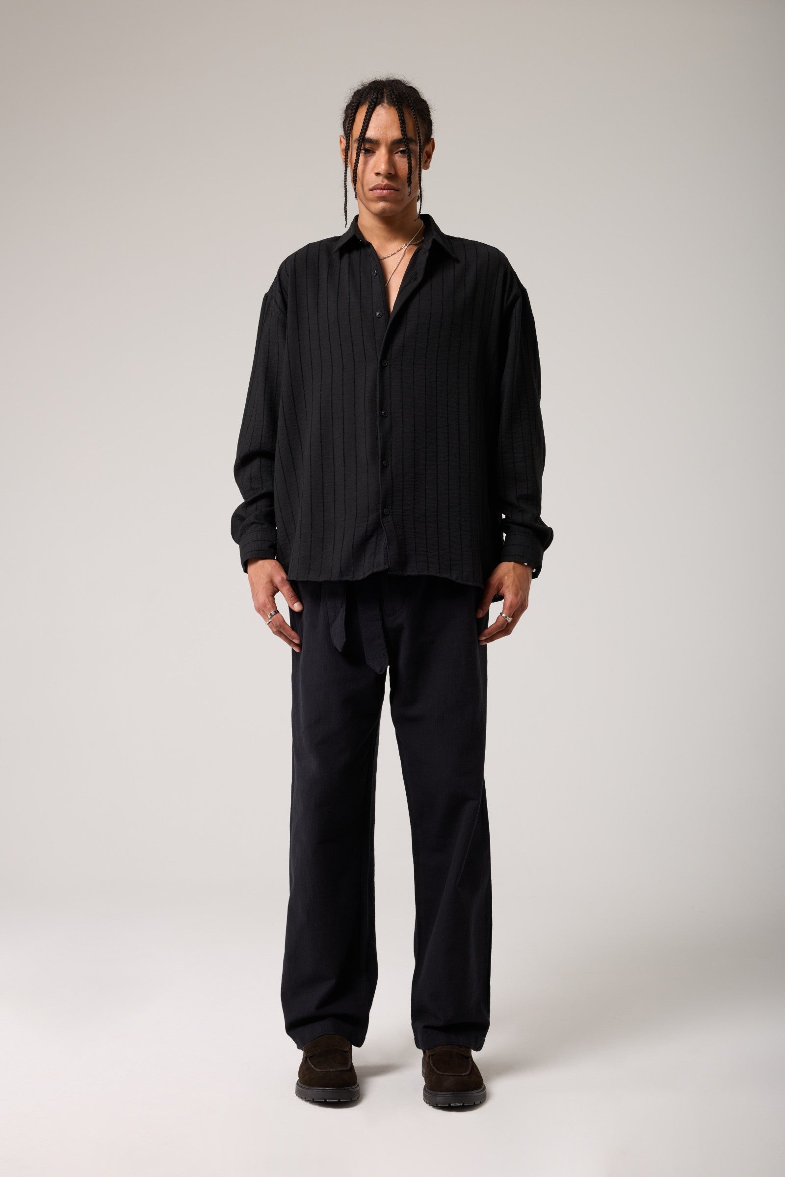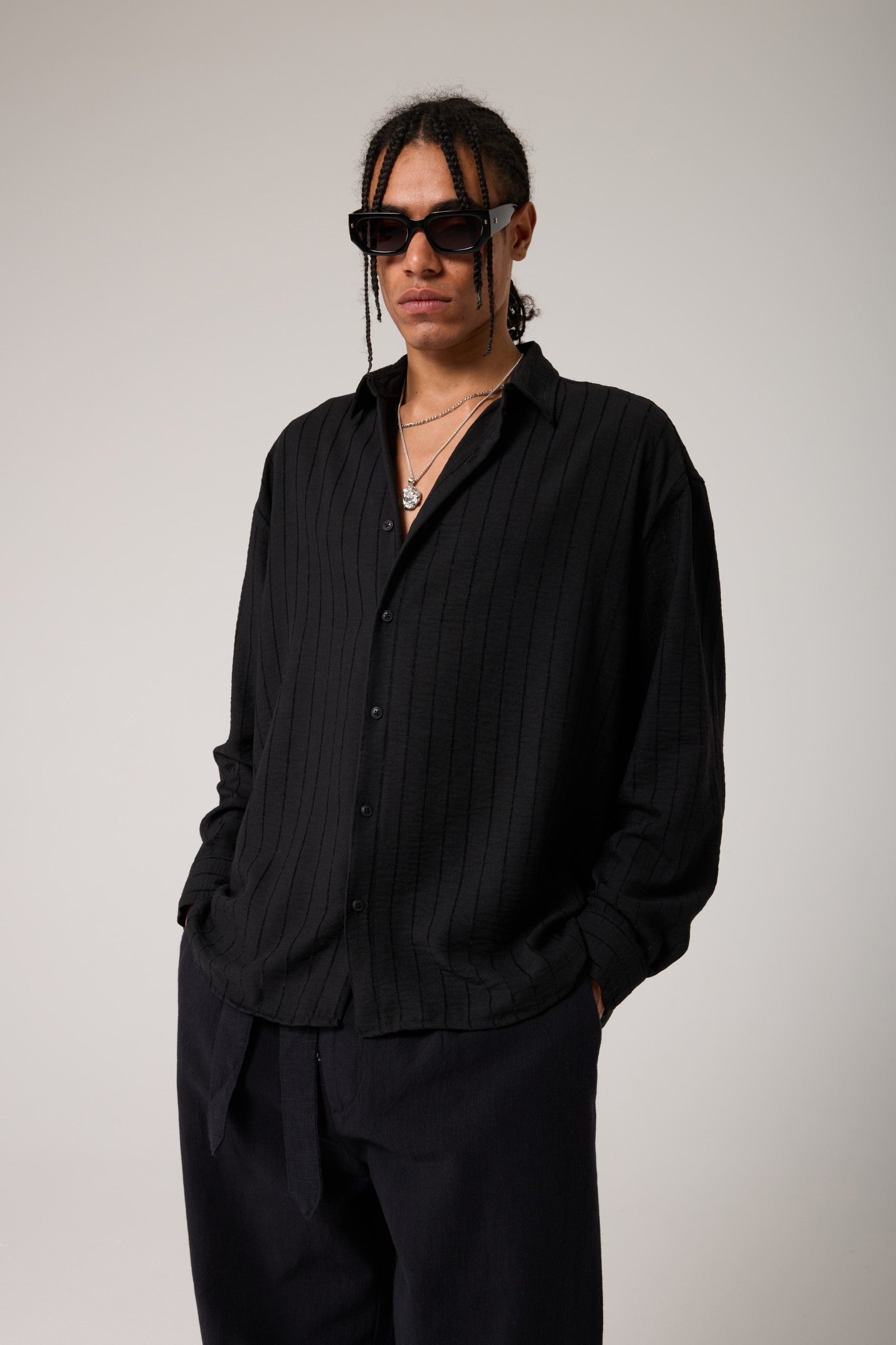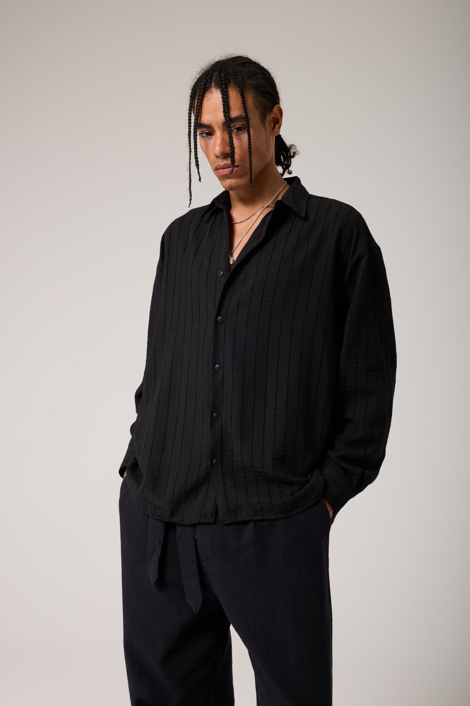 Keten Görünümlü Çizgili Gömlek