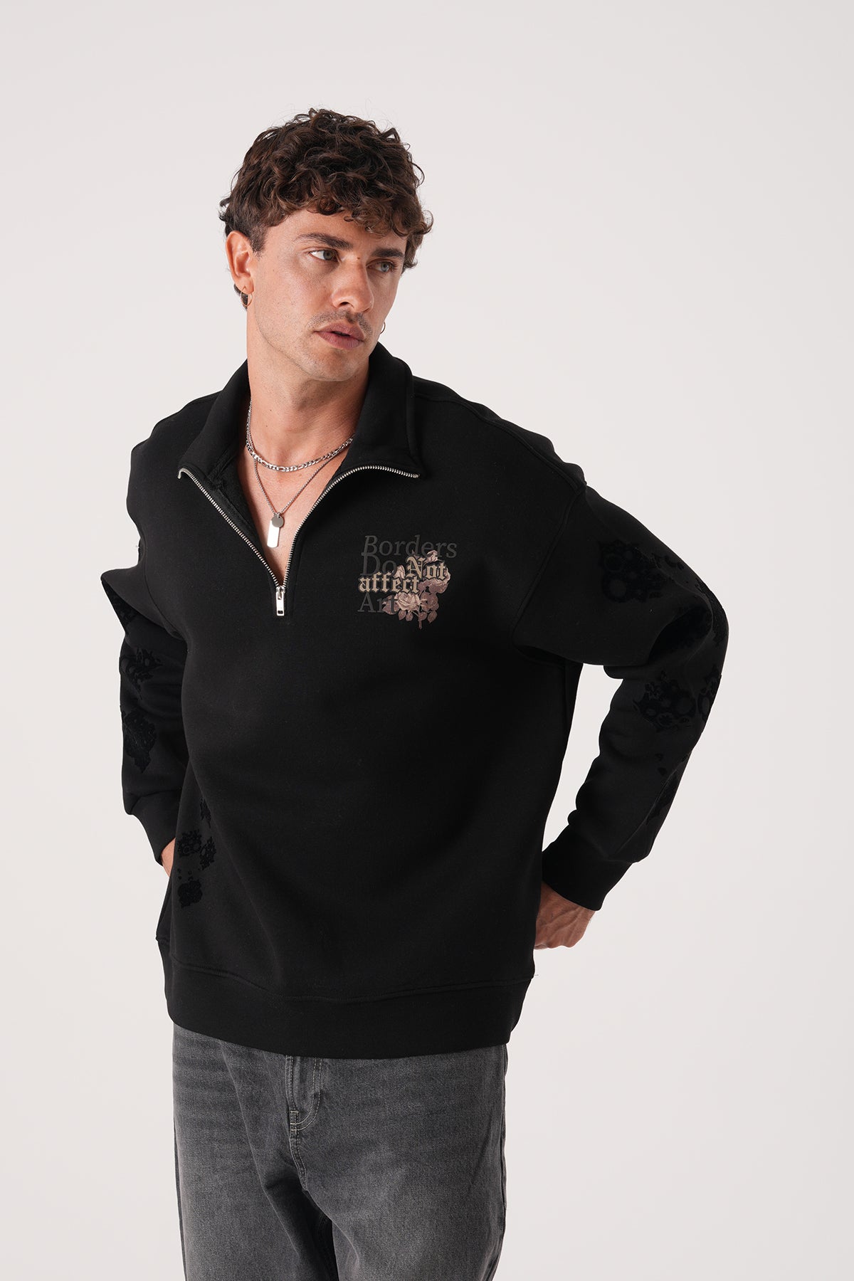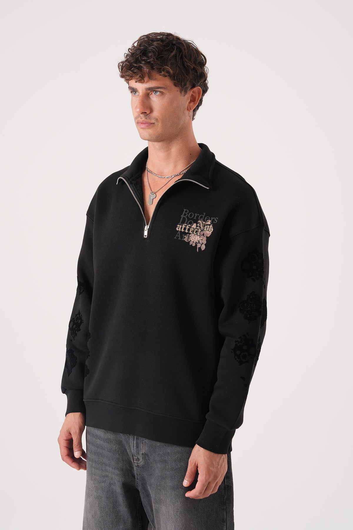 Uzun kollu, fermuarlı yaka sweatshirt. Regular Fit kalıbı ile rahat bir kullanım sunar. Ribana manşet ve bel ucu detayları bulunur. Farklı renklerde ve dokuda olan kontrast deseni sayesinde dinamik ve modern bir görünüm sağlar. Günlük ve şehir giyimi için idealdir.