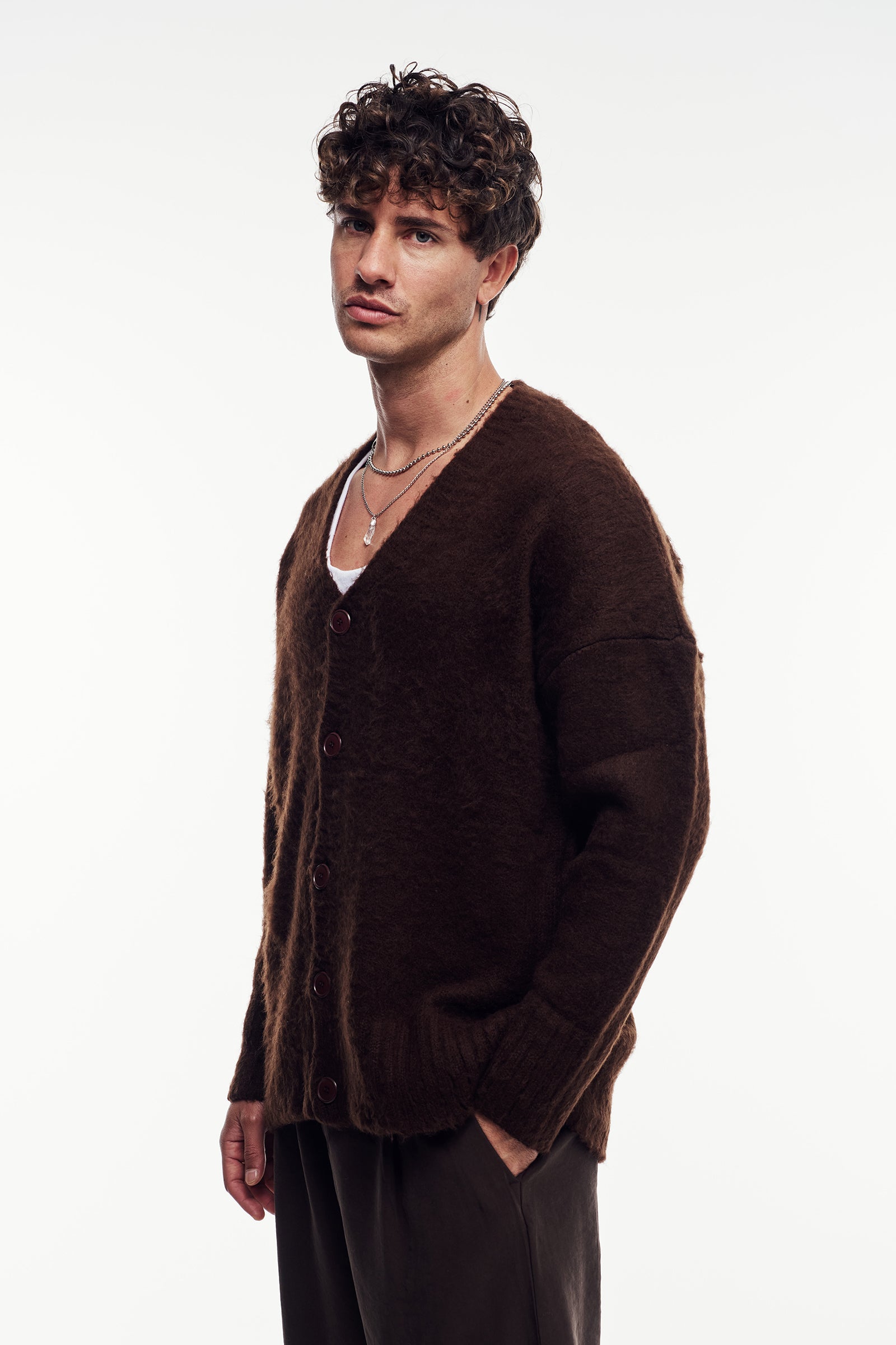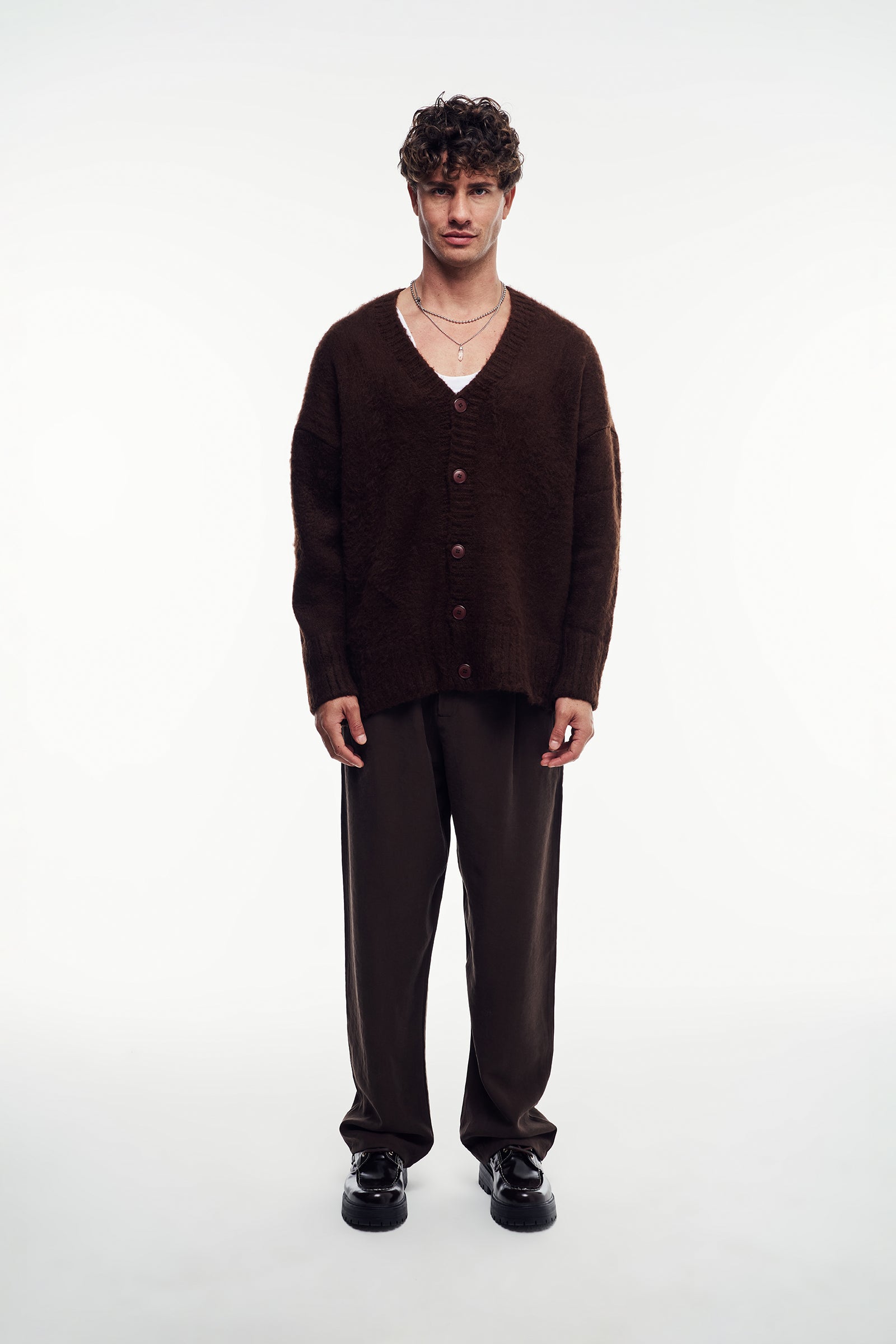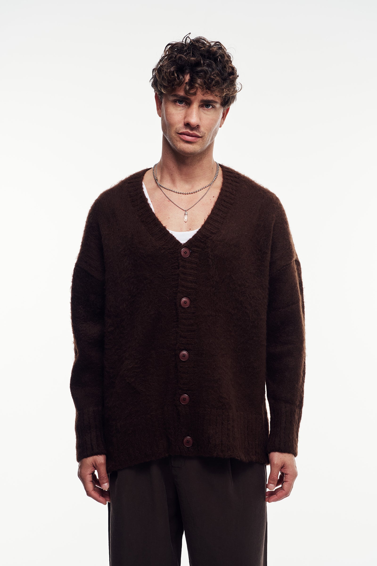Yumuşak dokulu triko iplikten, uzun kollu hırka. Loose Fit kalıbı ile konforlu ve modern bir duruş sağlar. Önü düğme kapamalı, V yaka tasarıma sahiptir.