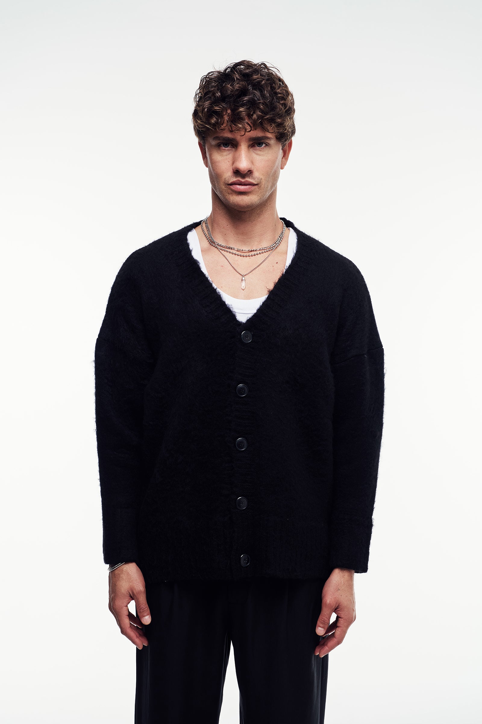 Yumuşak dokulu triko iplikten, uzun kollu hırka. Loose Fit kalıbı ile konforlu ve modern bir duruş sağlar. Önü düğme kapamalı, V yaka tasarıma sahiptir.