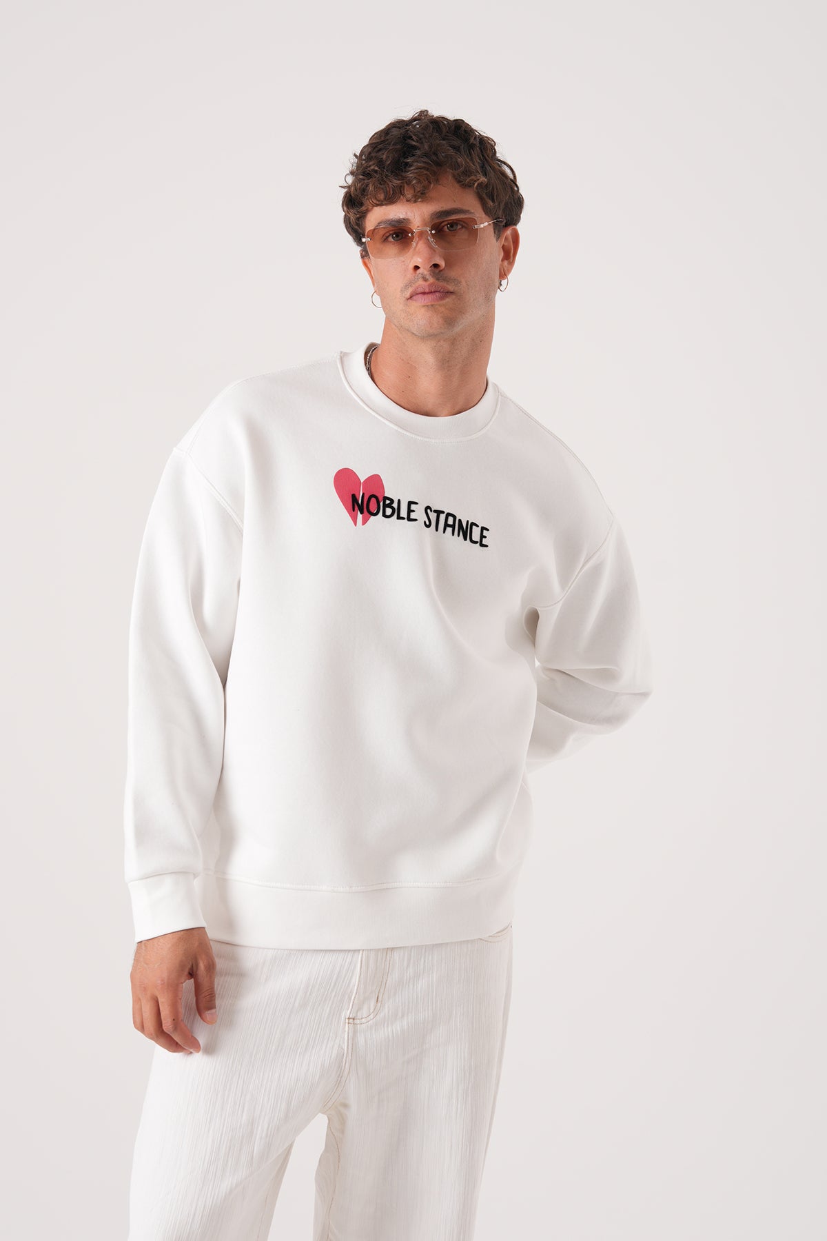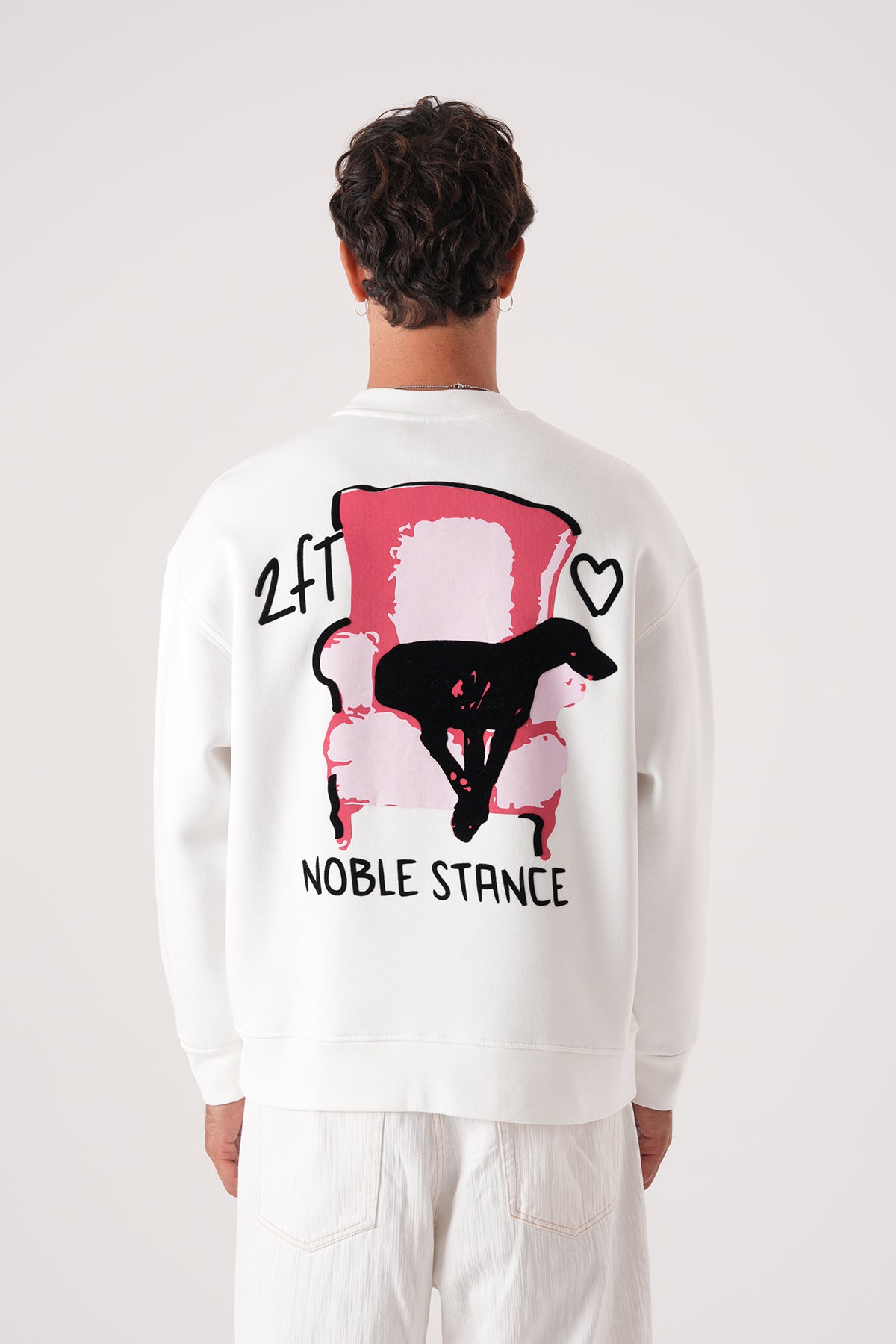 Uzun kollu, bisiklet yaka sweatshirt. Yumuşak kumaşıyla konfor sağlayan, Regular Fit kesime sahiptir. Ön kısımda ve arkada yer alan Noble Stance grafik baskı detayı, tasarıma güçlü ve modern bir ifade katar.