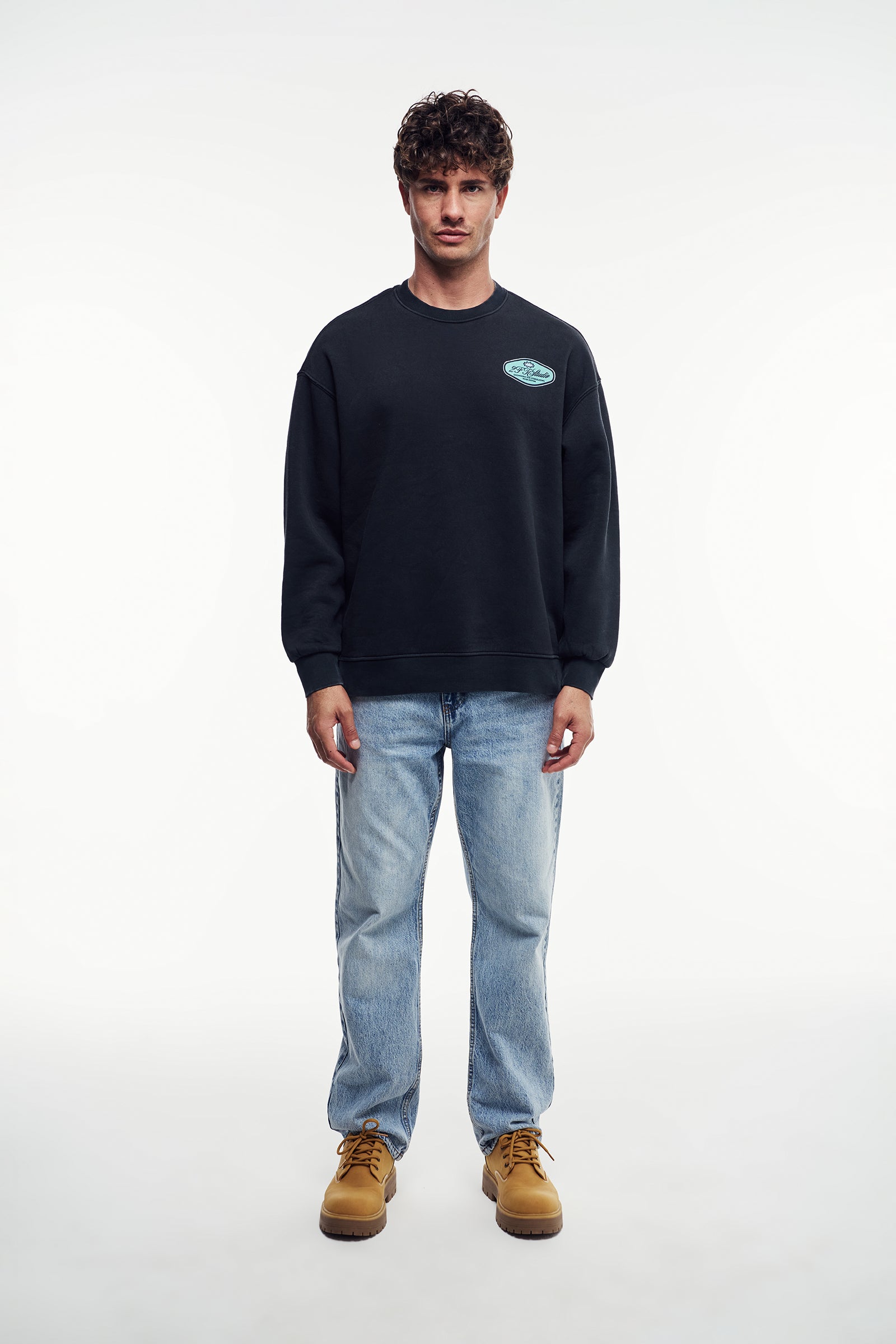 Bisiklet yaka, uzun kollu sweatshirt. Modern sokak stili için hacimli bir silüet sunan Oversize kesime sahiptir. Ürüne karakter katan ve özgün bir hava veren patch detaylarıyla zenginleştirilmiştir. Manşet ve etek uçları ribanalı kaplamadır.