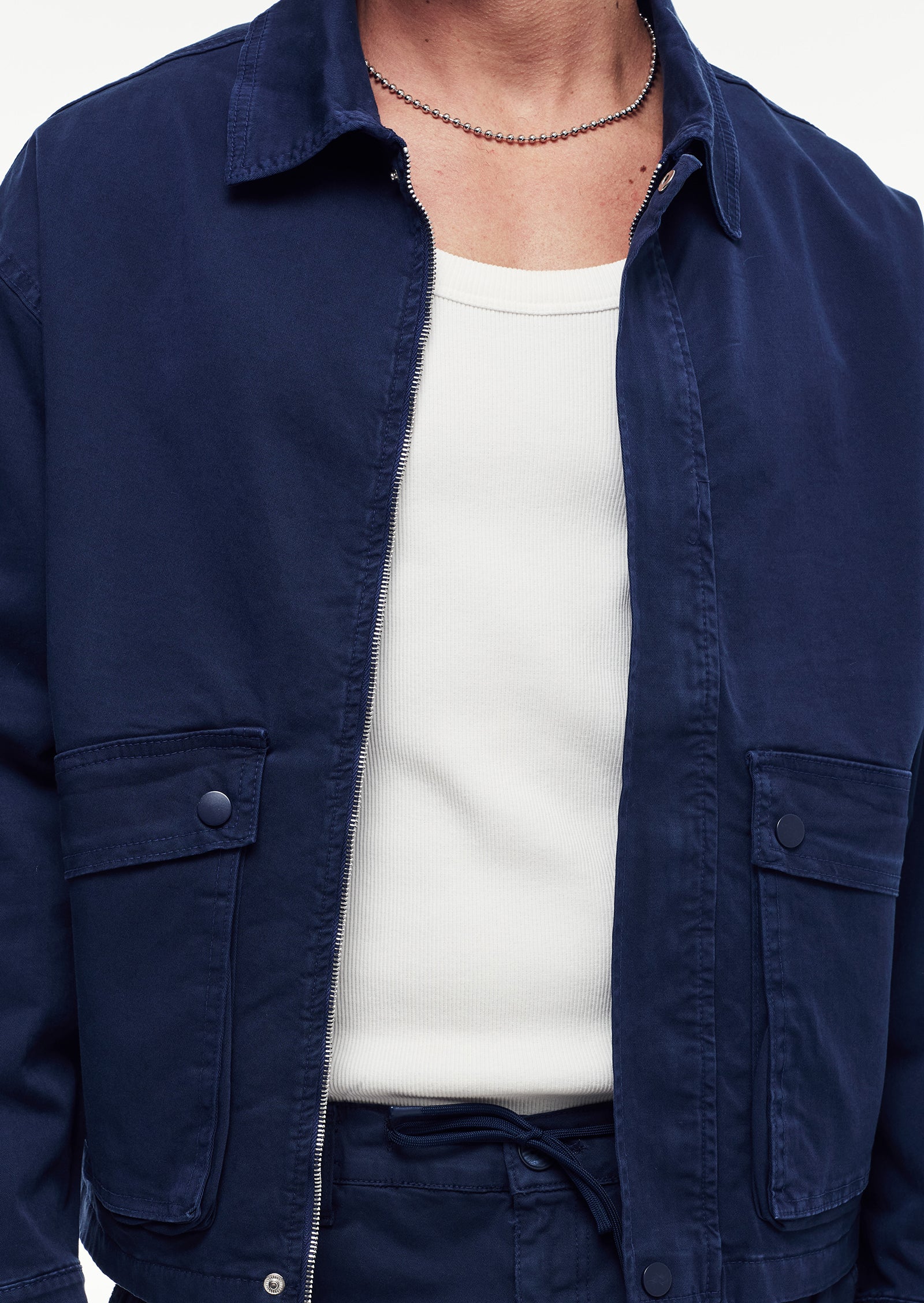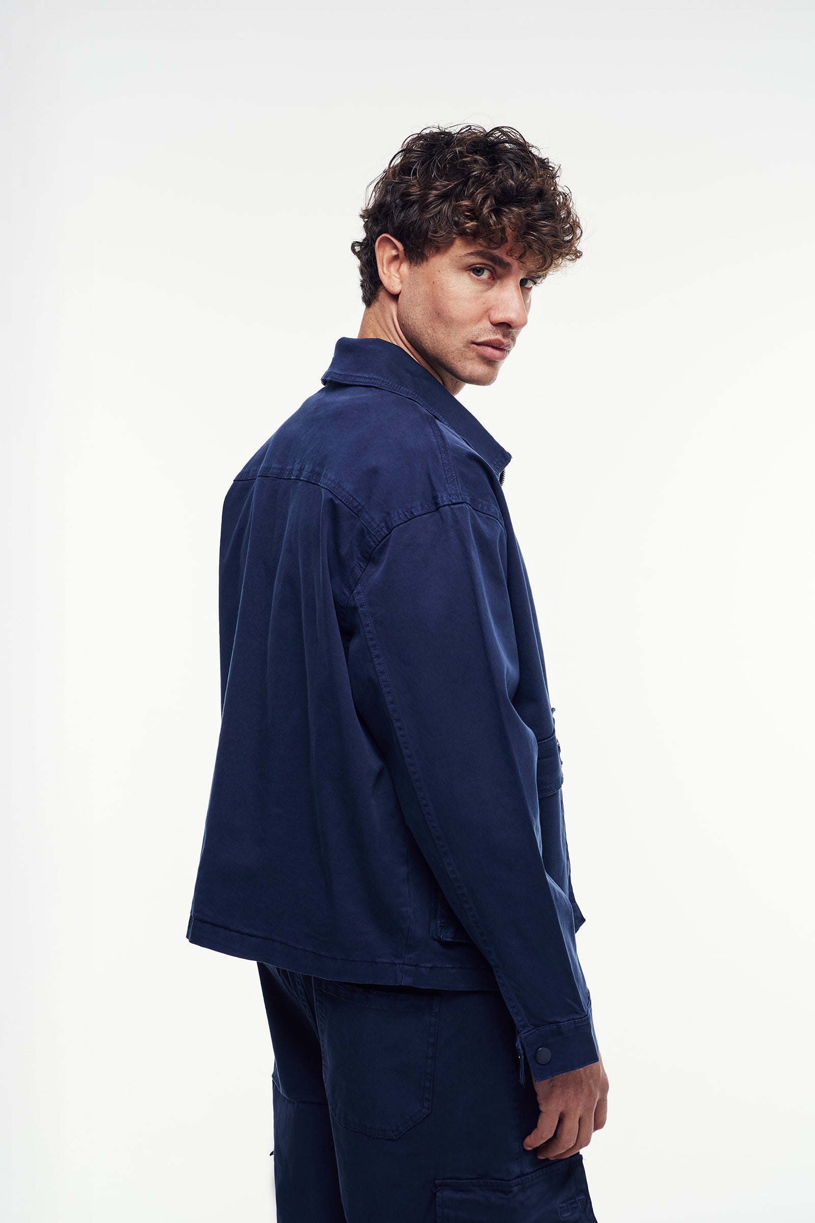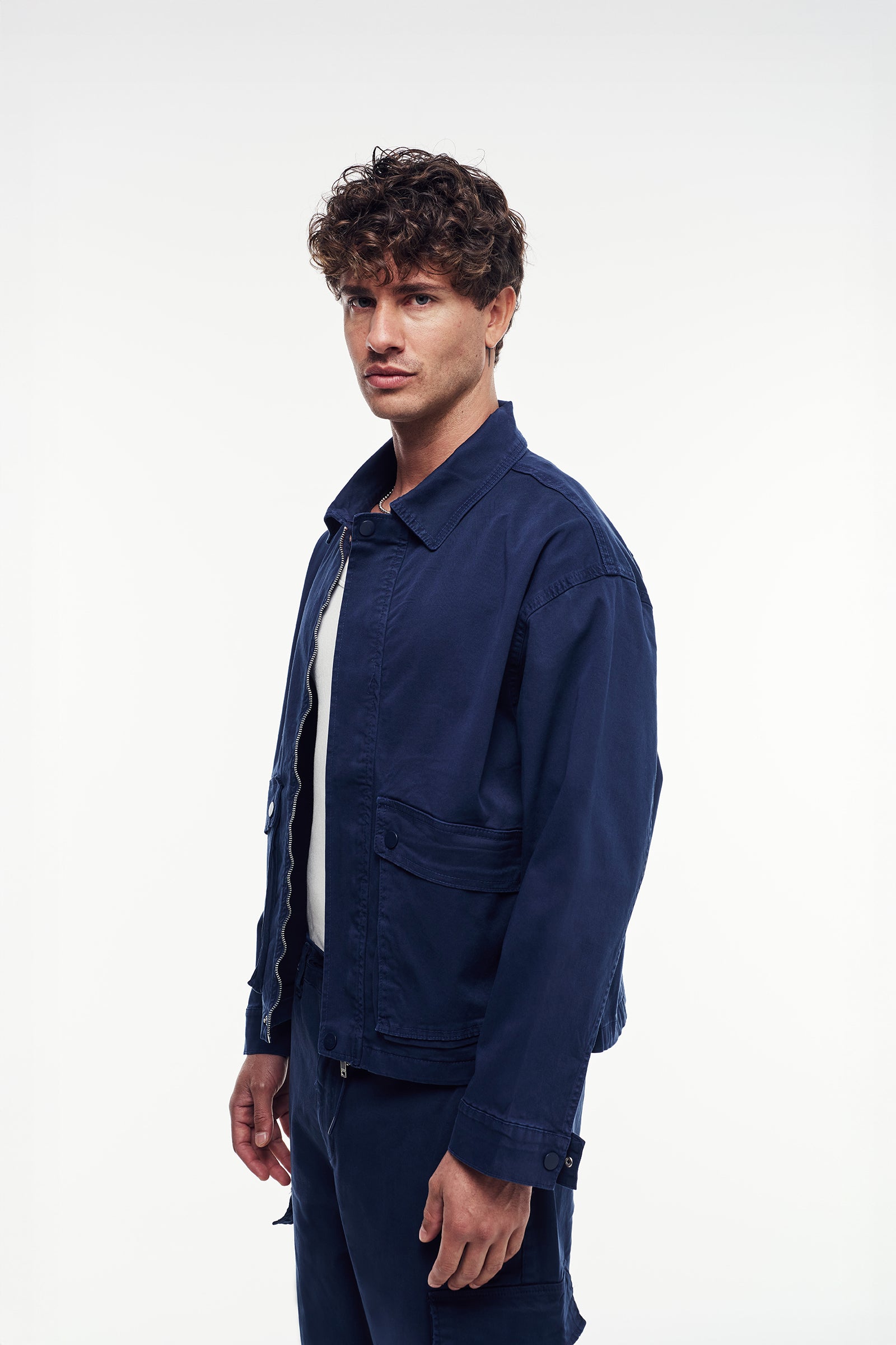 Yıpratılmış görünümlü kumaştan üretilen ceket, rahat kesimiyle modern bir duruş sunar. Önden düğmeli kapamaya sahip olan model, iki cepli ve rahat yapısıyla günlük kullanıma uygun şık bir görünüm oluşturur.