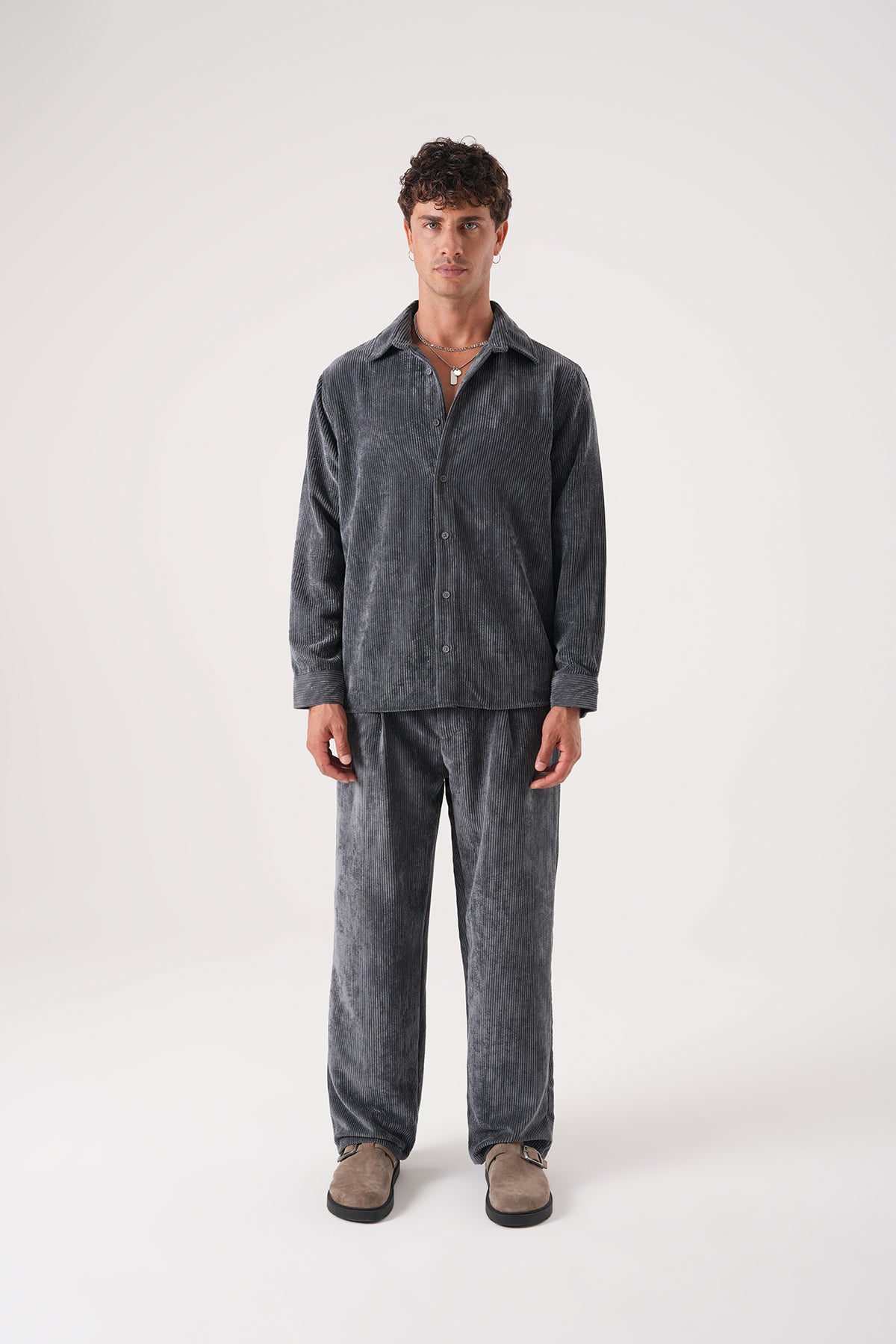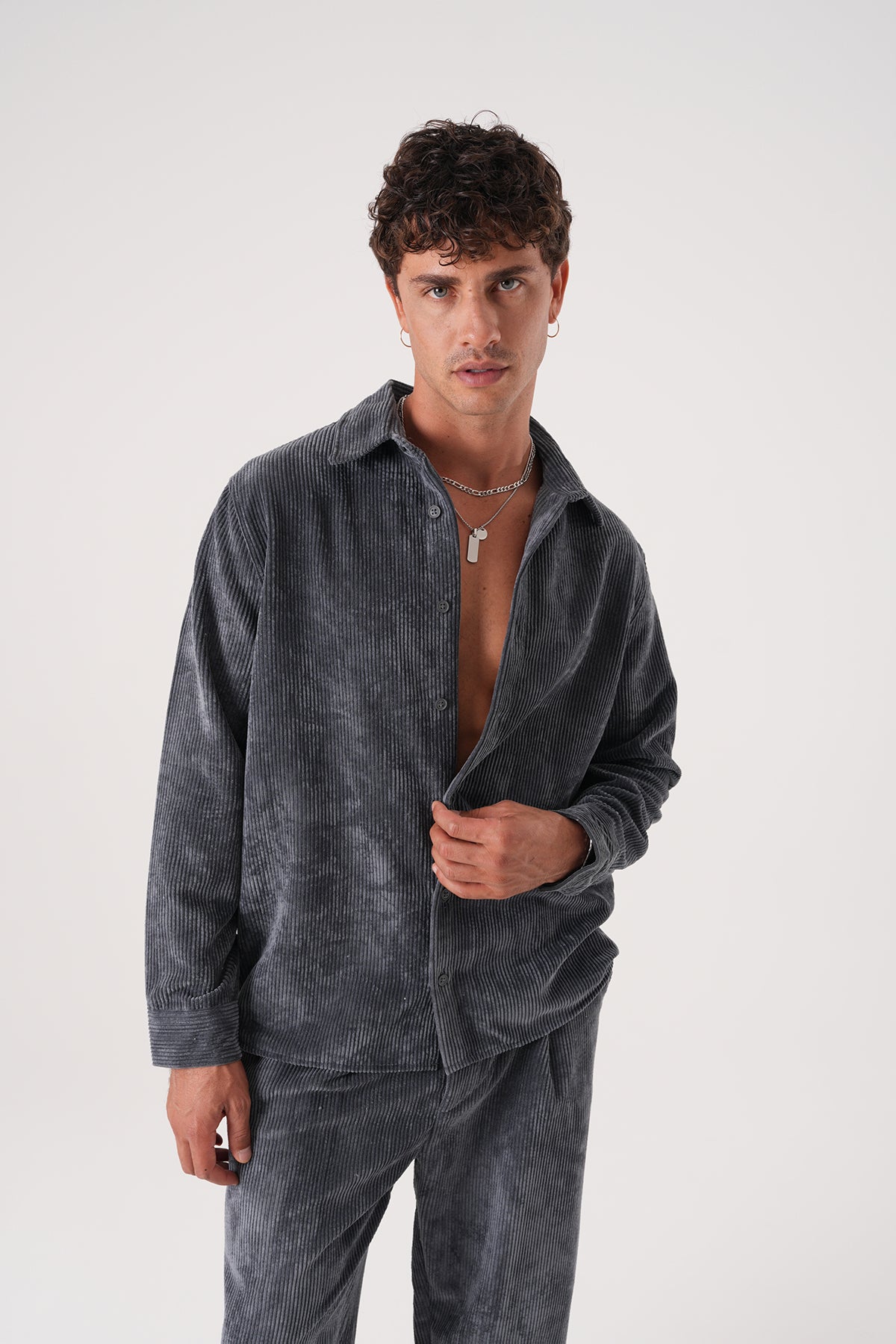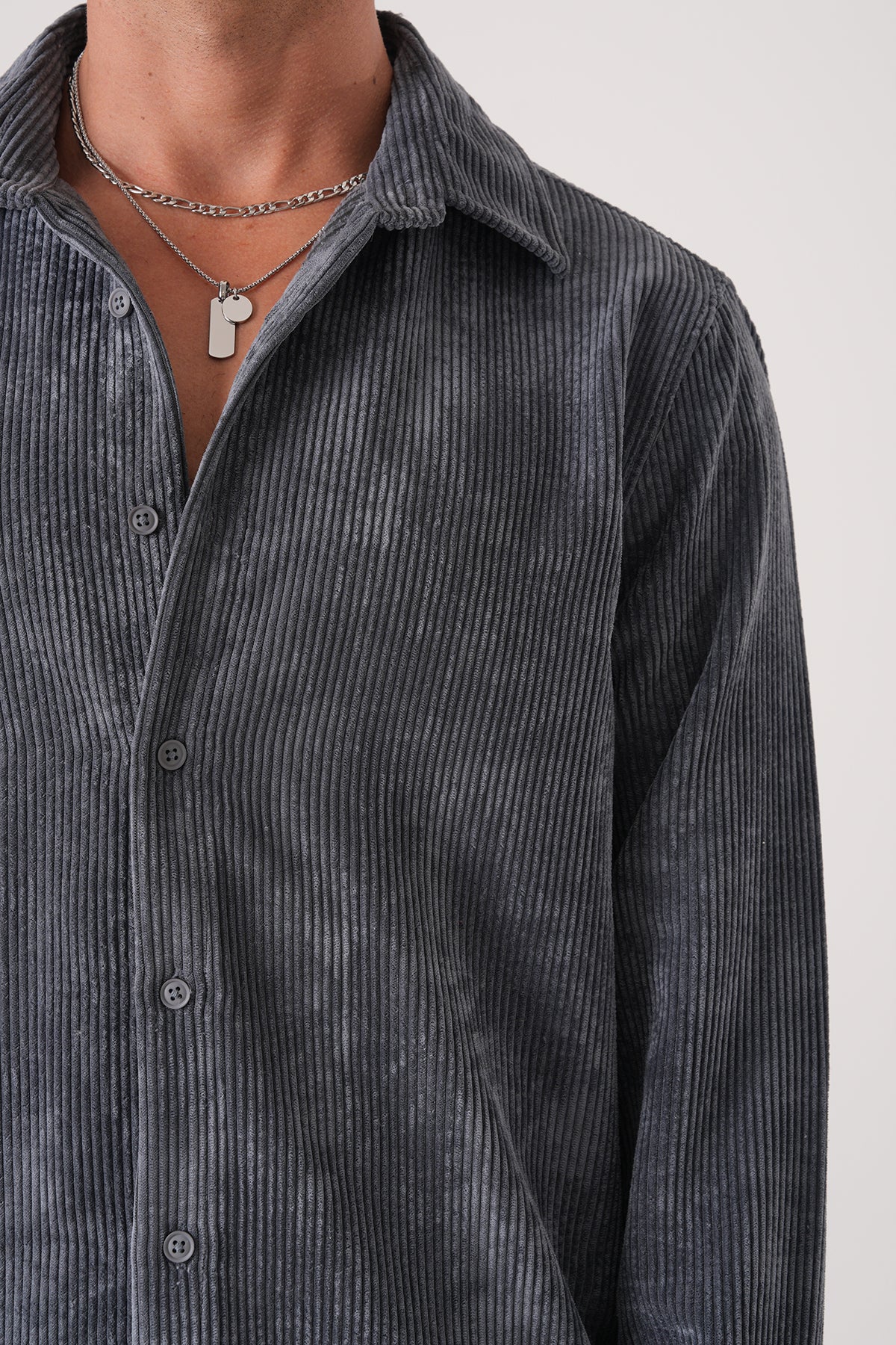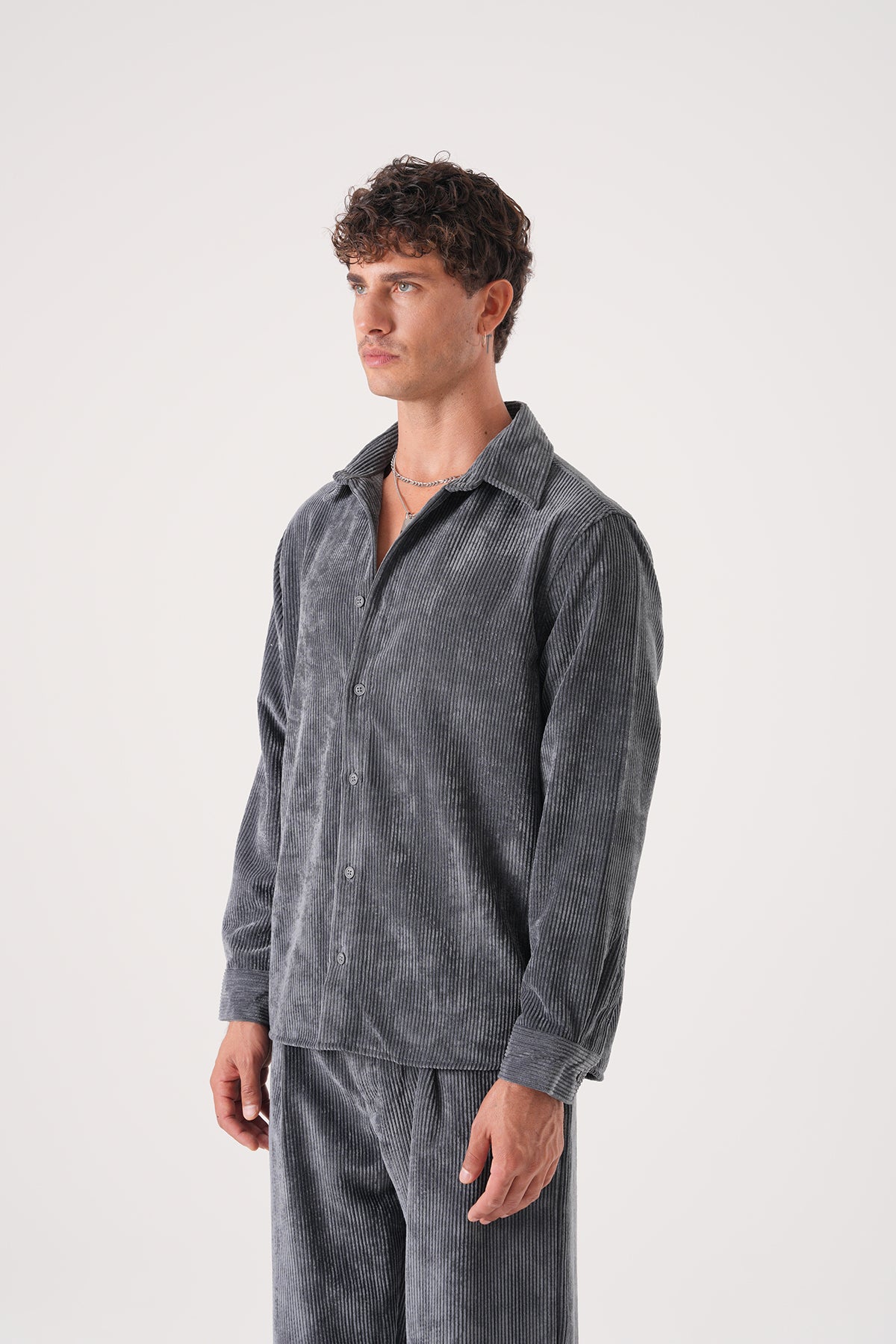 Pamuklu fitilli kadife gömlek, modern regular fit kesimi ve klasik düğmeli yaka detayıyla günlük ve şık kombinler için ideal.