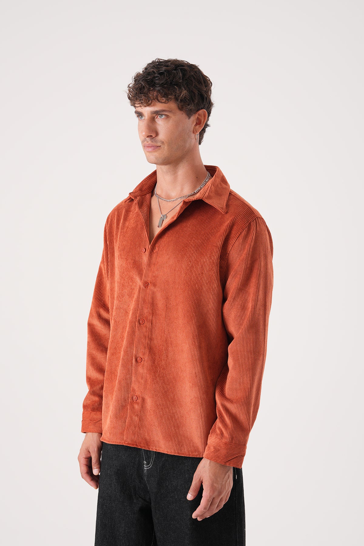 Pamuklu fitilli kadife gömlek, modern regular fit kesimi ve klasik düğmeli yaka detayıyla günlük ve şık kombinler için ideal.