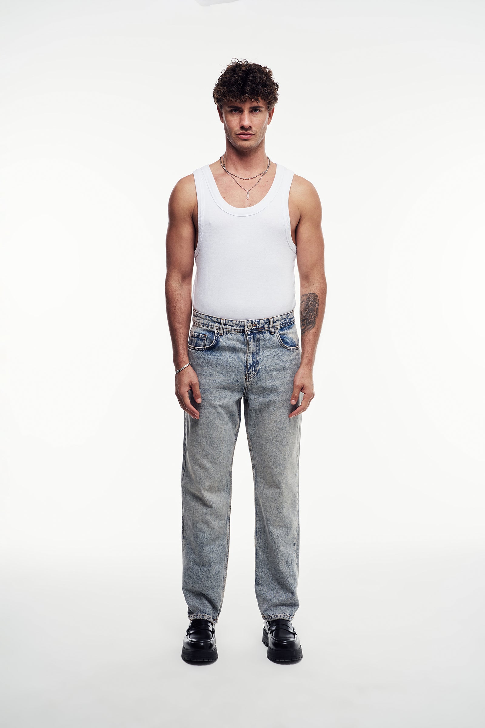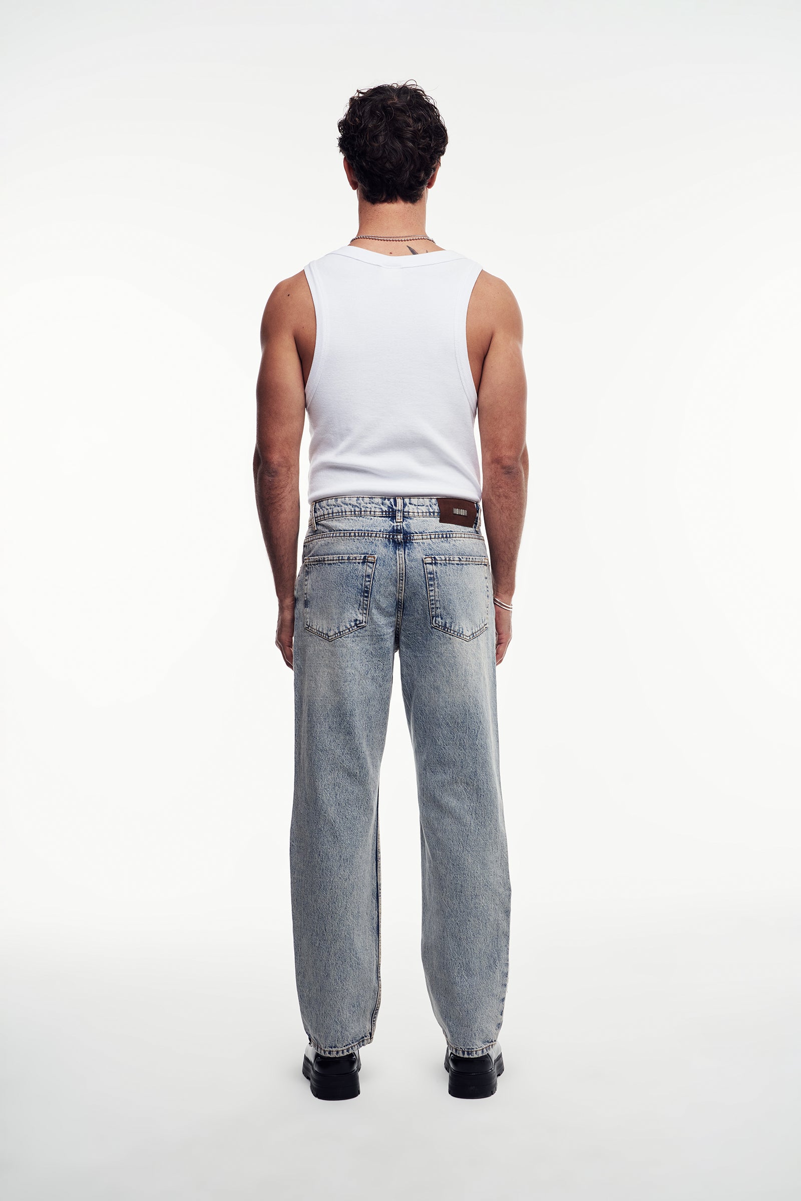 Modern sokak modası için Relaxed Fit kesimli jean pantolon. Düğme ve fermuar kapamalıdır, klasik beş cepli tasarıma sahiptir. Bol ve rahat kalıbı ile konforlu bir stil sunar.