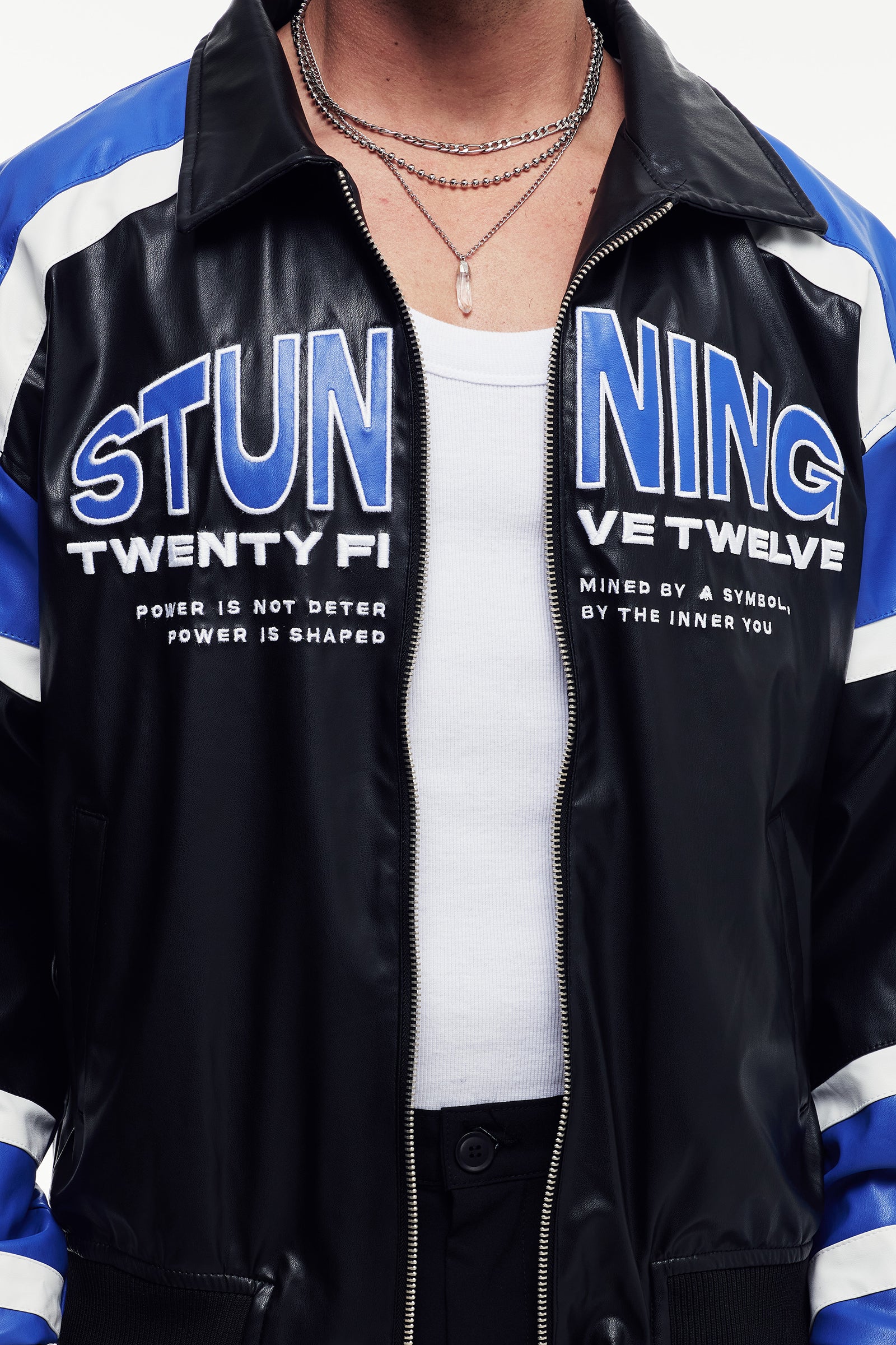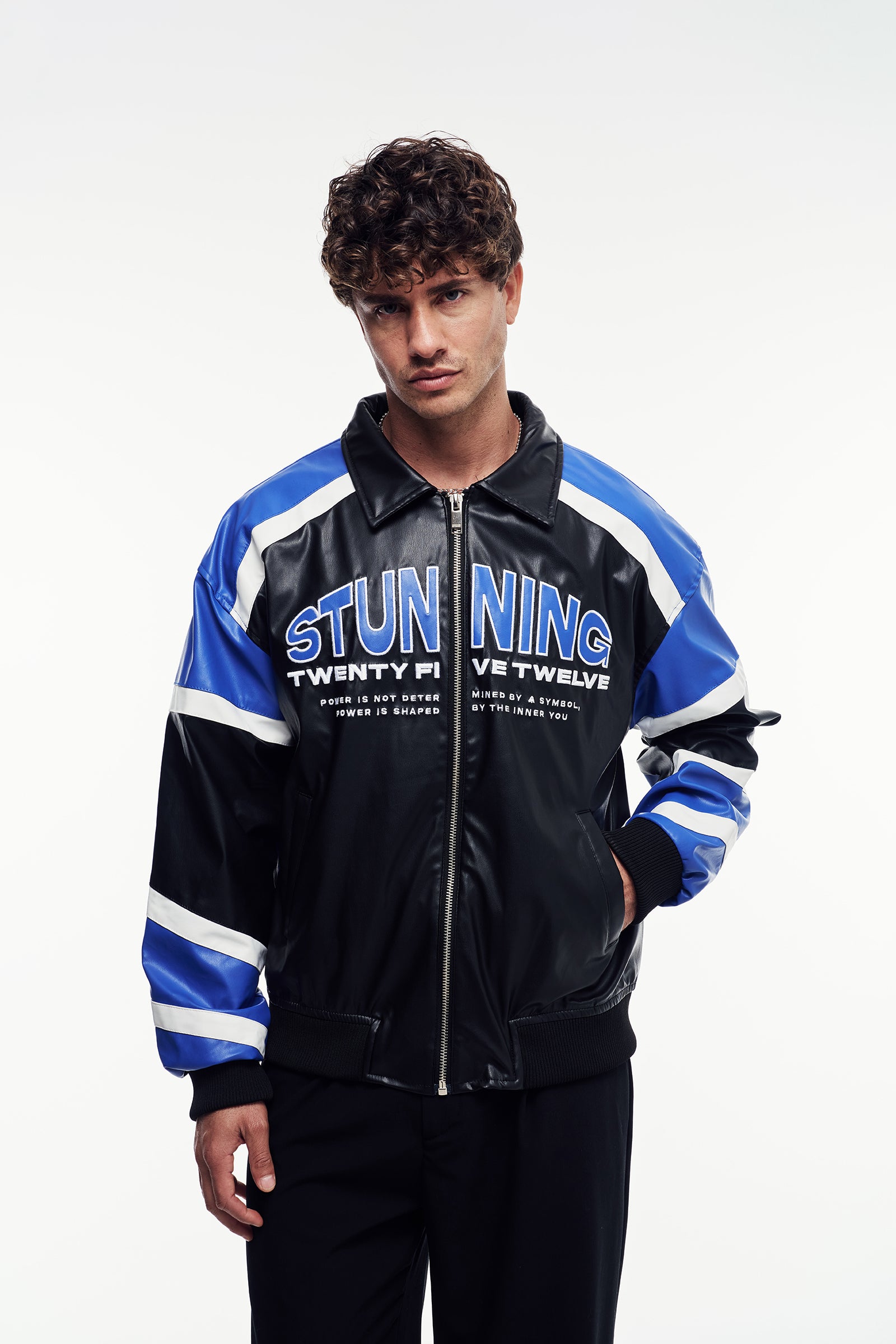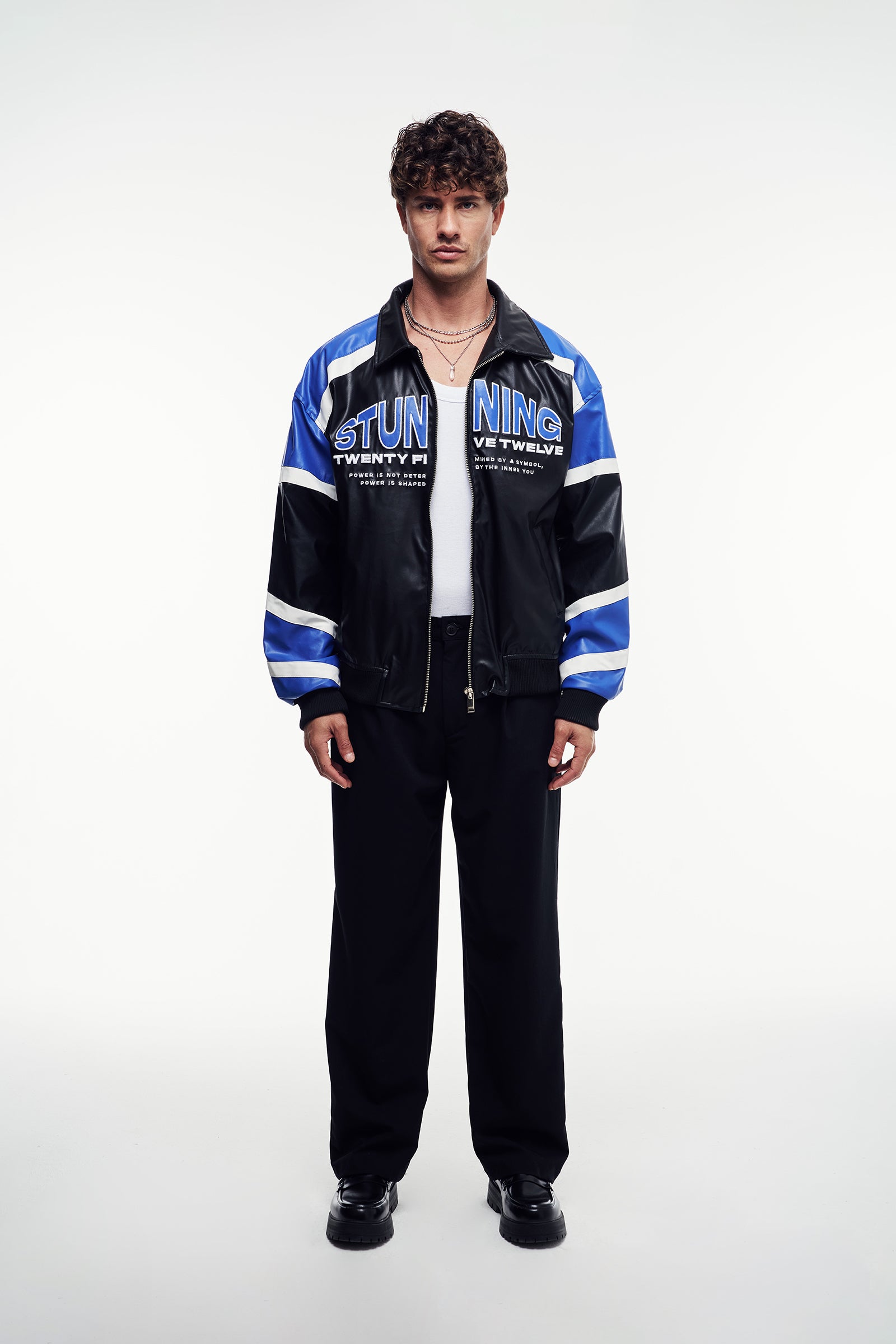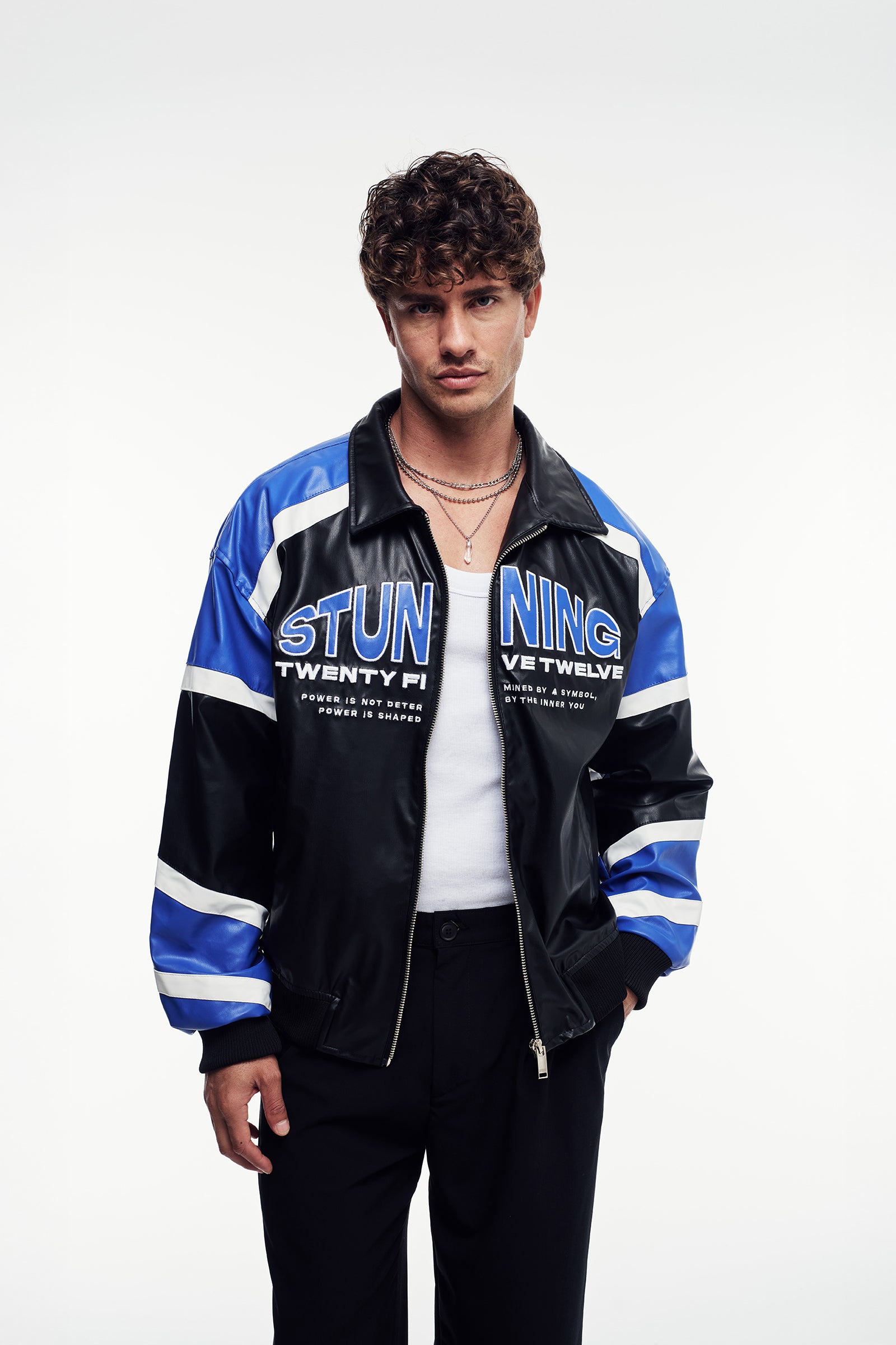 Yumuşak tuşeli suni deriden üretilmiş, uzun kollu ceket. Güçlü ve net bir silüet çizen klasik biker tasarımına sahiptir. Dik klapa yaka, önü metal fermuar kapama ve yan ceplerle tamamlanmıştır.