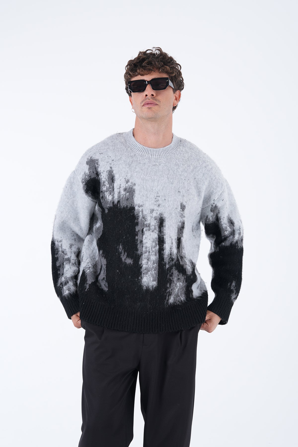 Şardonlu Bisiklet Yaka Degrade Desenli Kazak