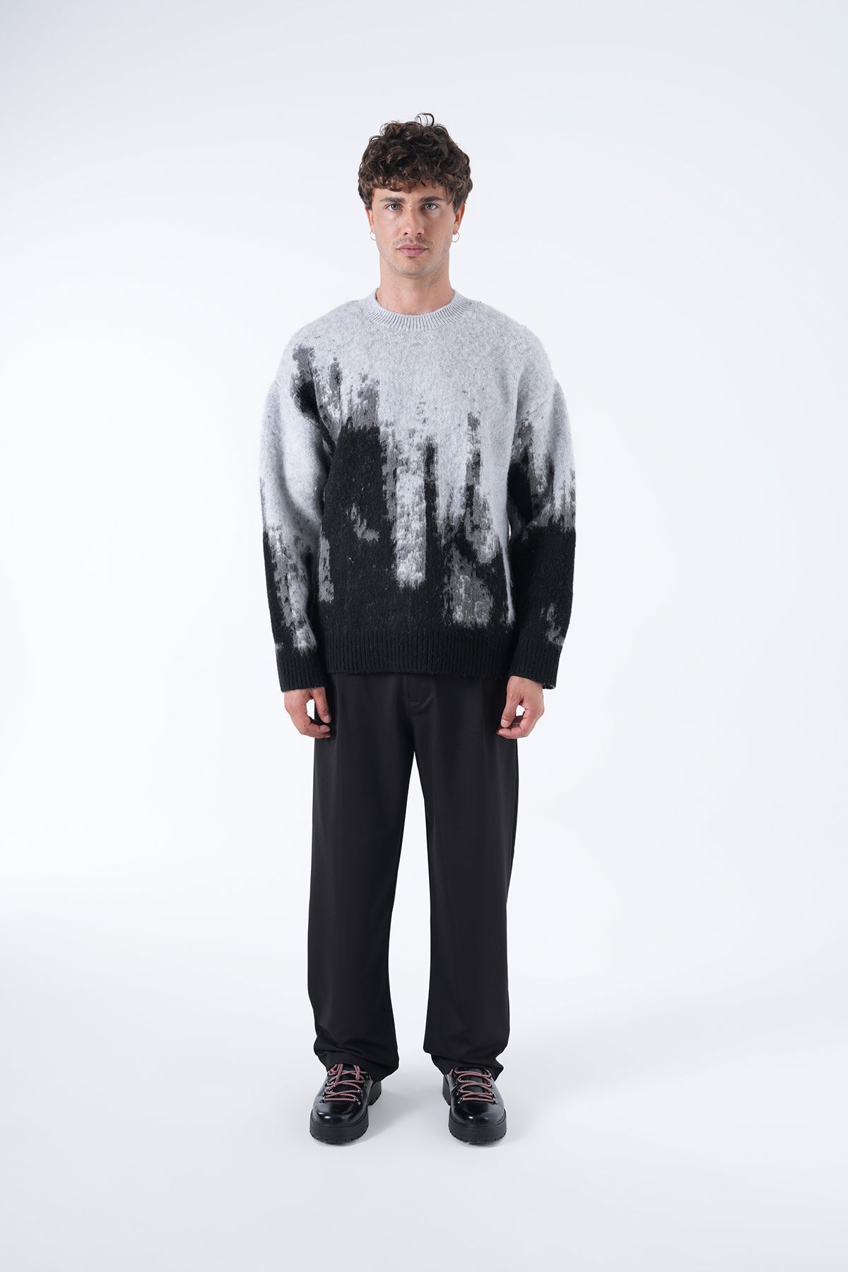 Bisiklet yaka, uzun kollu ve şardonlu dokulu bu kazak, degrade desenleriyle modern bir stil sunuyor.