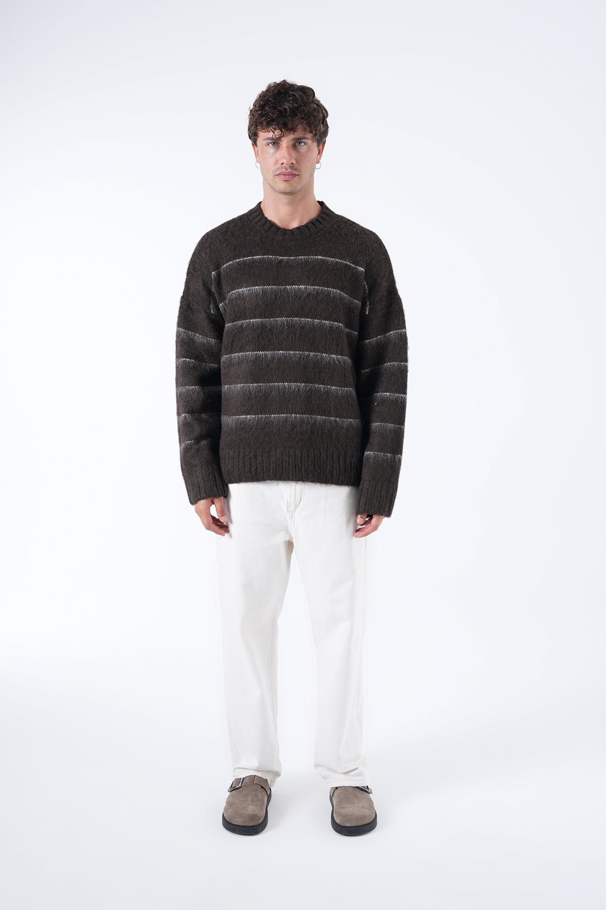 Uzun kollu, bisiklet yaka kazak. Yumuşak tuşeli, şardonlu ve tüylü triko iplikten üretilmiştir. Yatay çizgili deseni ile dinamik bir görünüm yaratır. Konforlu bir silüet için Rahat Kesimli yapıya sahiptir.