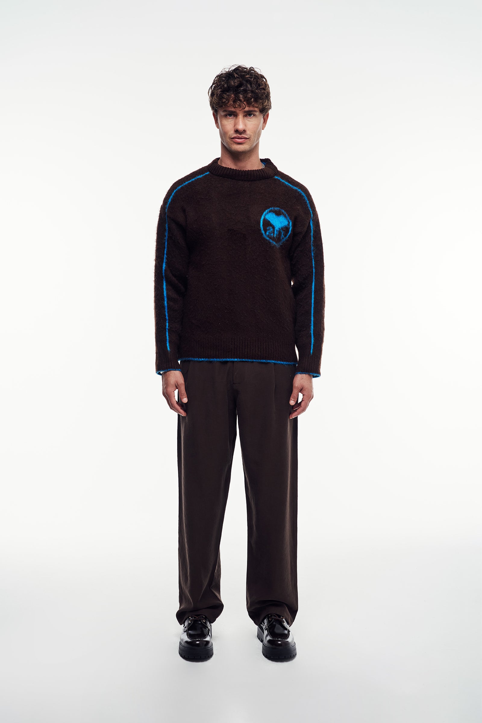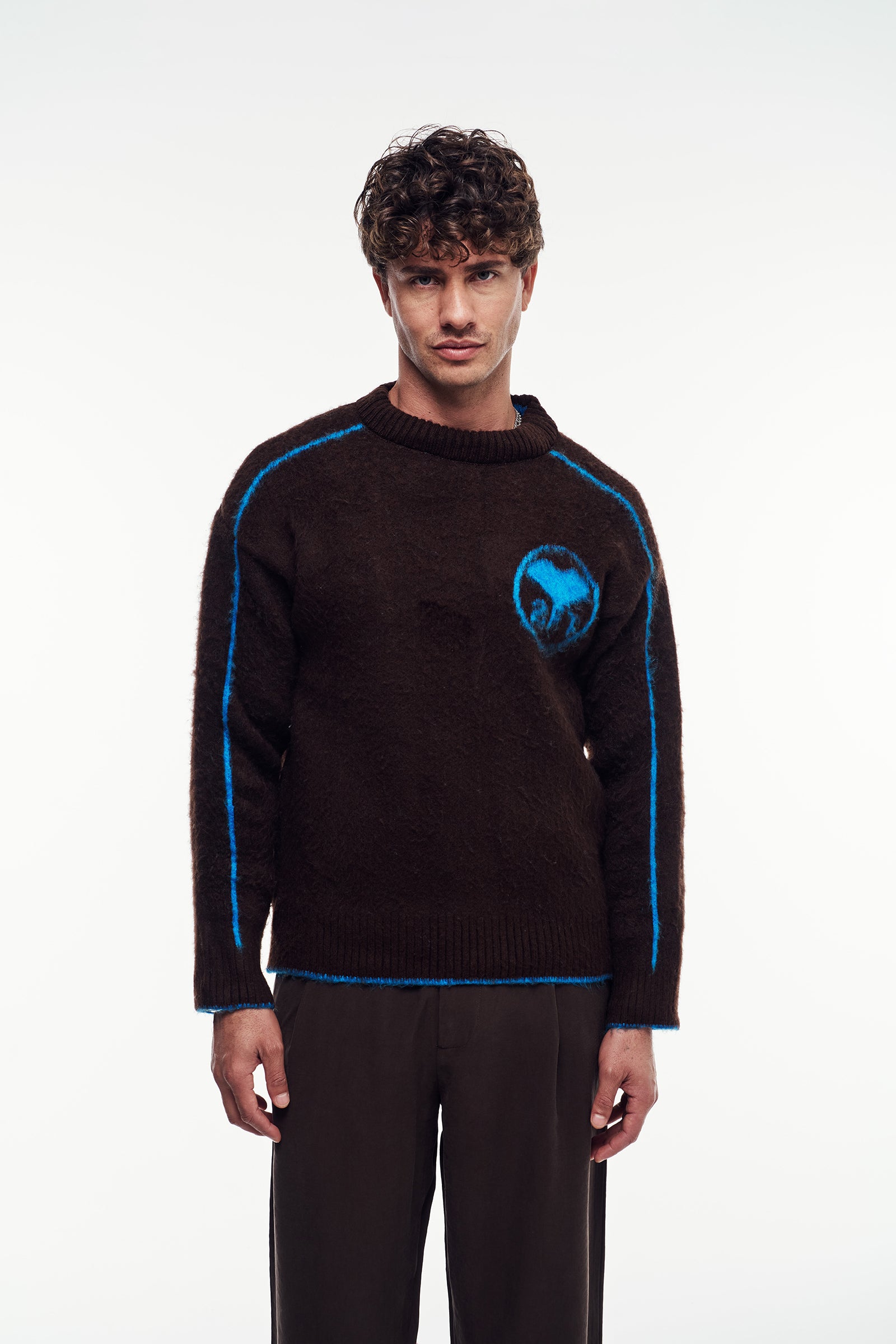 Yumuşak triko iplikten üretilmiş, uzun kollu, bisiklet yaka kazak. Yaka, manşet ve etek uçlarında kontrast şerit detayları bulunur. Yakınında yer alan kalp baskısı ile tasarıma özgün ve minimalist bir dokunuş eklenmiştir.