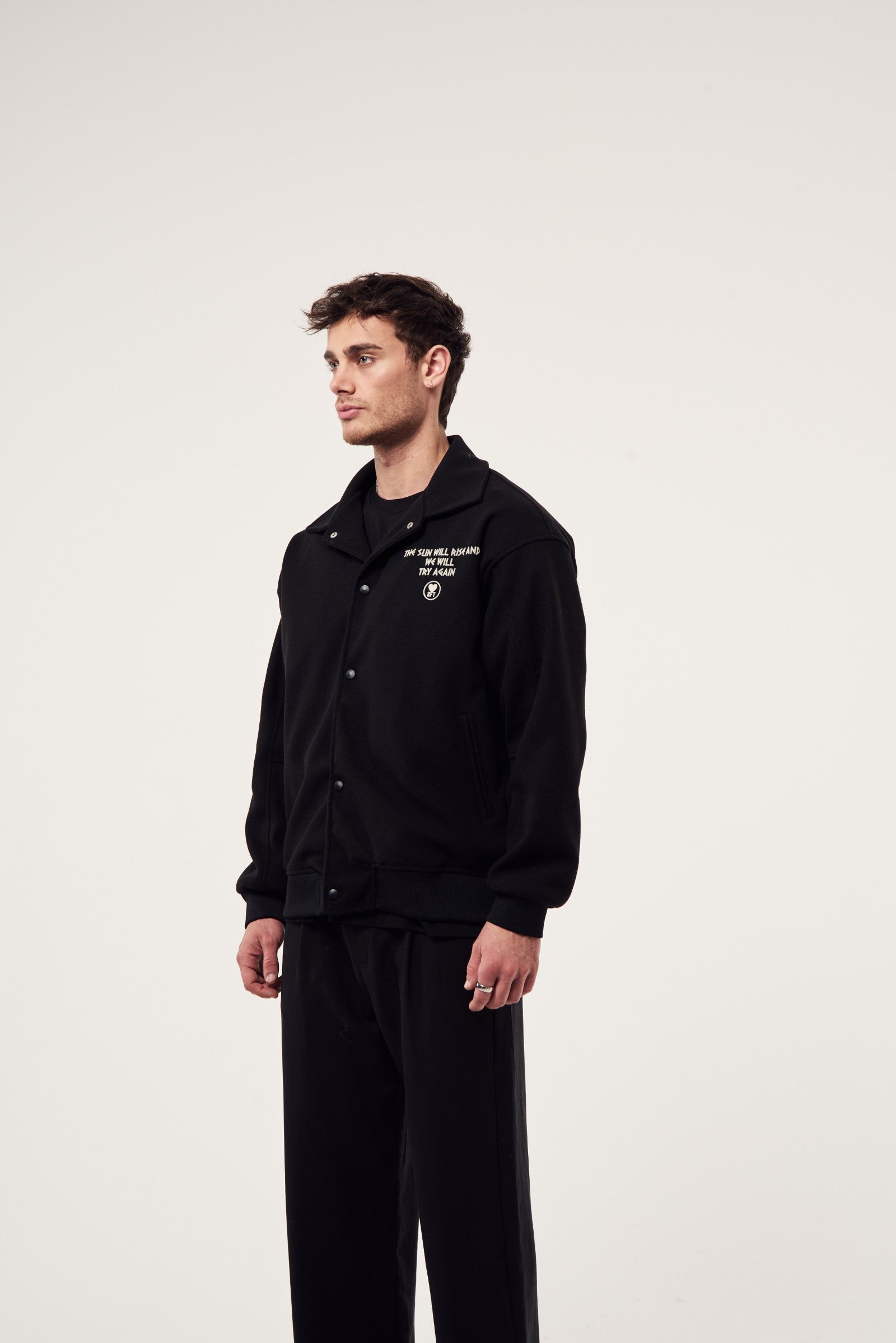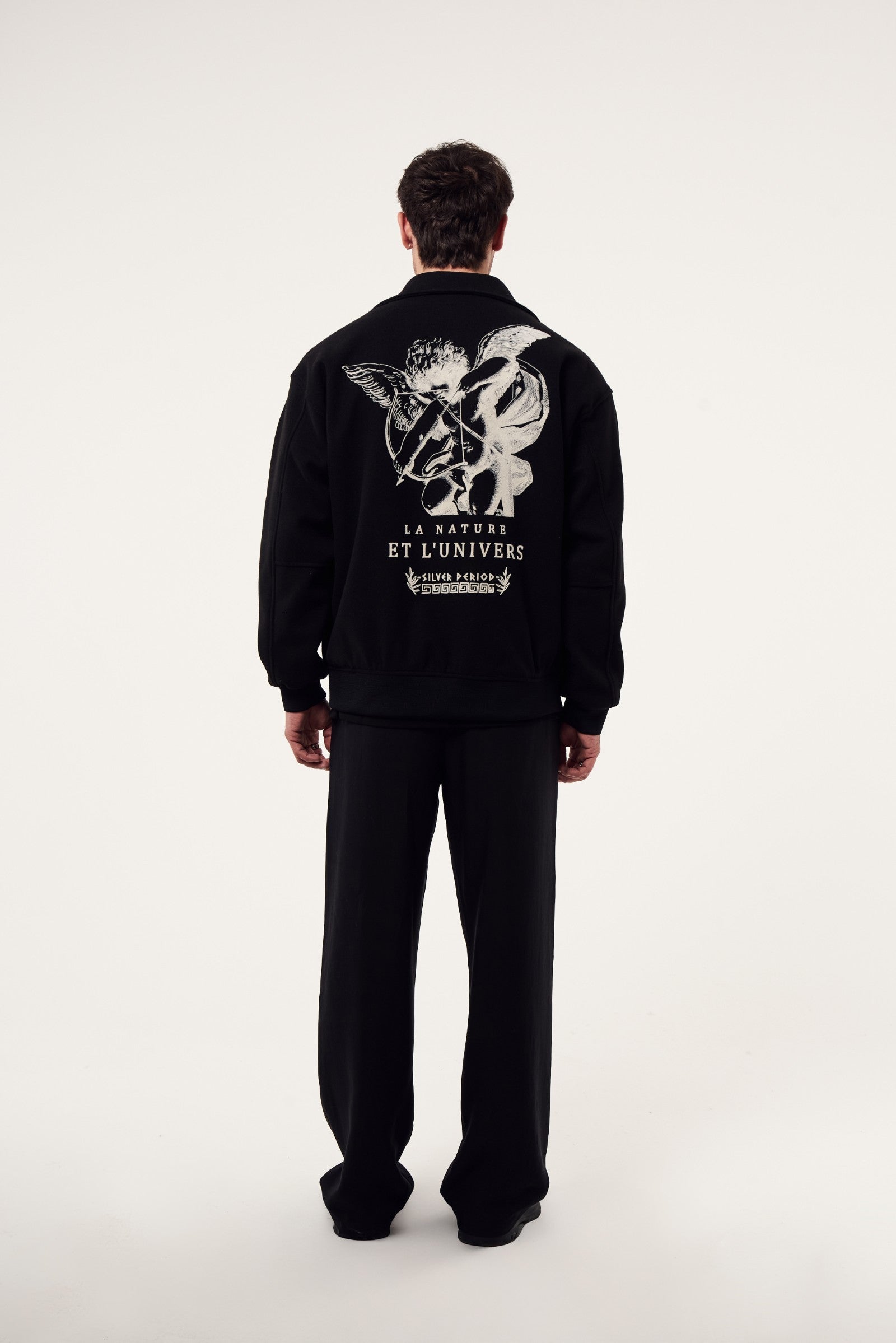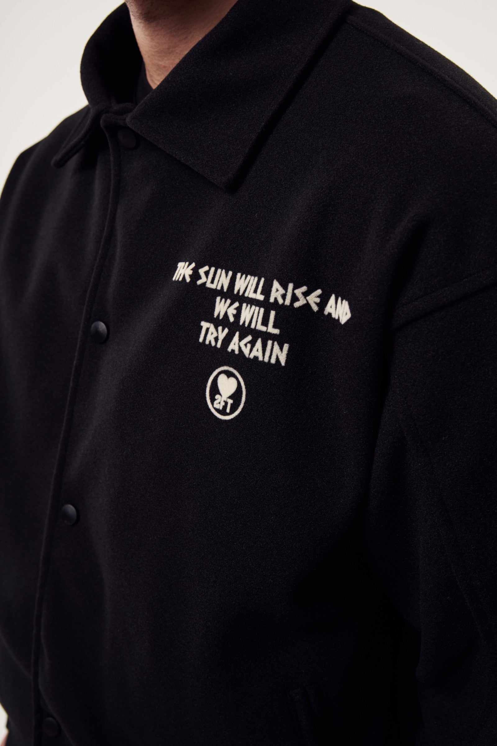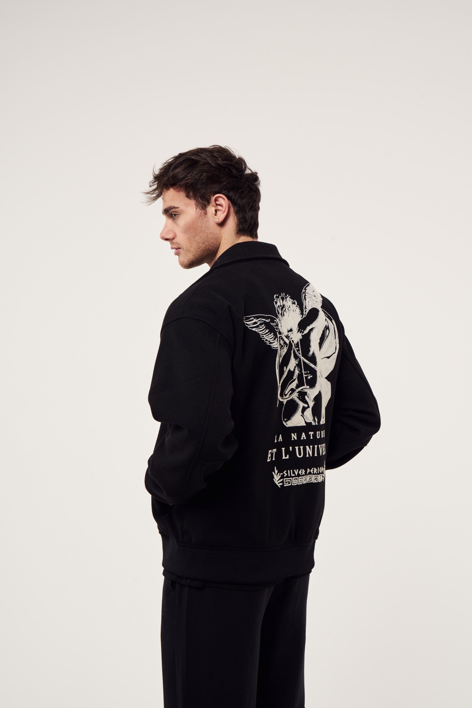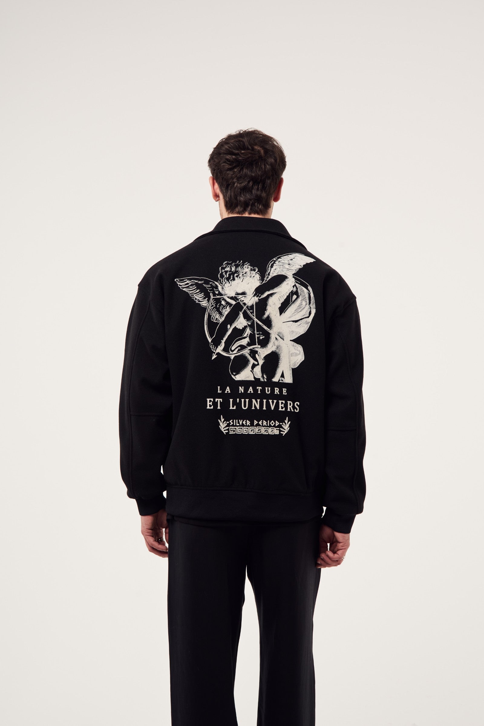 Yün etkili, tok duruşlu kaşe kumaştan üretilmiş mont. Ön kısımda çıtçıt kapama düzeneği ve klasik yaka tasarımı. Arka panelde kontrast renkli büyük grafik baskı detayı. İşlevsel yan cepli, düz bitişli manşet yapısına sahip, vücuda oturmayan dökümlü form.