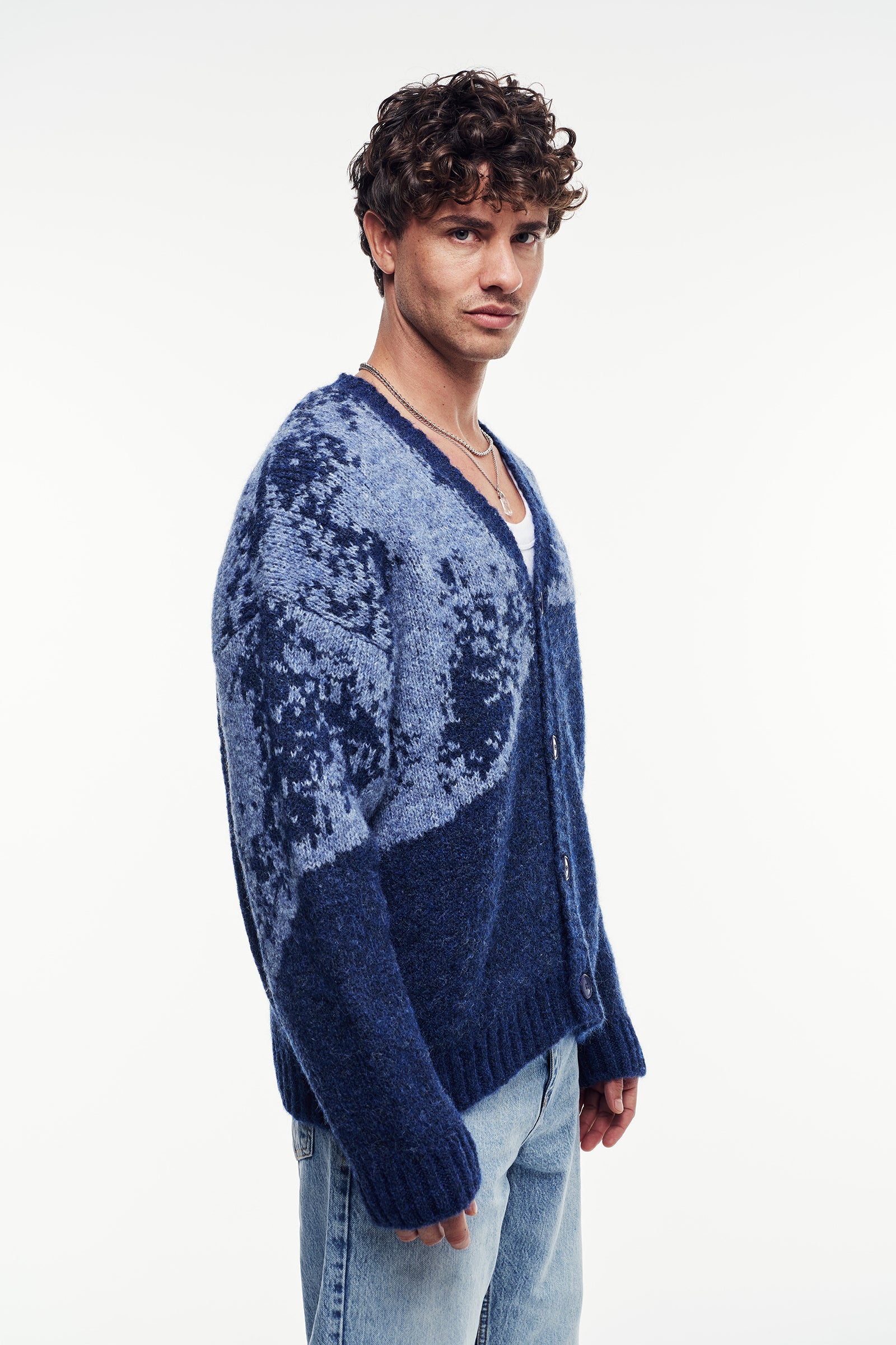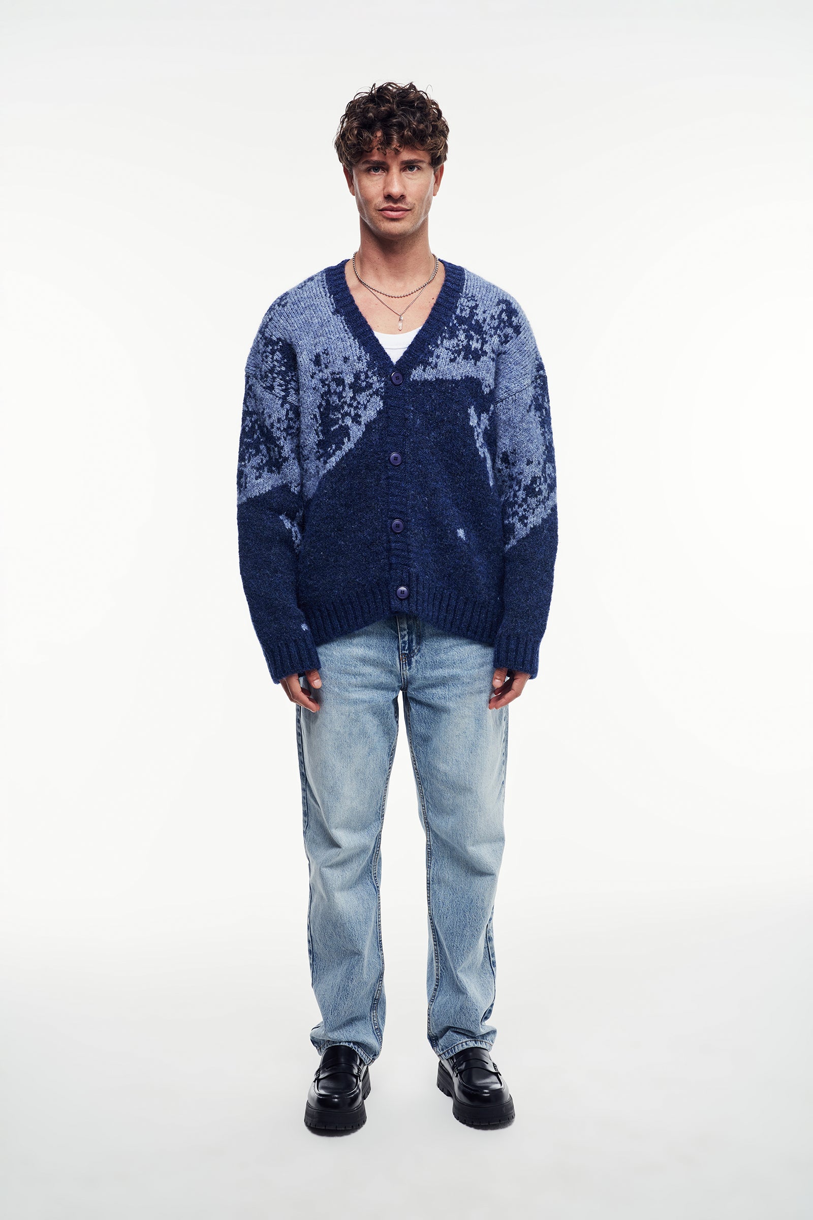 Yumuşak tuşeli triko iplikten, uzun kollu hırka. Oversize kesimi sayesinde modern ve hacimli bir silüet sağlar. V yaka ve önü düğme kapamalı tasarımı, katmanlamaya uygun şık bir parça yaratır.