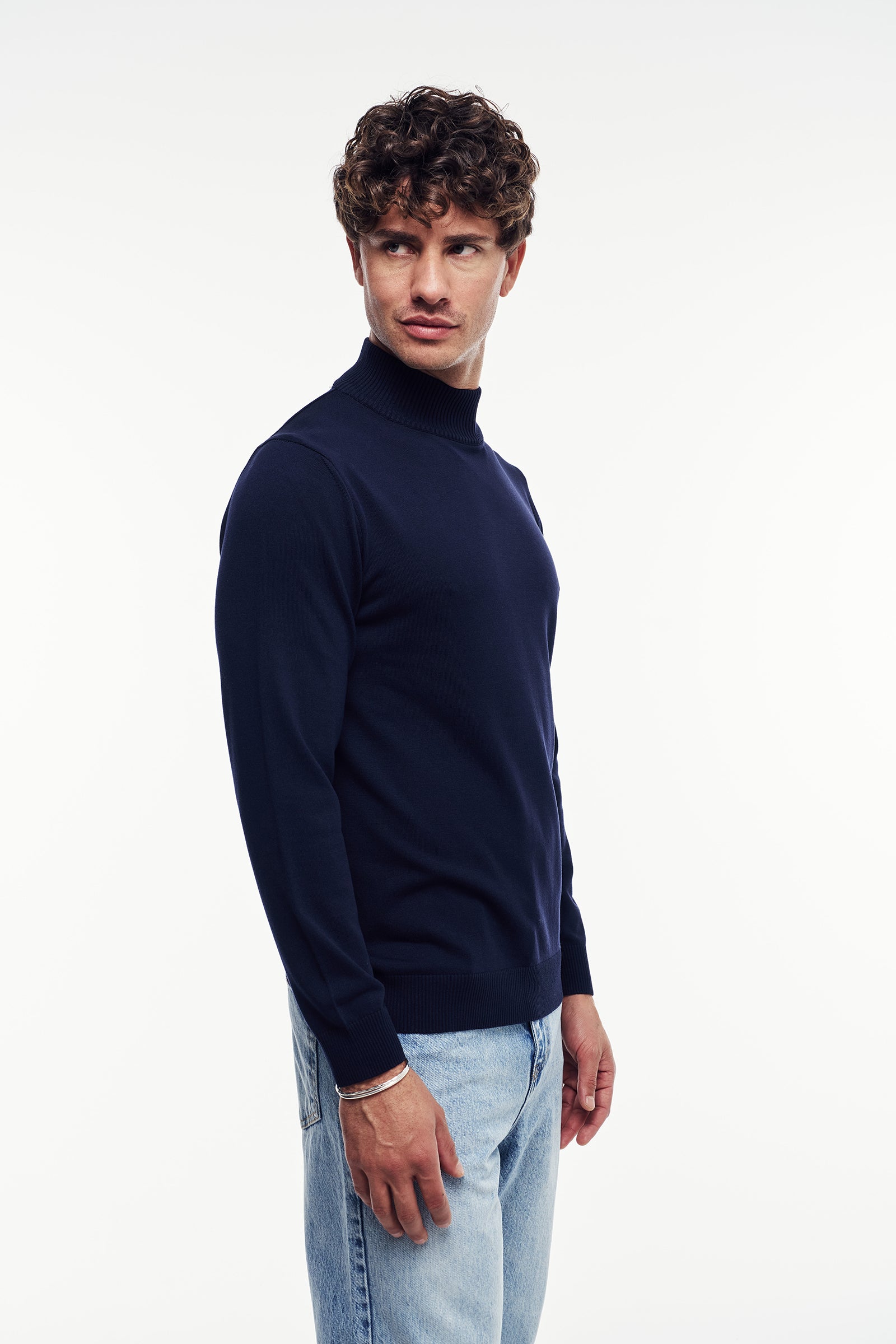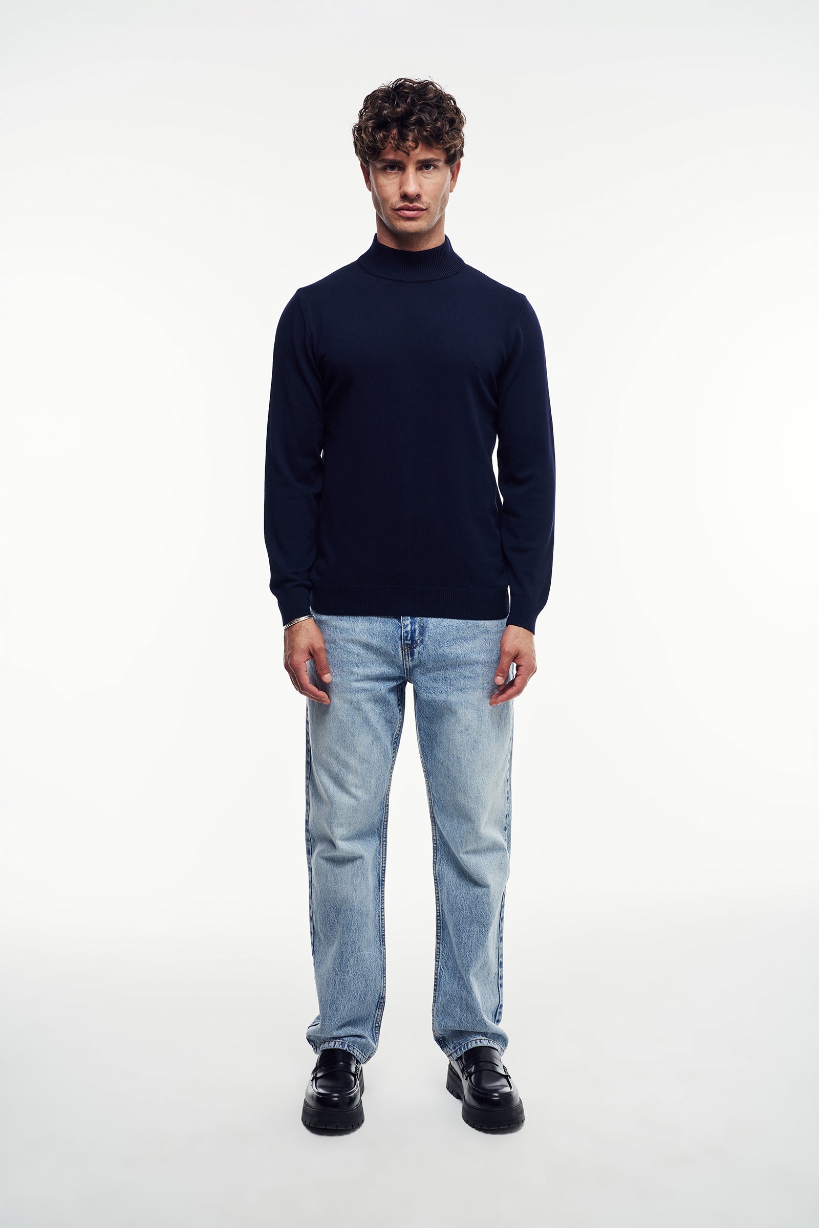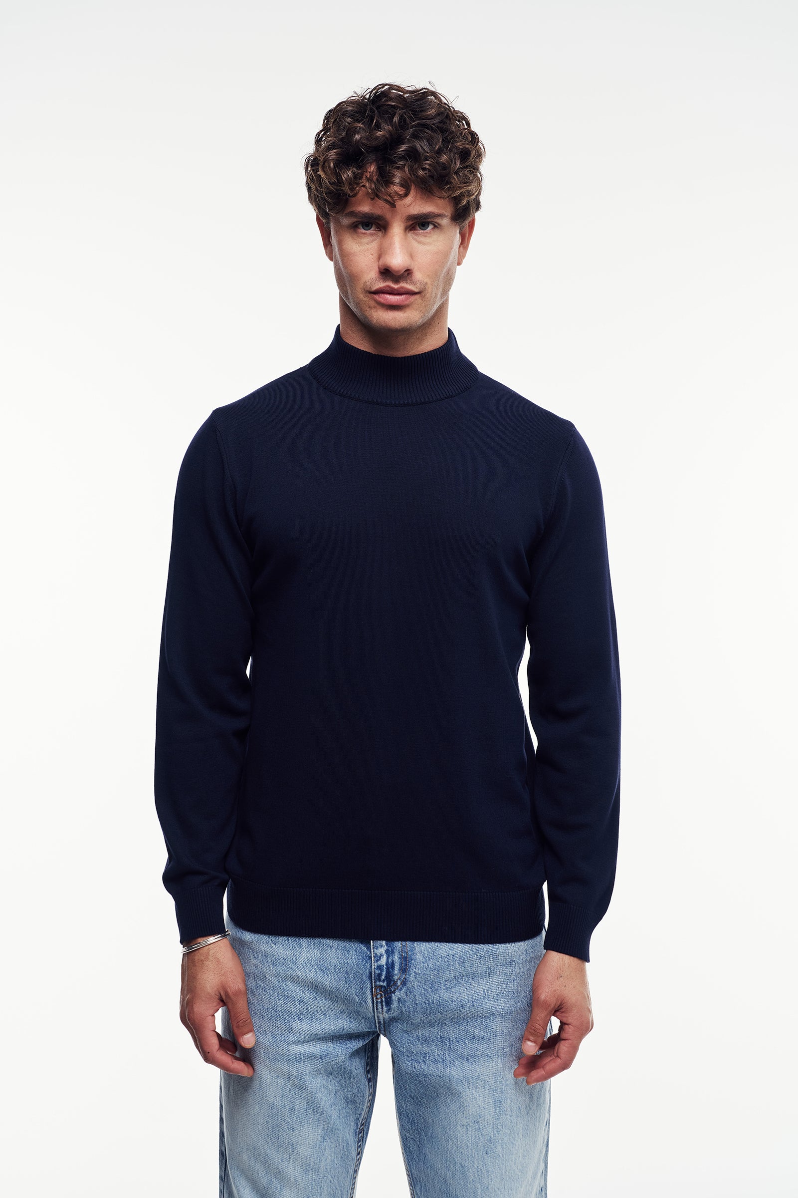 Uzun kollu, yumuşak dokuya sahip triko kazak. Modern ve rahat bir duruş sağlayan kesimle tasarlanmıştır. Yaka kısmı Yarım Balıkçı yaka formundadır. Manşetler ve etek ucu fitilli detaylarla tamamlanmıştır.