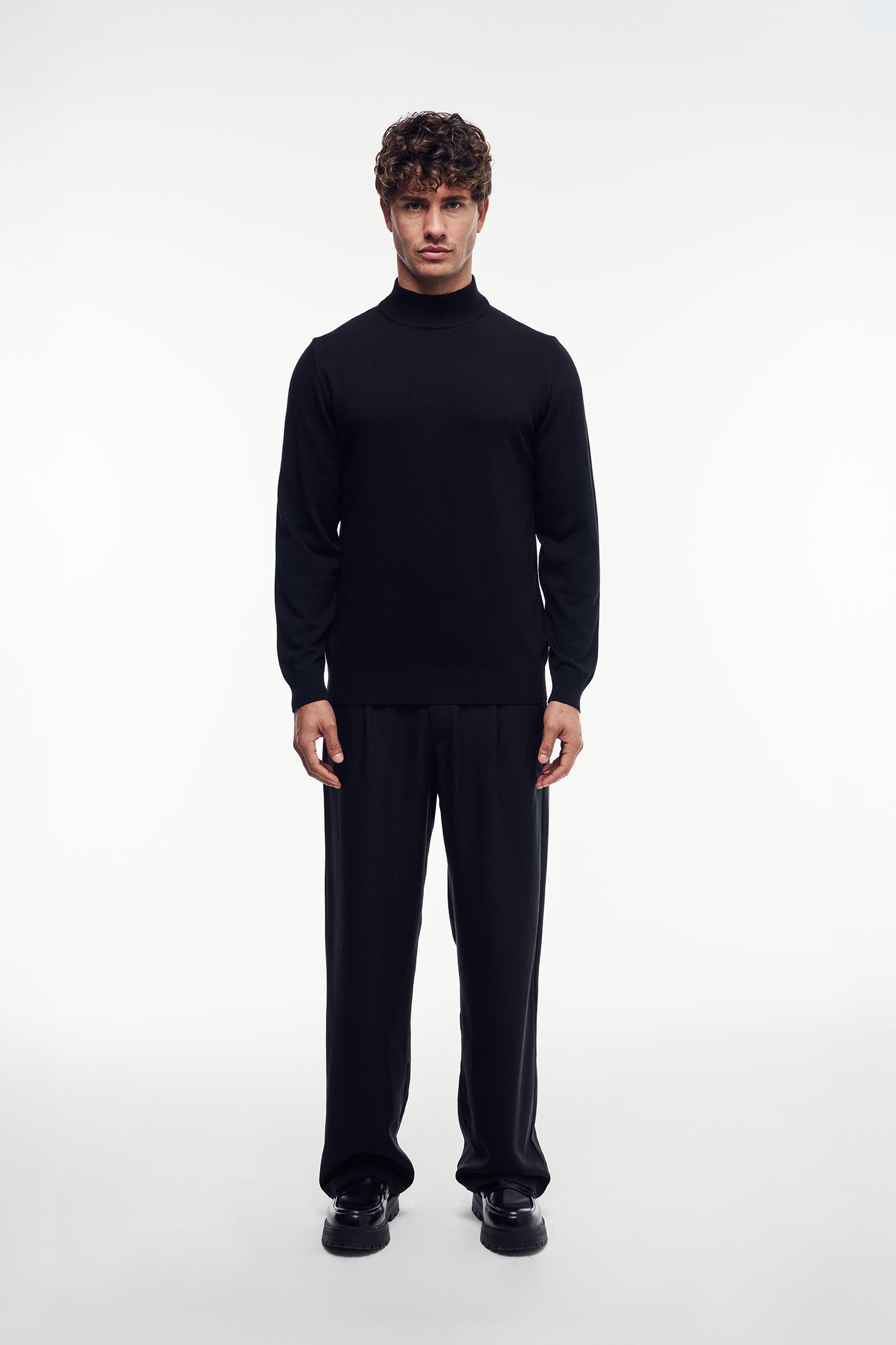 Uzun kollu, yumuşak dokuya sahip triko kazak. Modern ve rahat bir duruş sağlayan kesimle tasarlanmıştır. Yaka kısmı Yarım Balıkçı yaka formundadır. Manşetler ve etek ucu fitilli detaylarla tamamlanmıştır.