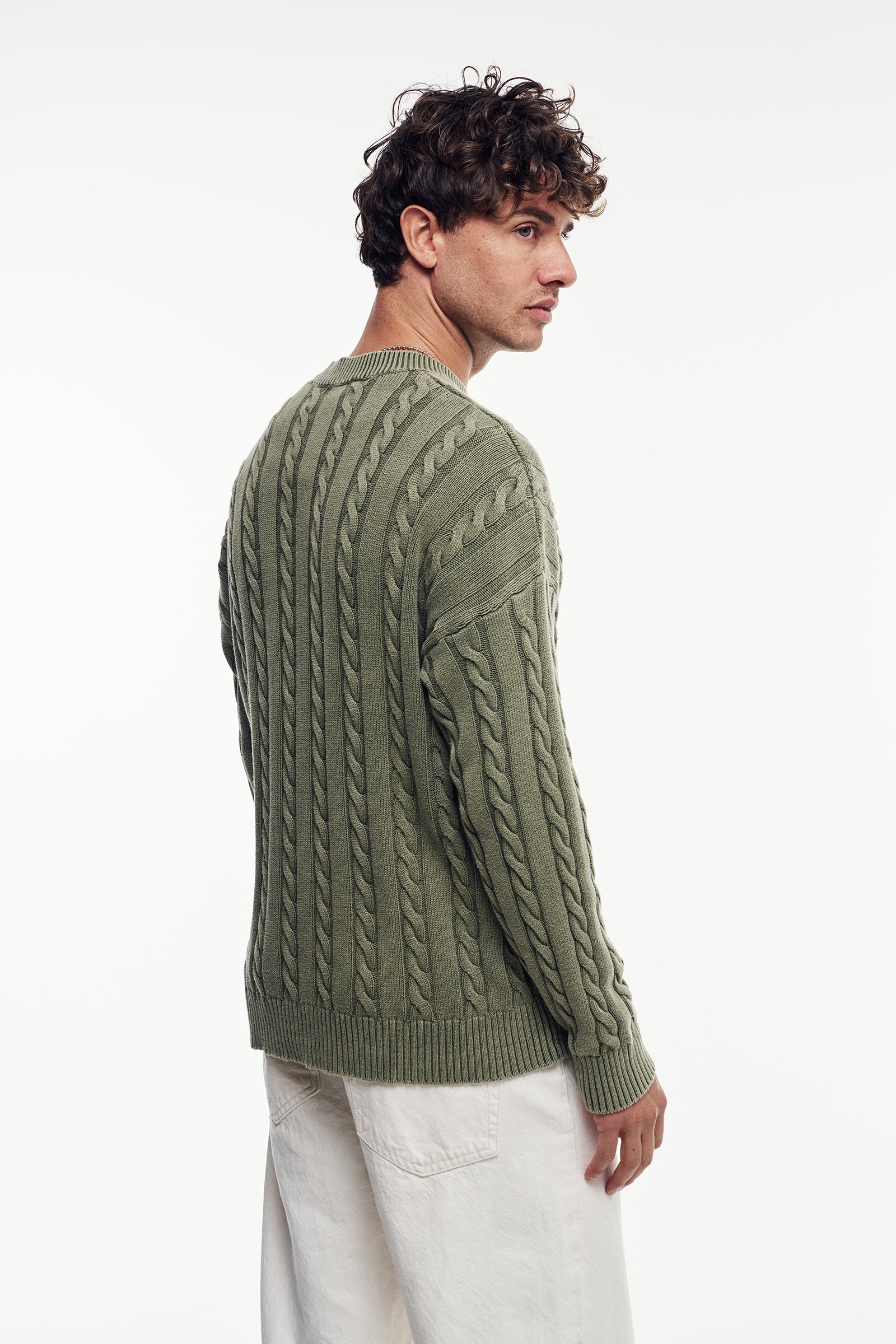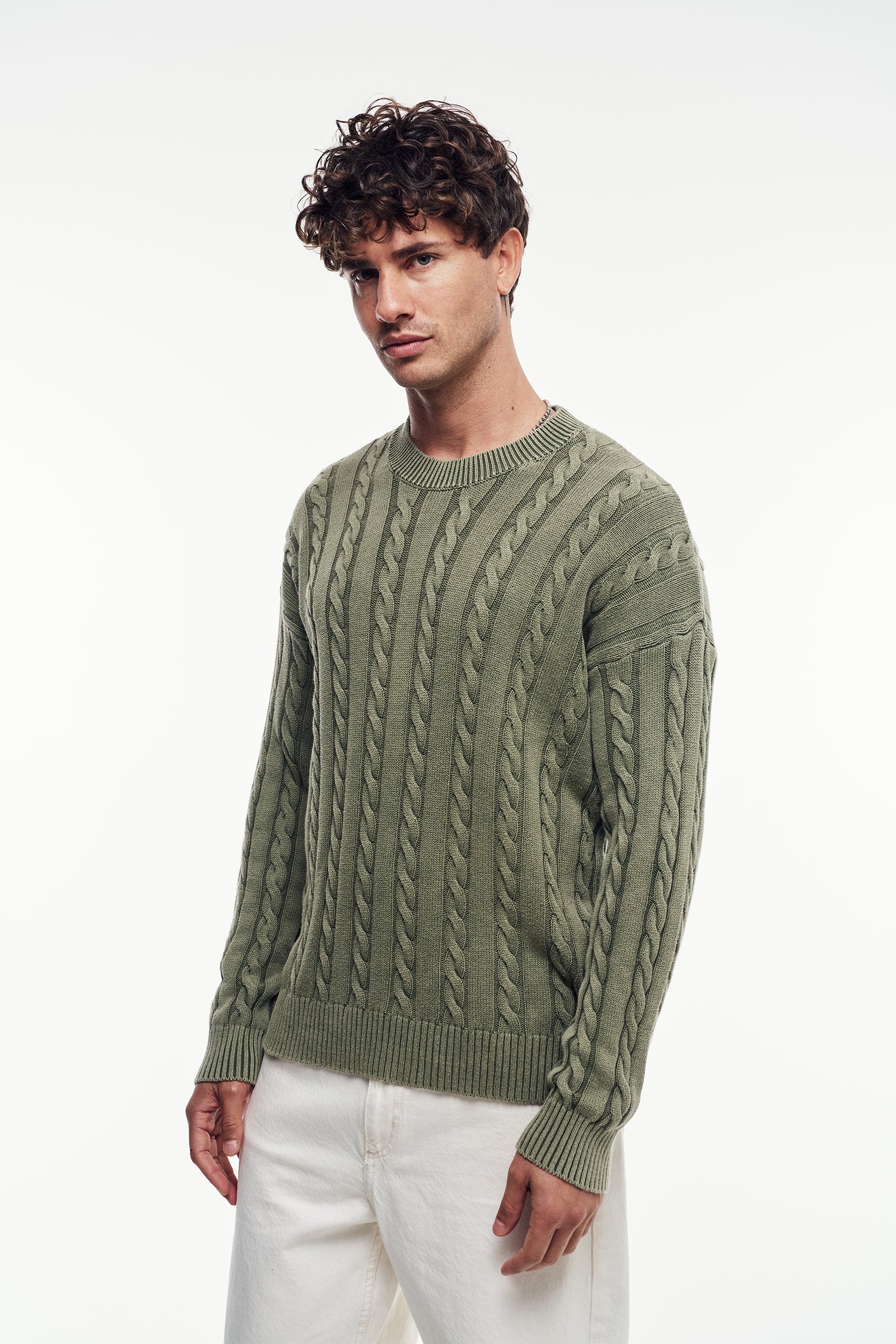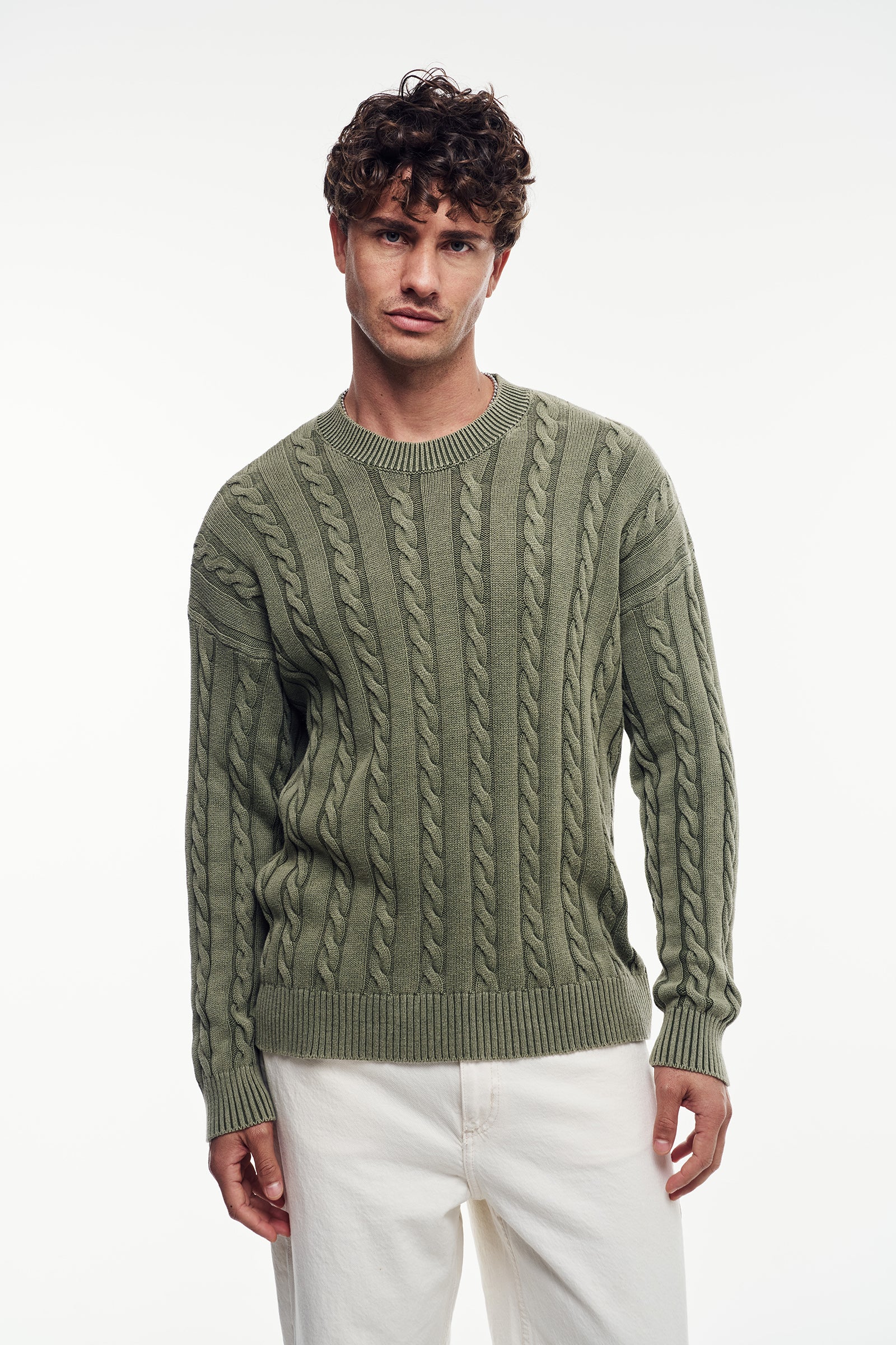 Yumuşak dokulu iplikten, bisiklet yaka triko kazak. Rahat bir duruş sunan kesime sahiptir. Ürüne özgün bir karakter katan yıkamalı görünüm ve bütünü kaplayan örgü deseni mevcuttur.