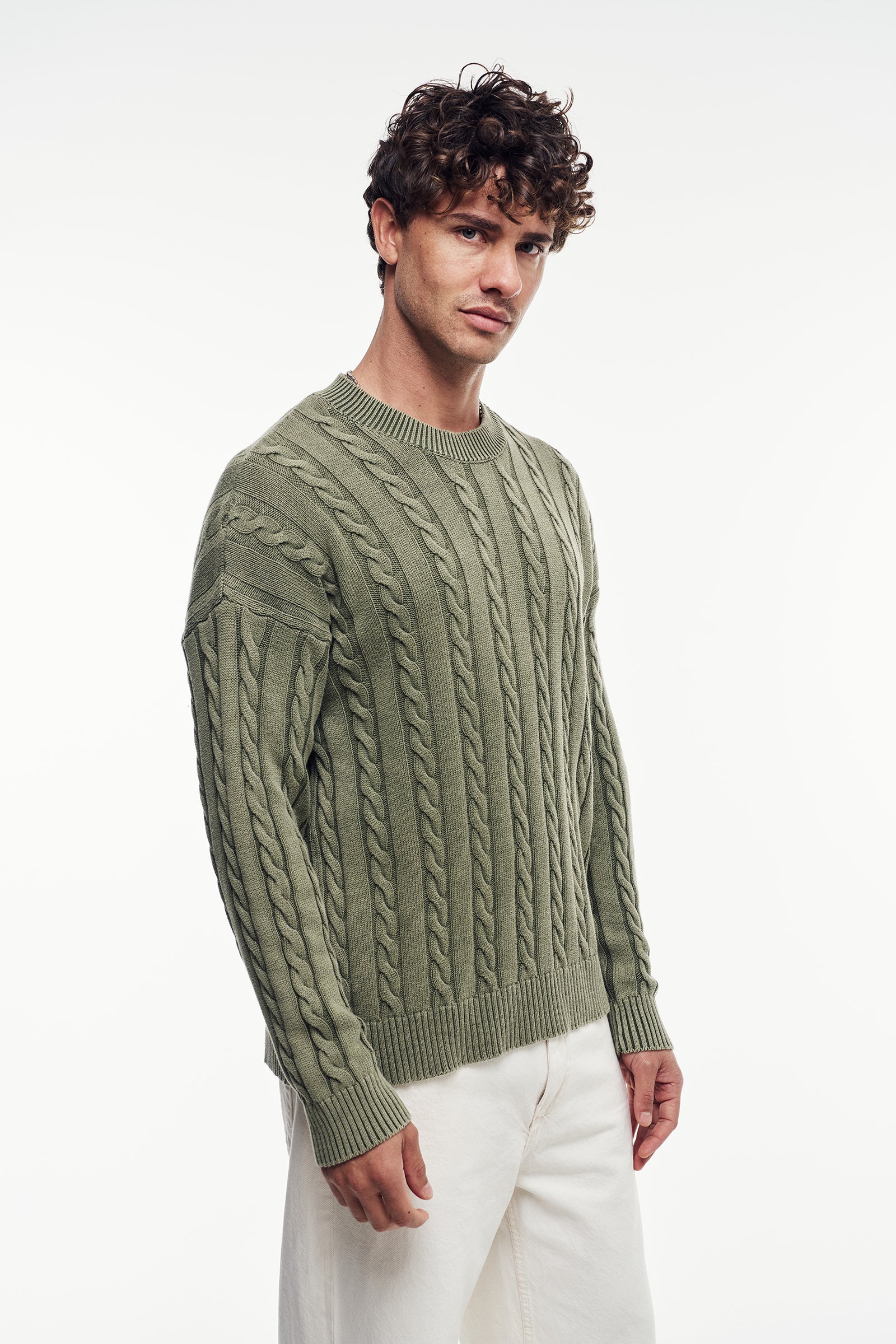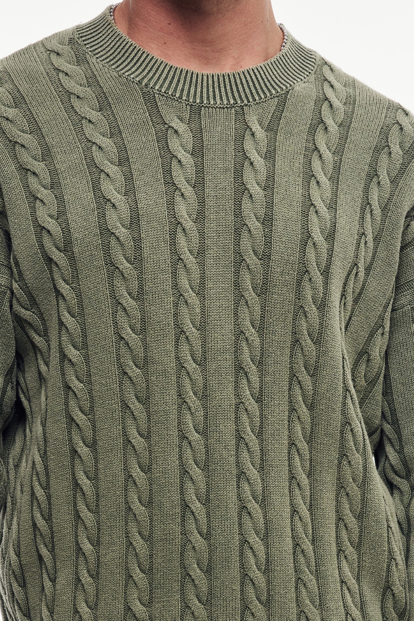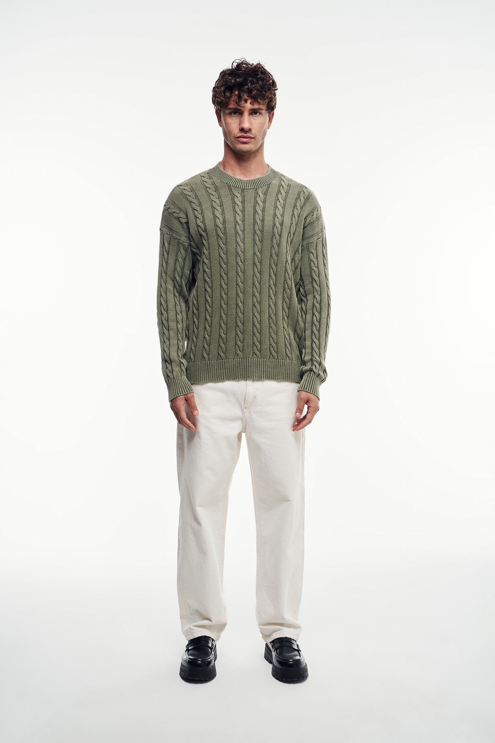Yumuşak dokulu iplikten, bisiklet yaka triko kazak. Rahat bir duruş sunan kesime sahiptir. Ürüne özgün bir karakter katan yıkamalı görünüm ve bütünü kaplayan örgü deseni mevcuttur.