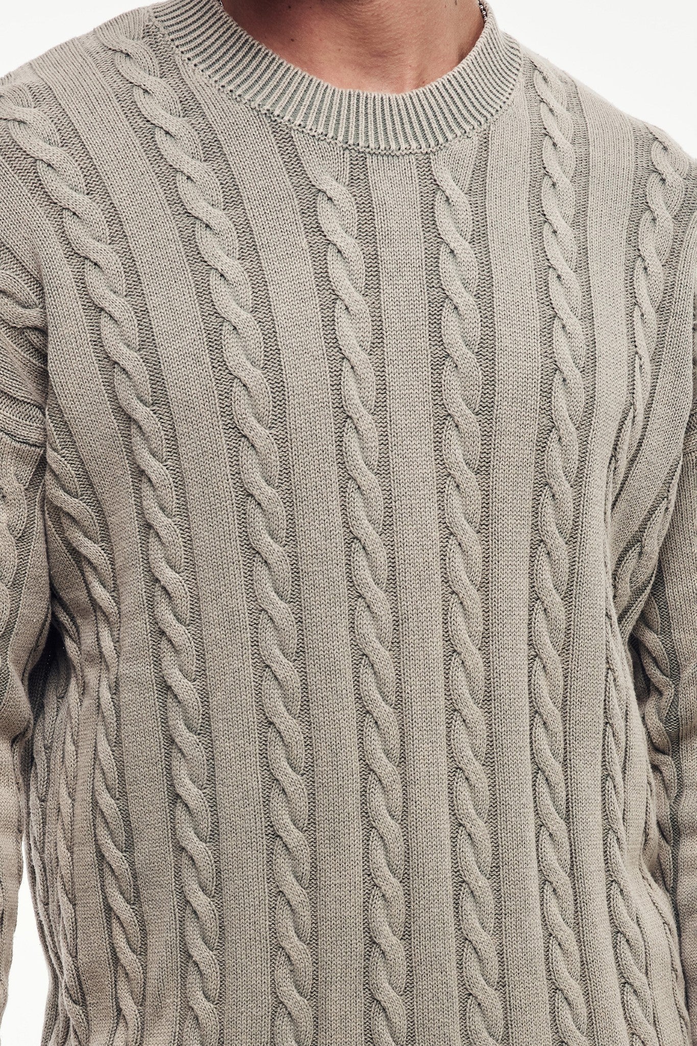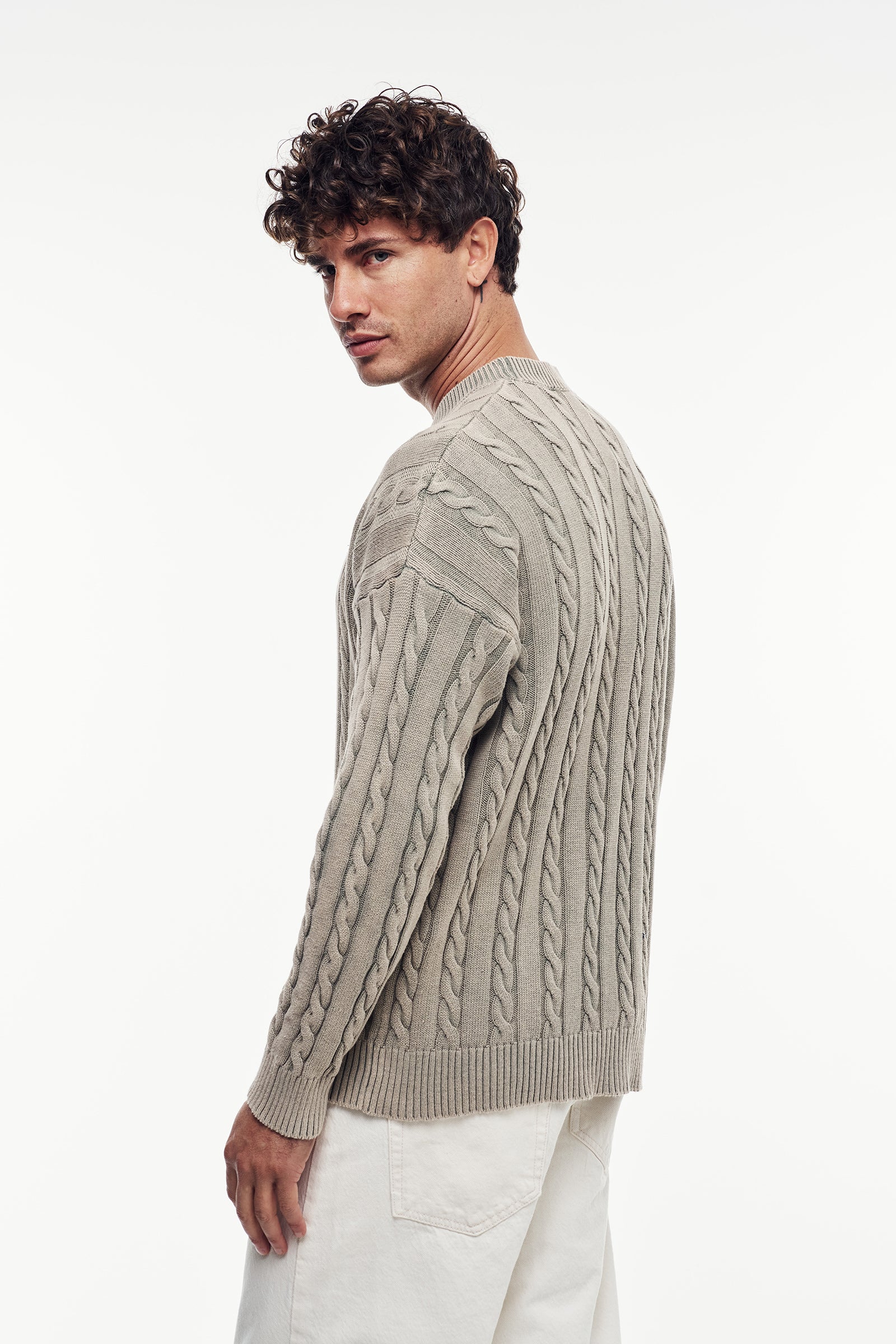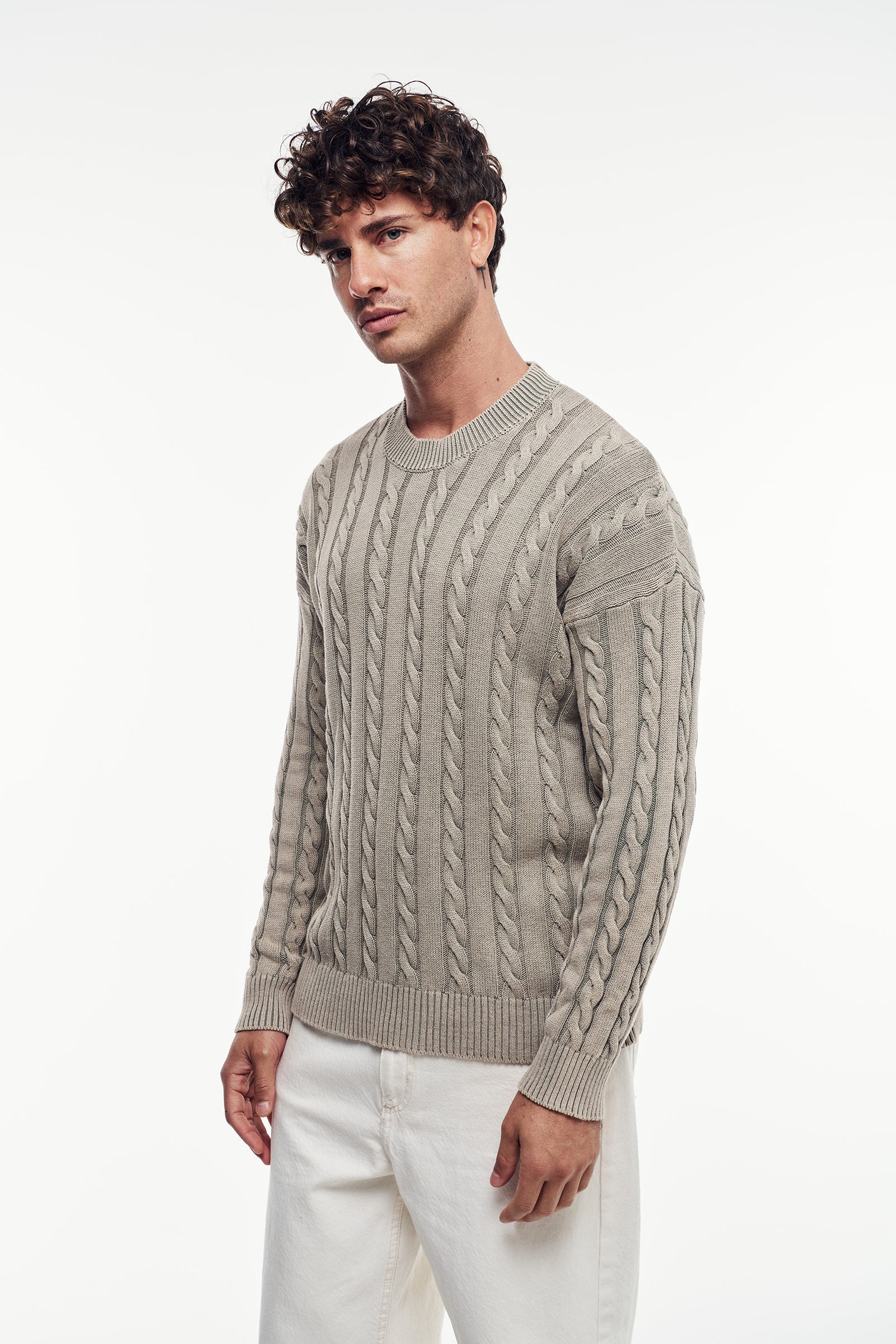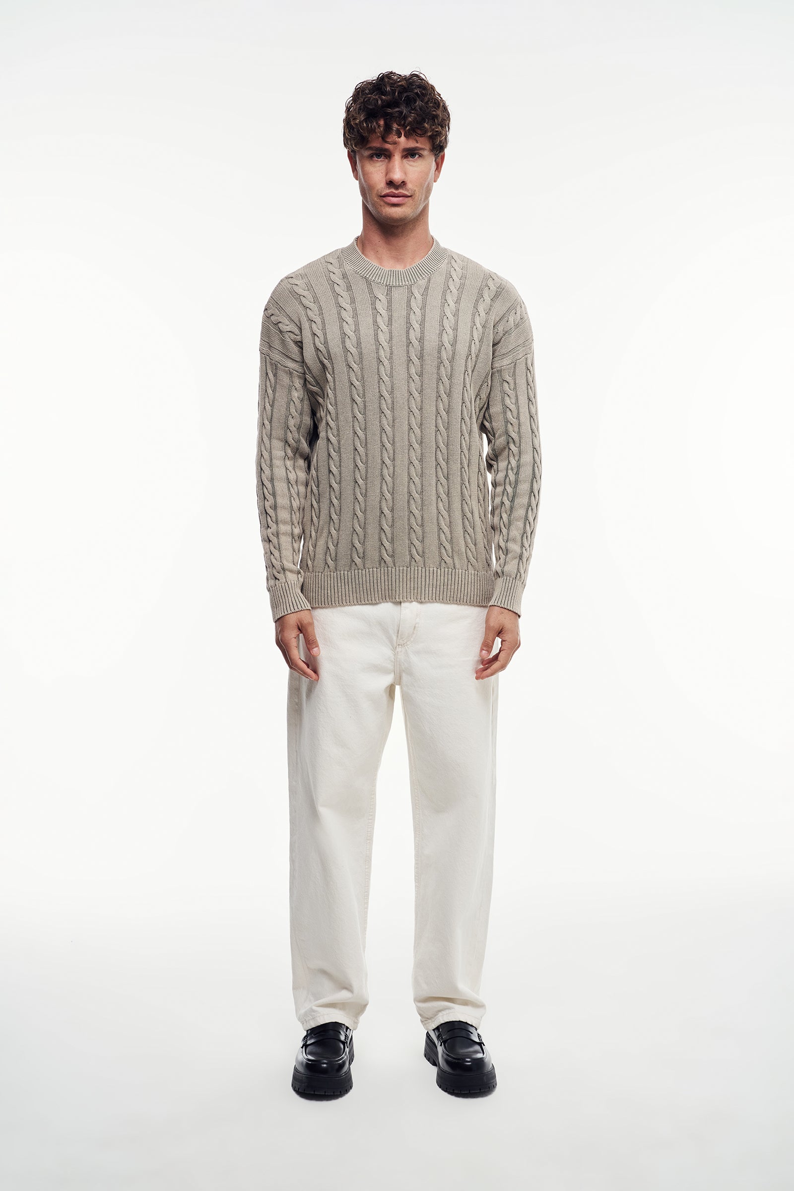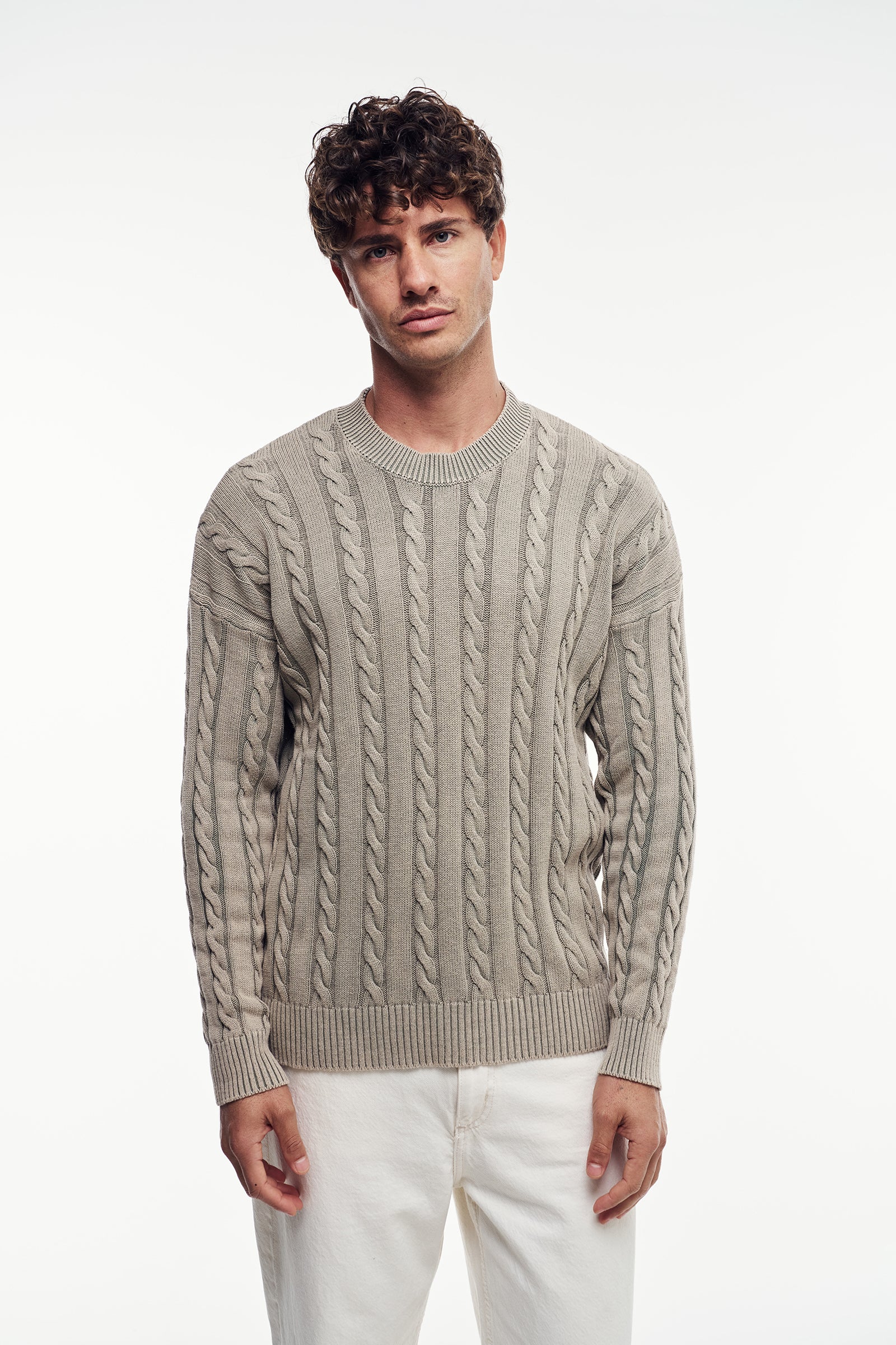 Yumuşak dokulu iplikten, bisiklet yaka triko kazak. Rahat bir duruş sunan kesime sahiptir. Ürüne özgün bir karakter katan yıkamalı görünüm ve bütünü kaplayan örgü deseni mevcuttur.