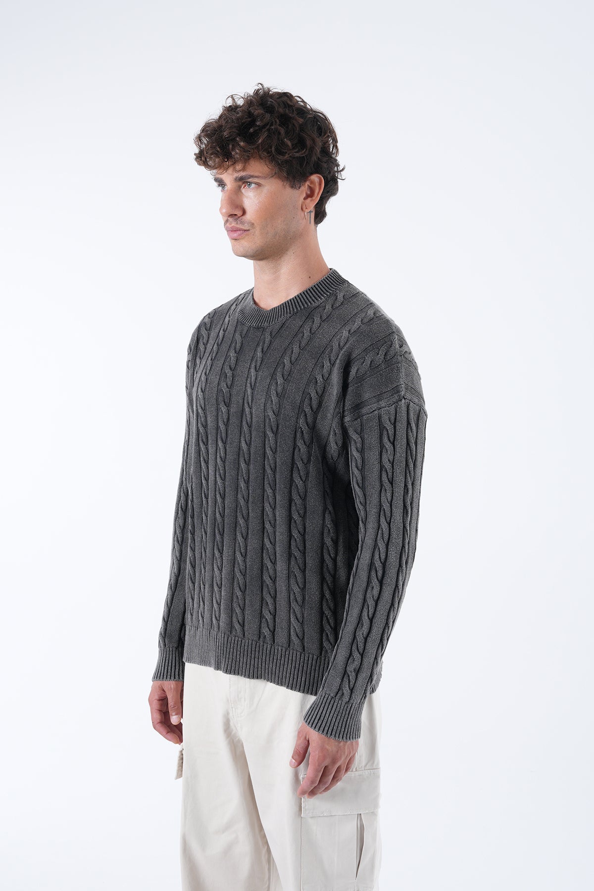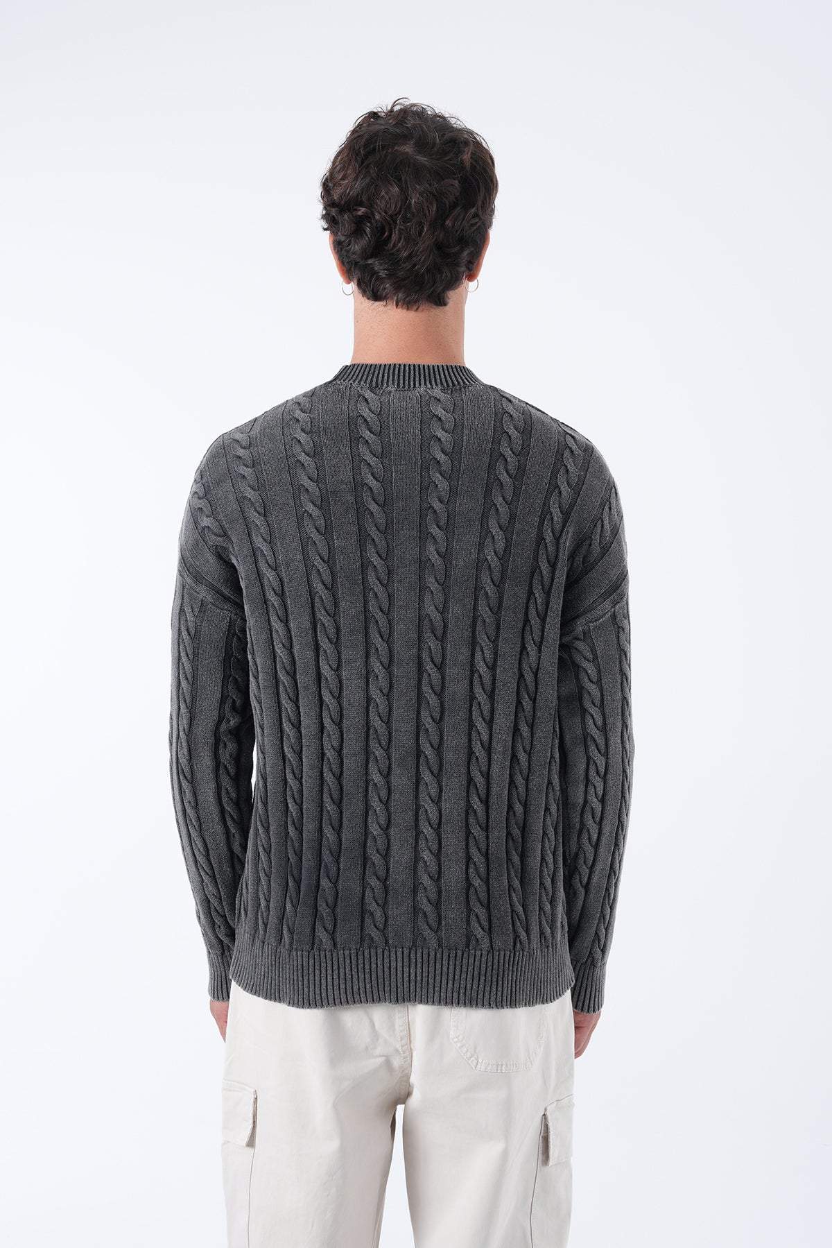 Yıkamalı Bisiklet Yaka Desenli Örgü Kazak