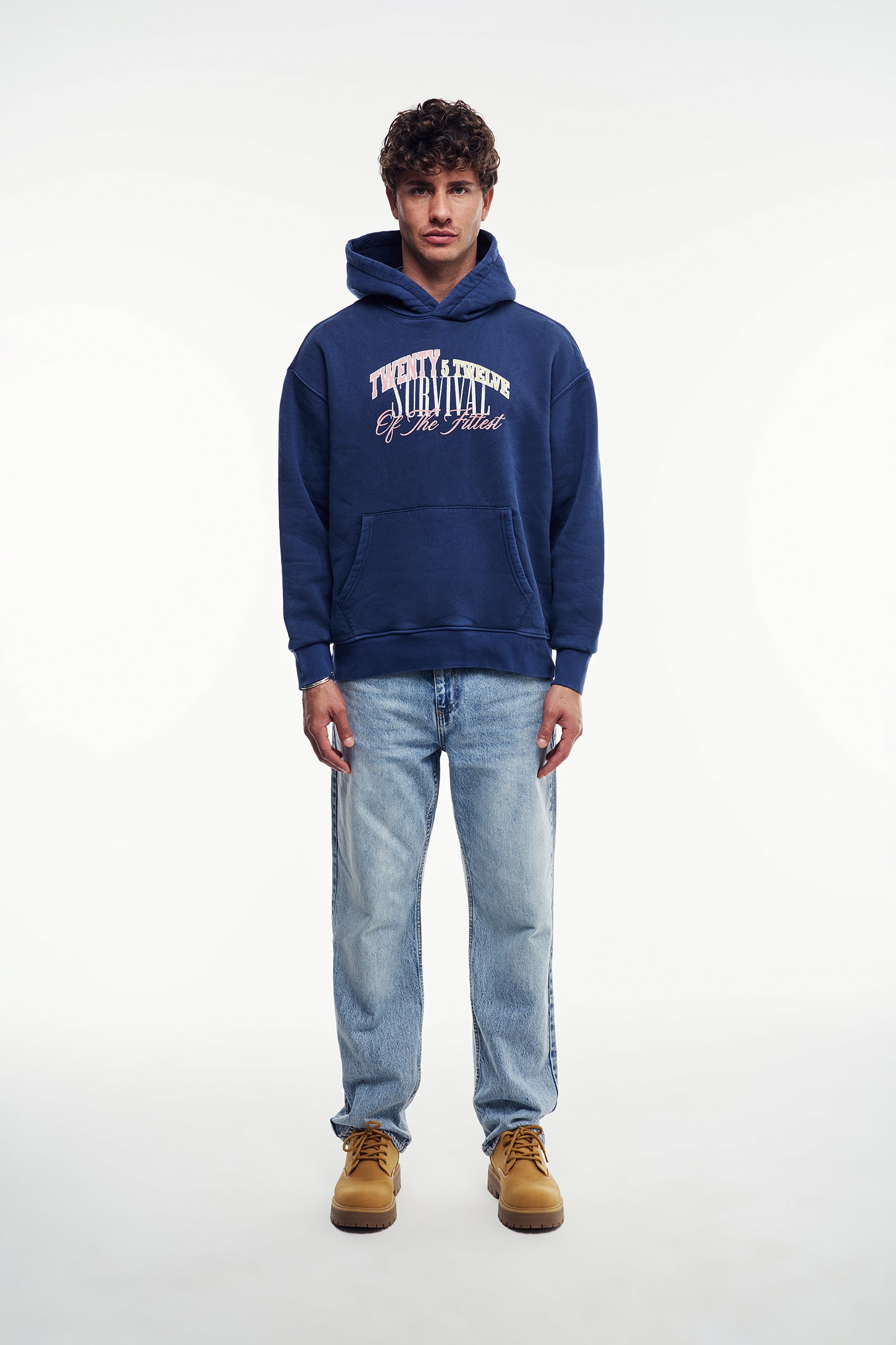 Uzun kollu, kapüşonlu ve rahat kesimli sweatshirt. Yumuşak bir his veren kumaştan üretilmiştir. Ürüne vintage ve şehirli bir hava katan yıkamalı görünüme ve ön ve arka kısımda kontrast grafik baskı detayına sahiptir.