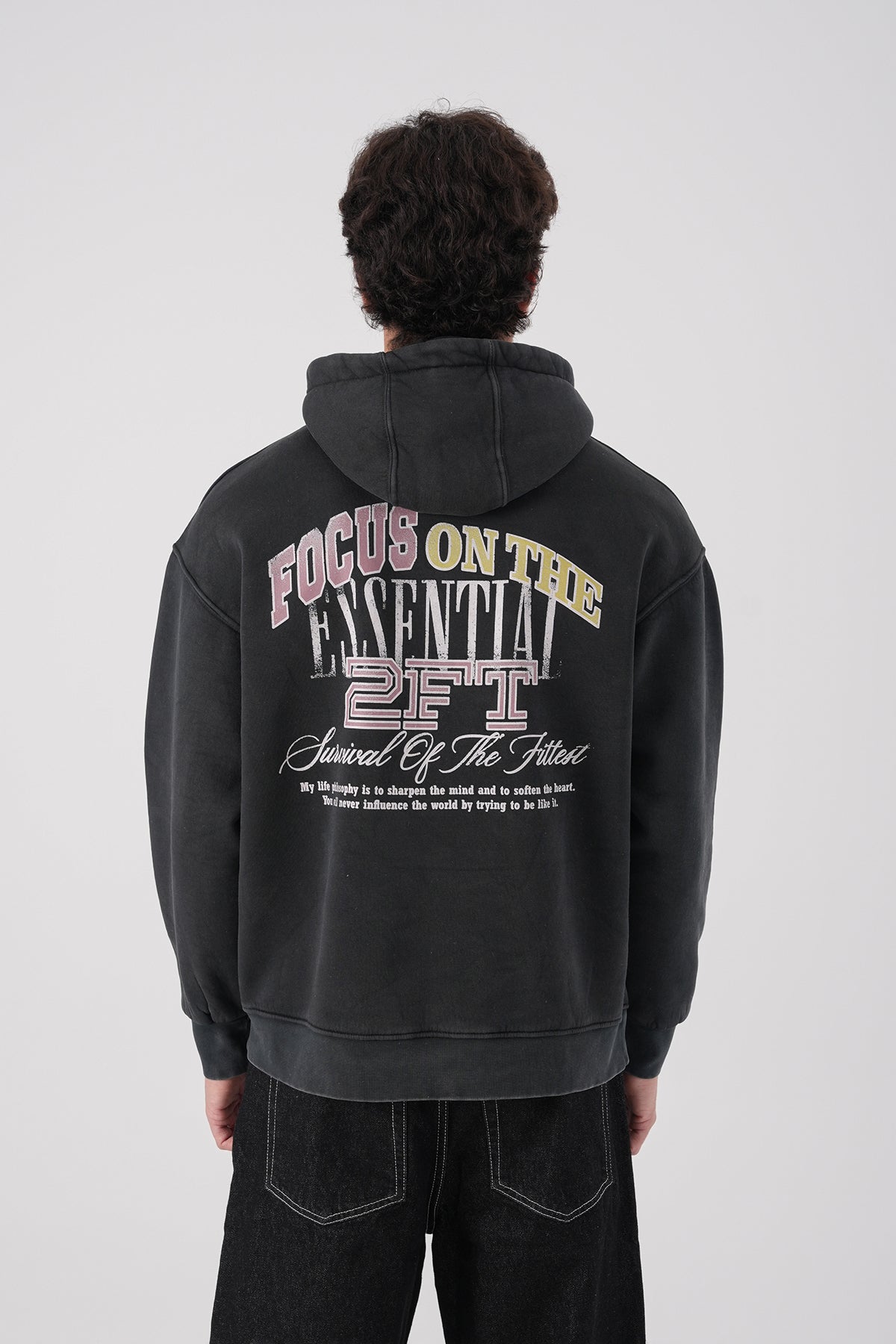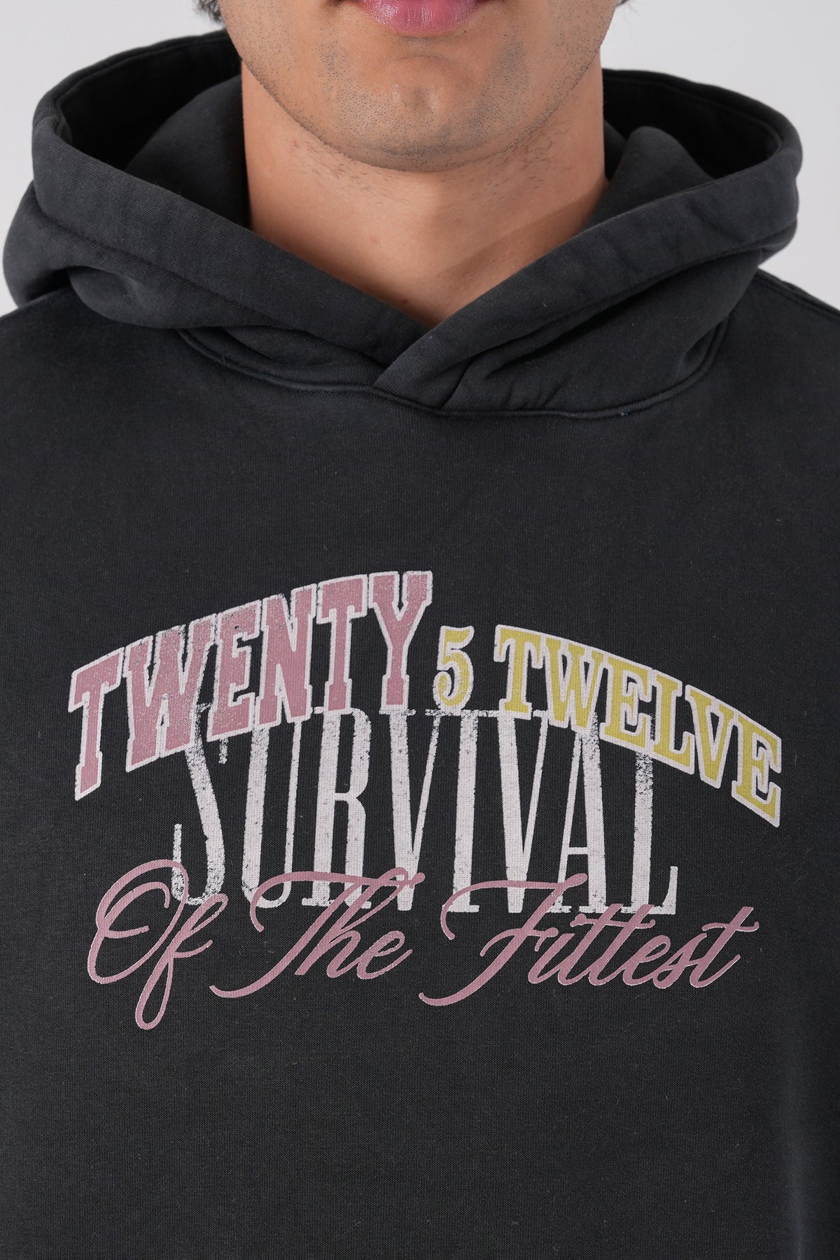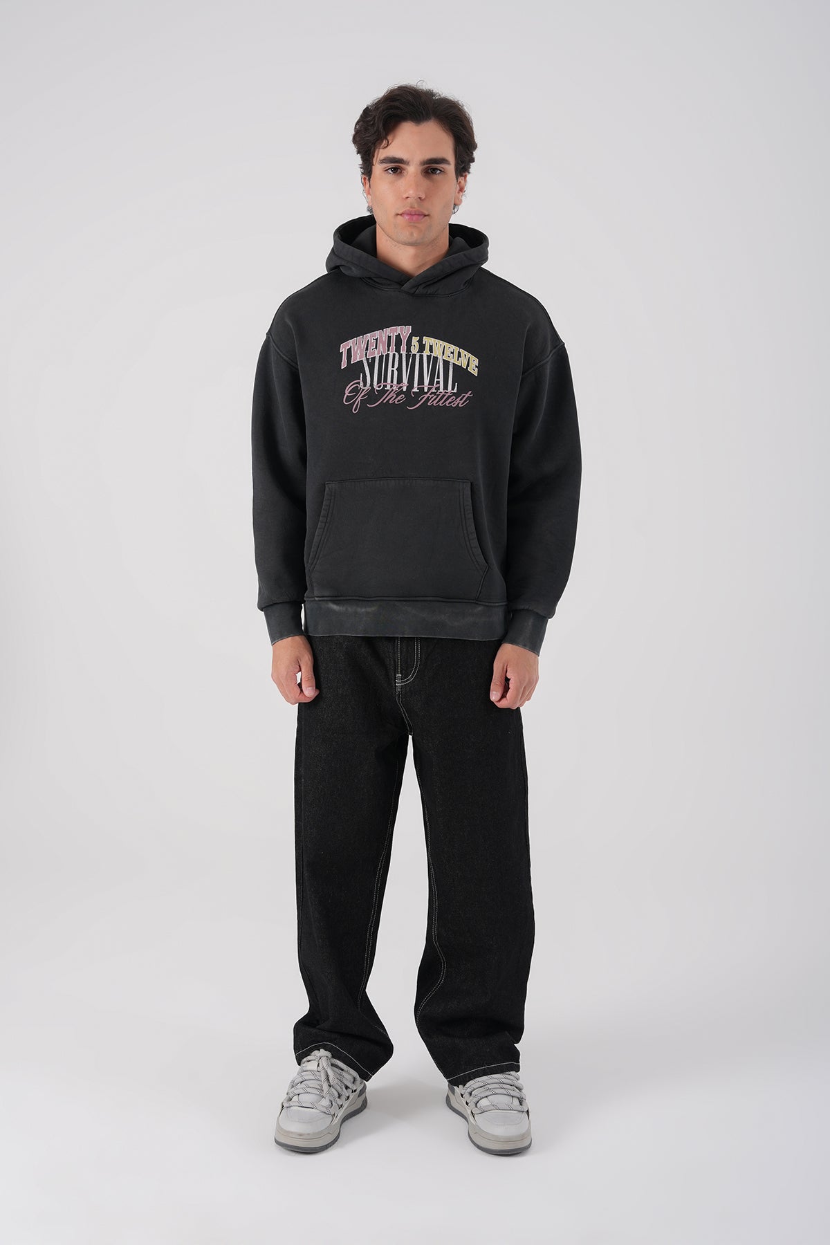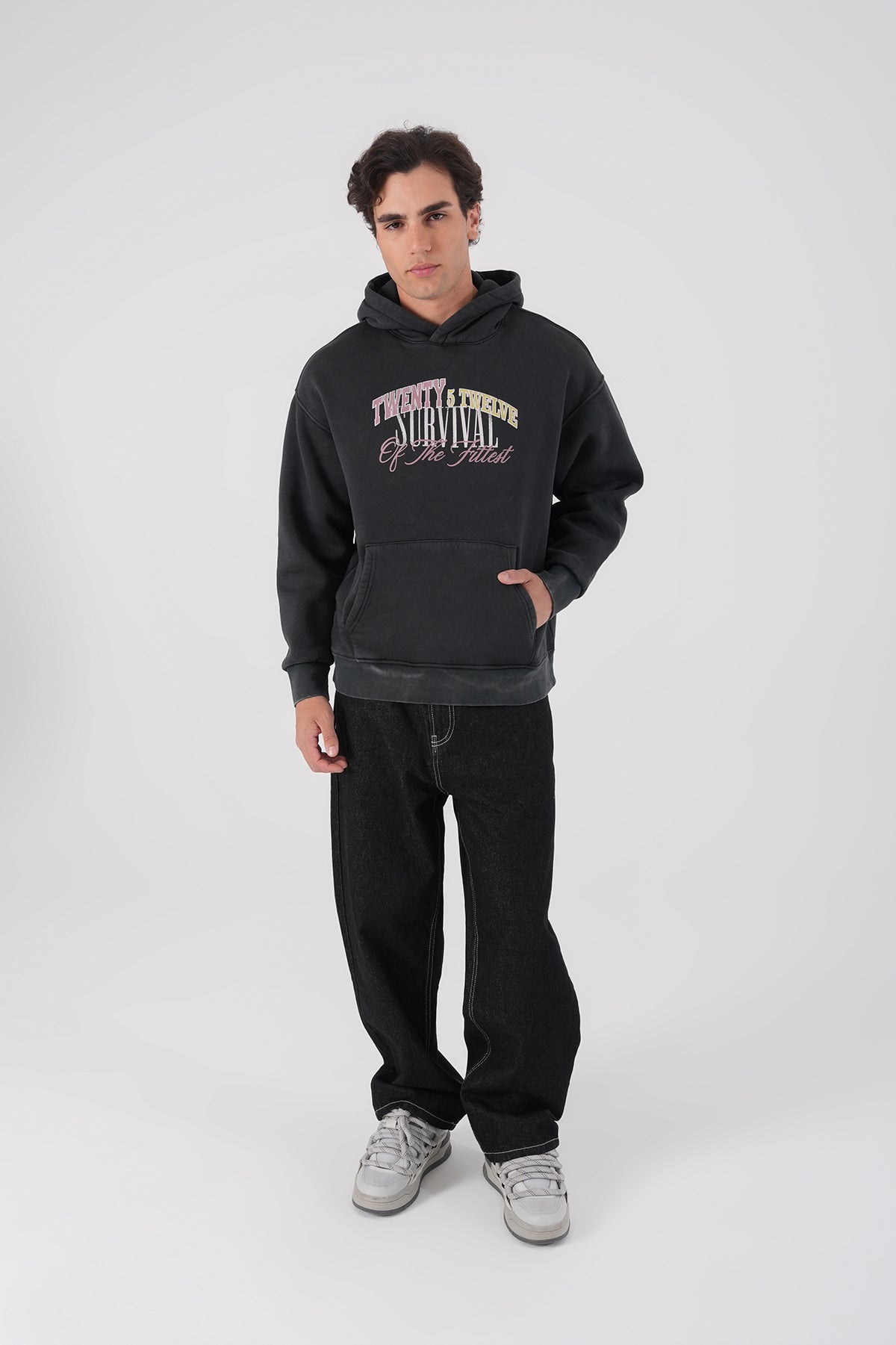 Yıkamalı Grafik Baskılı Kapüşonlu Sweatshirt