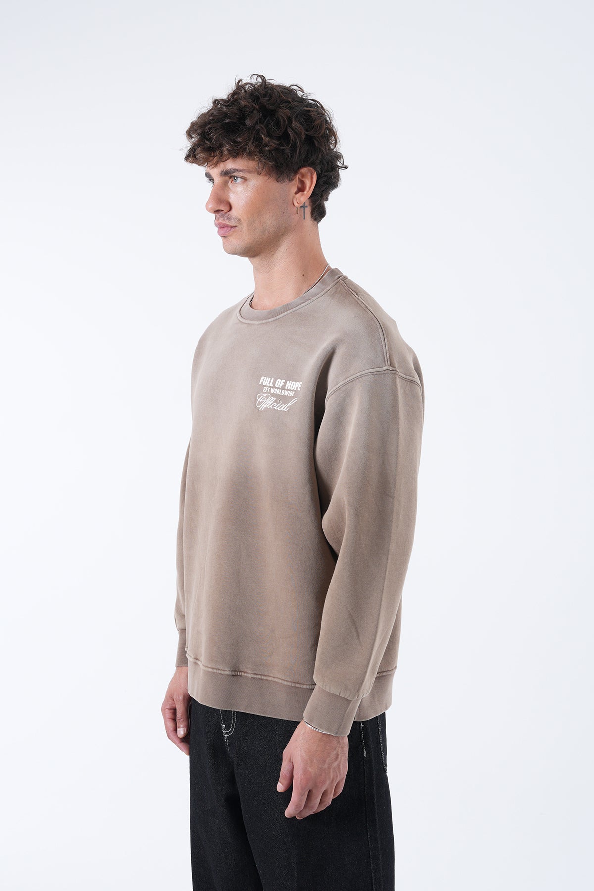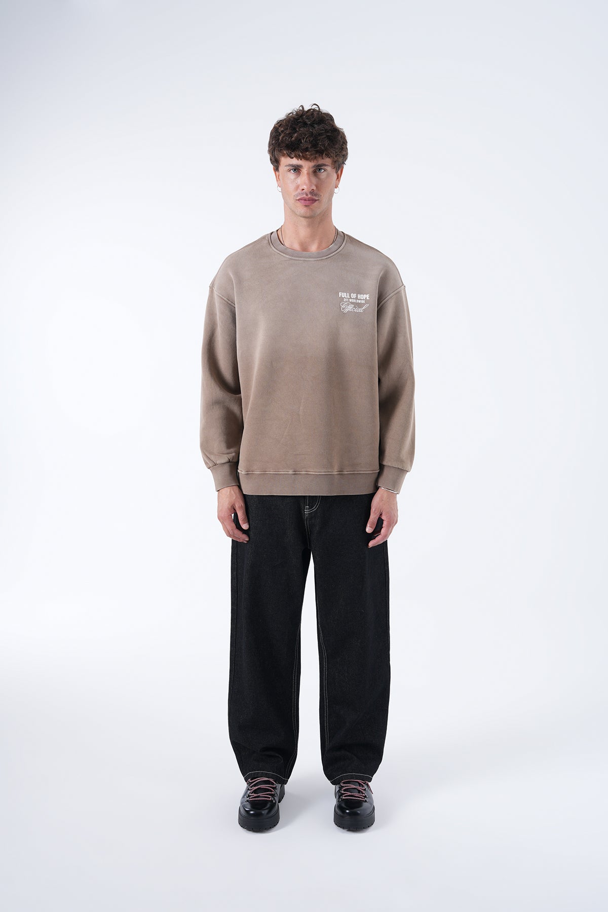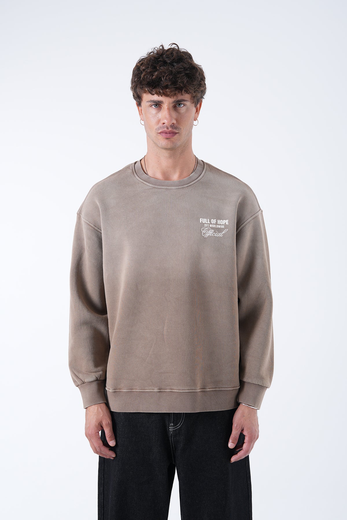 Yuvarlak yaka, uzun kollu ve rahat Oversize kesimli sweatshirt. Ürüne vintage bir görünüm kazandıran yıkamalı kumaş ile üretilmiştir. Ön kısımda kontrast renkli yazı baskısı detayı mevcuttur.