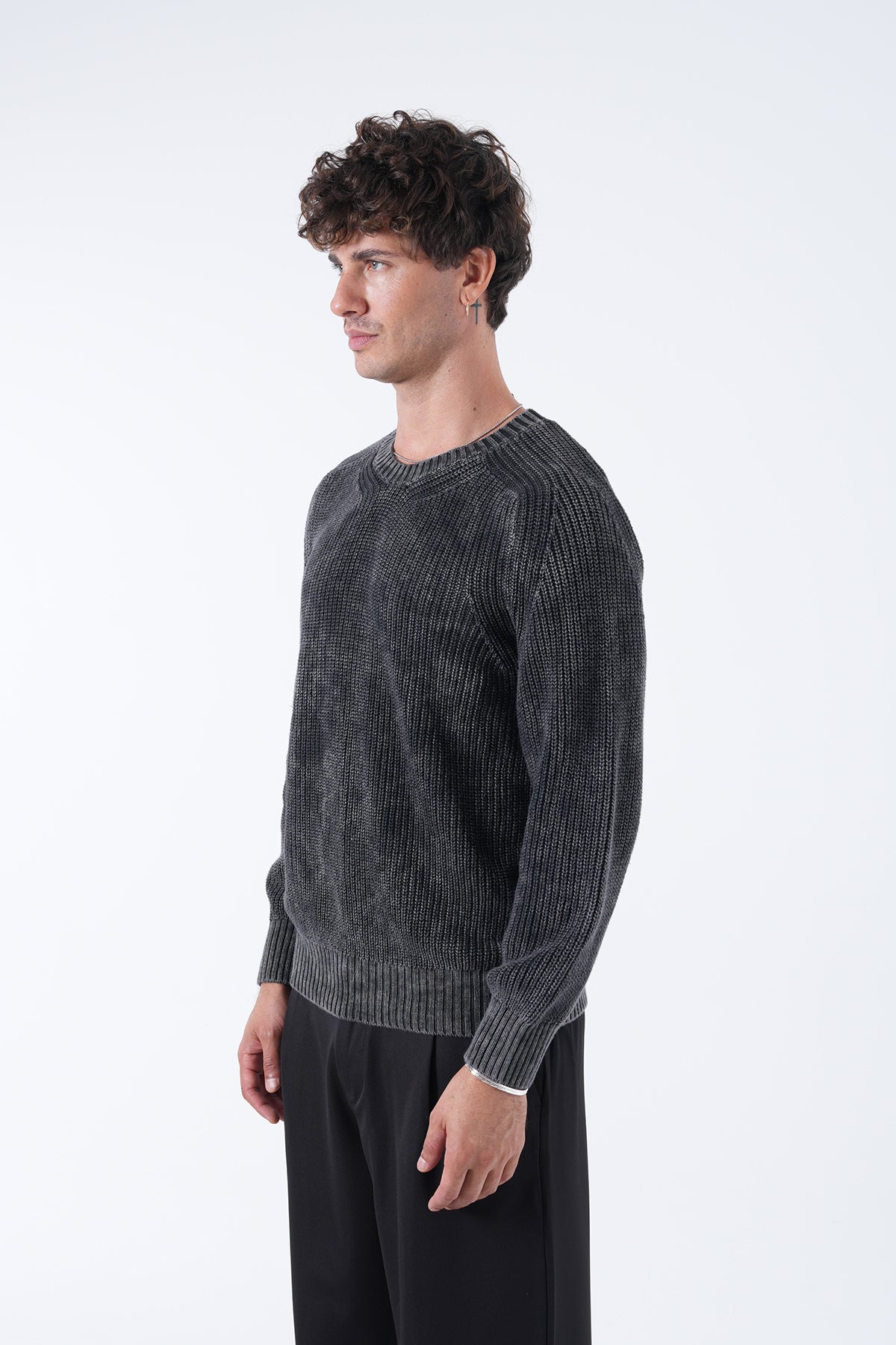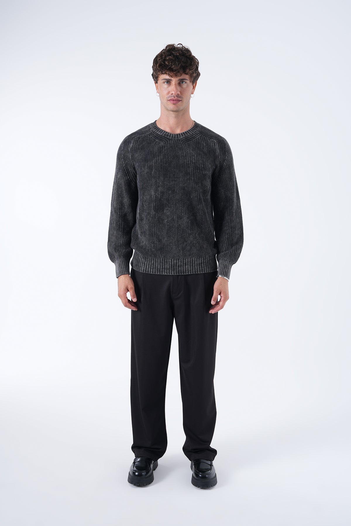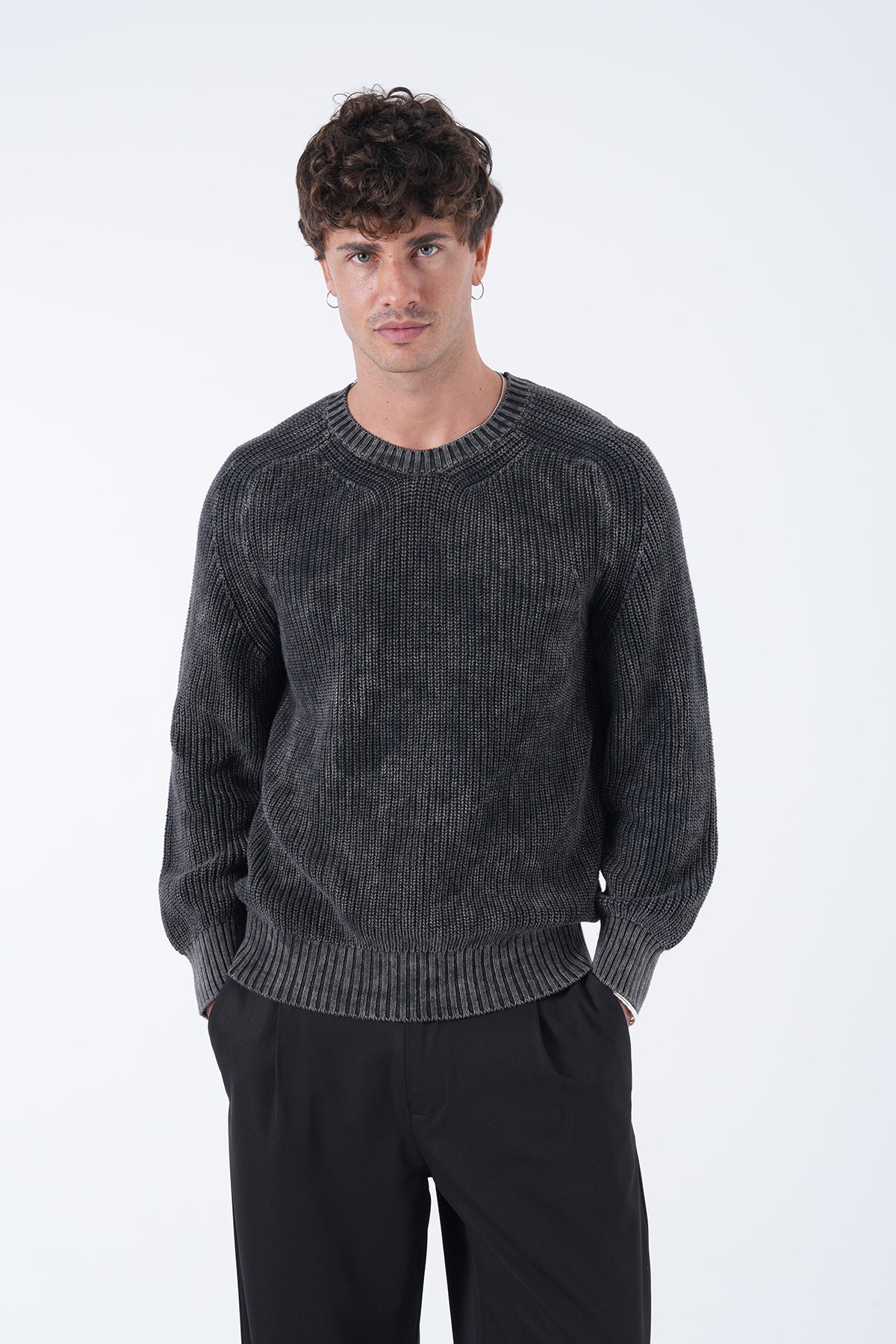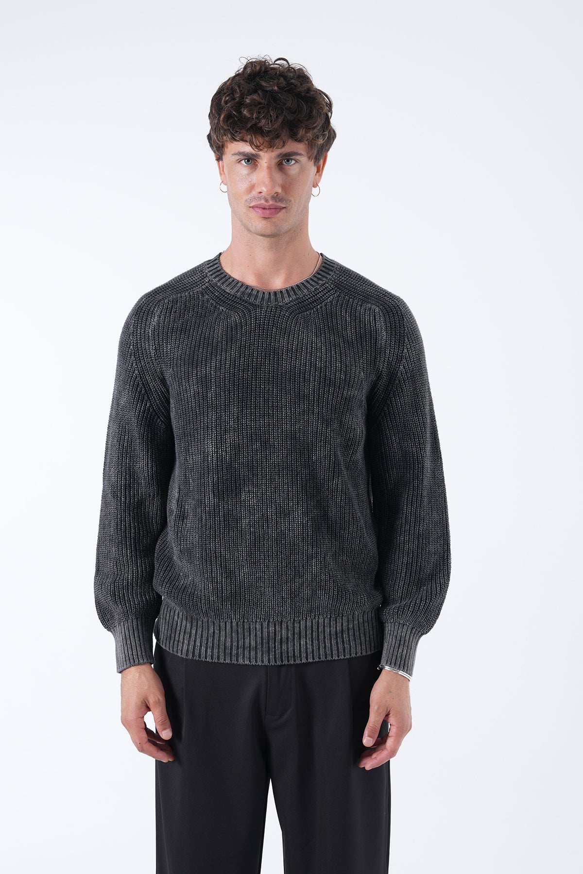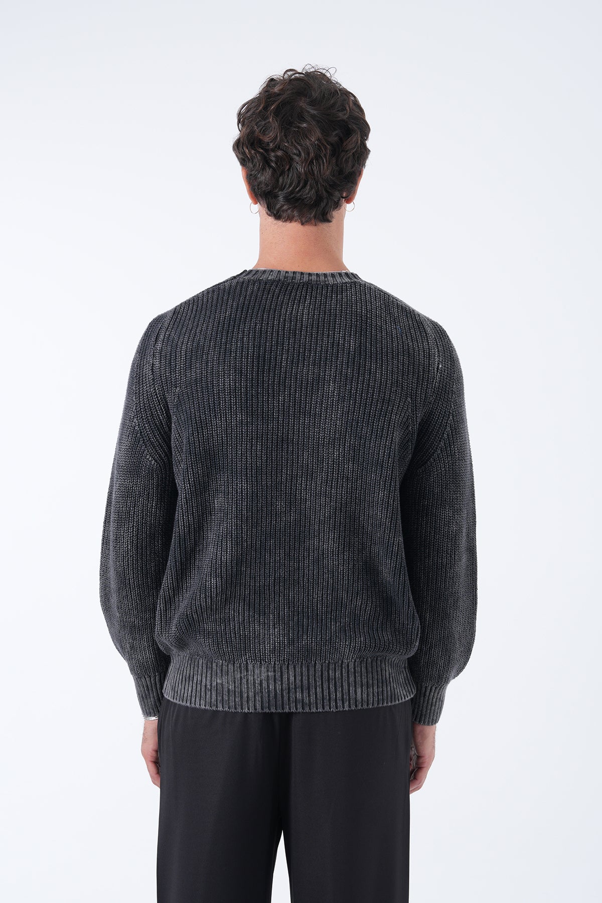 Yuvarlak Yaka Yıkamalı Örgü Kazak